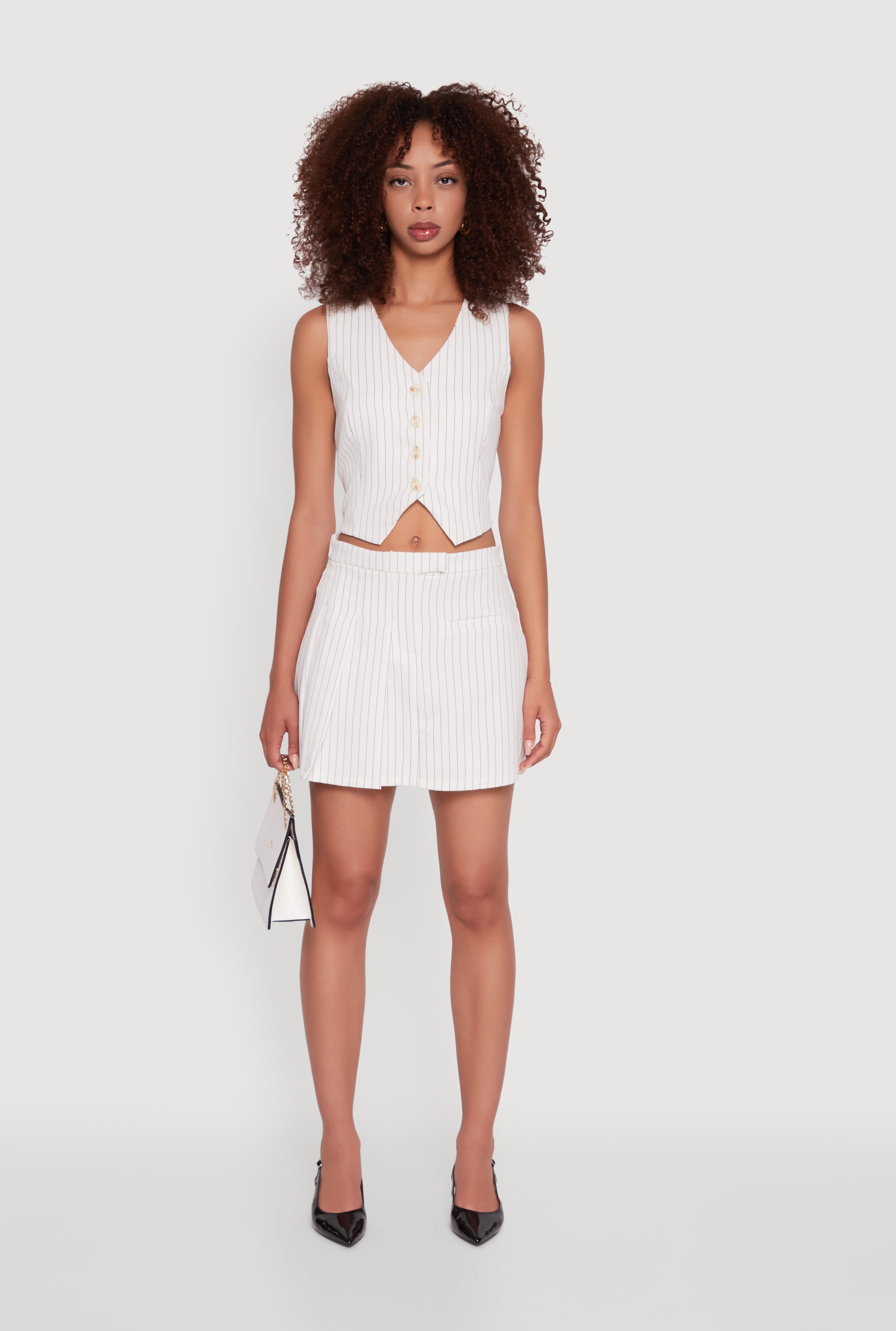 Pinstripe Button Front Cropped Vest