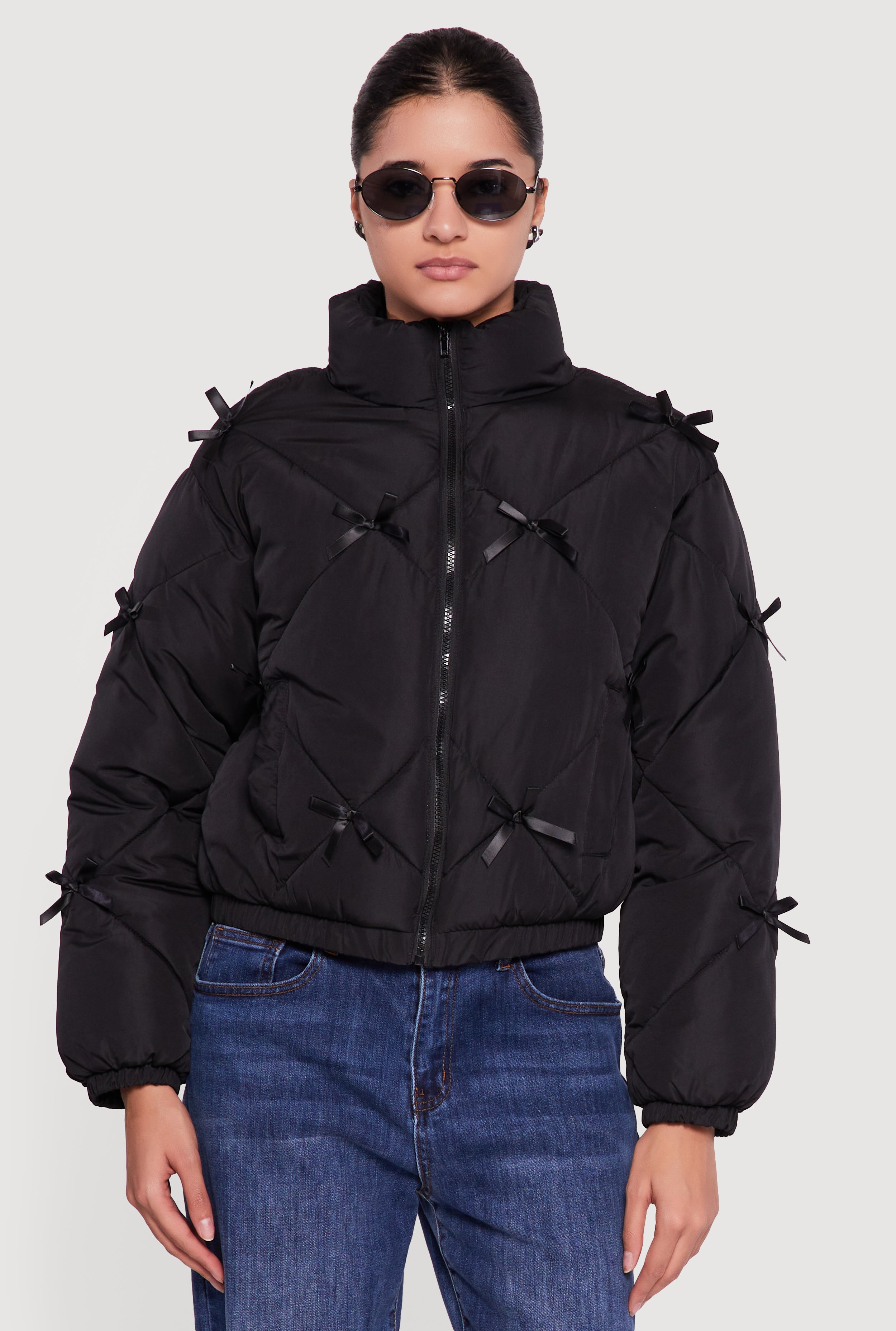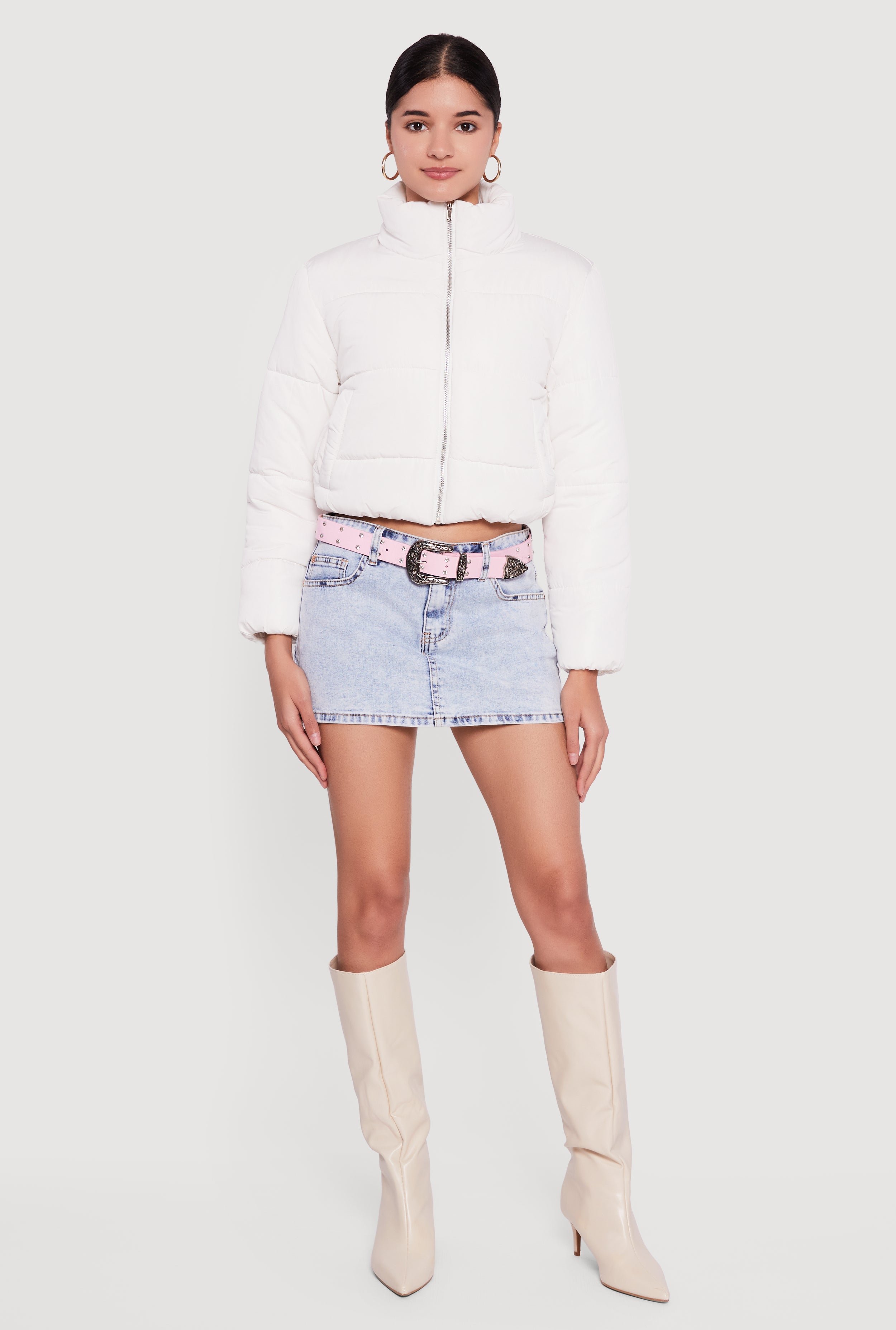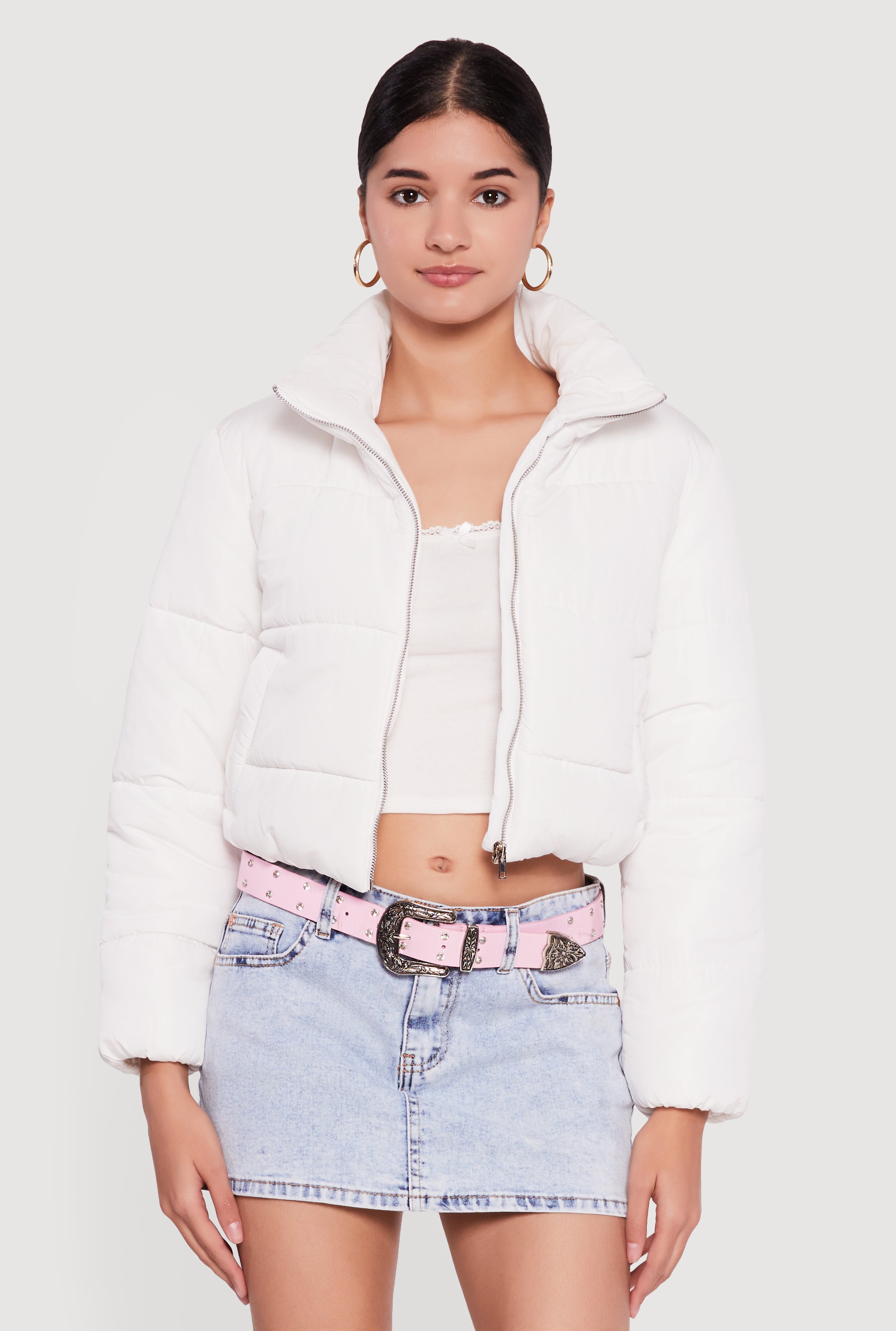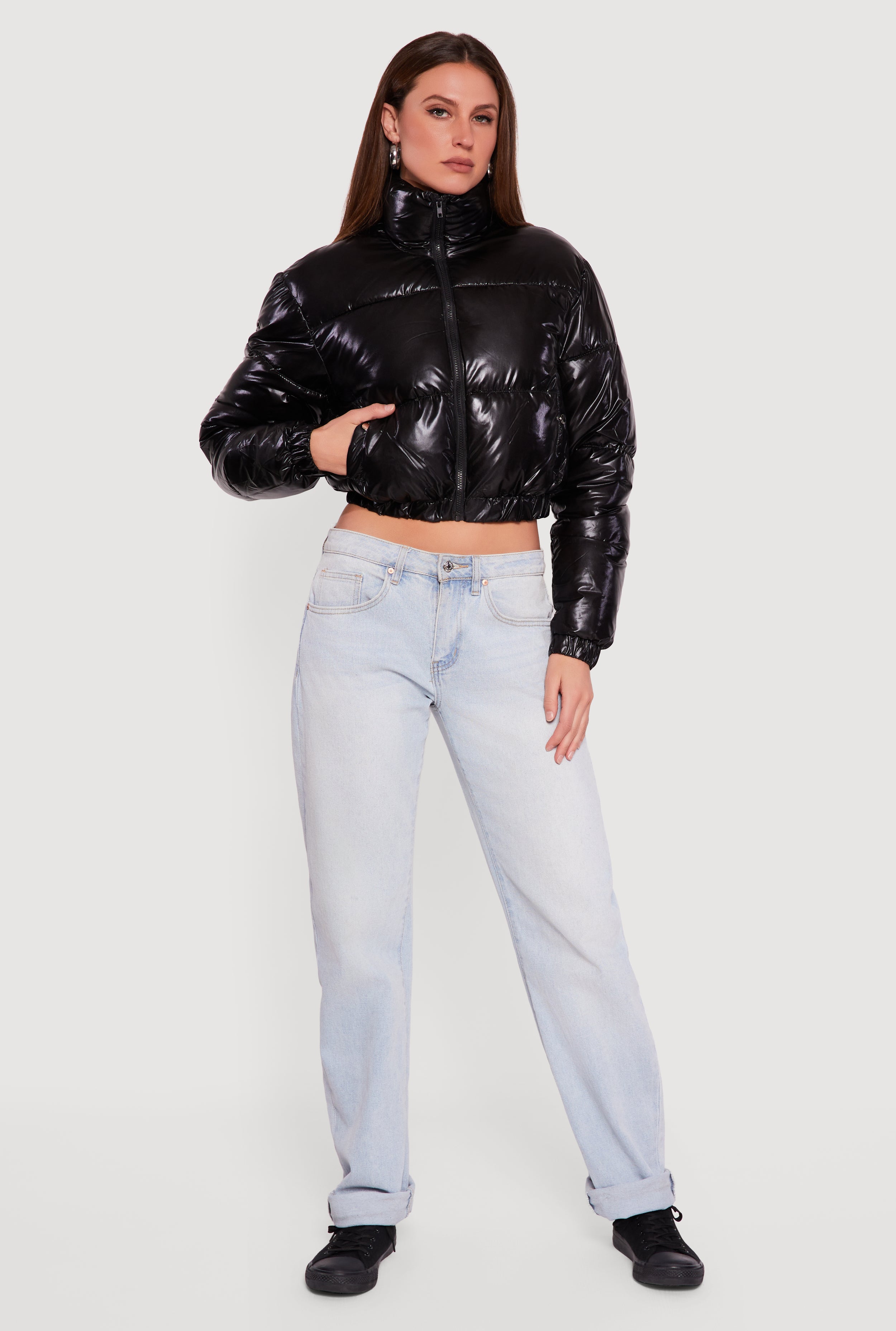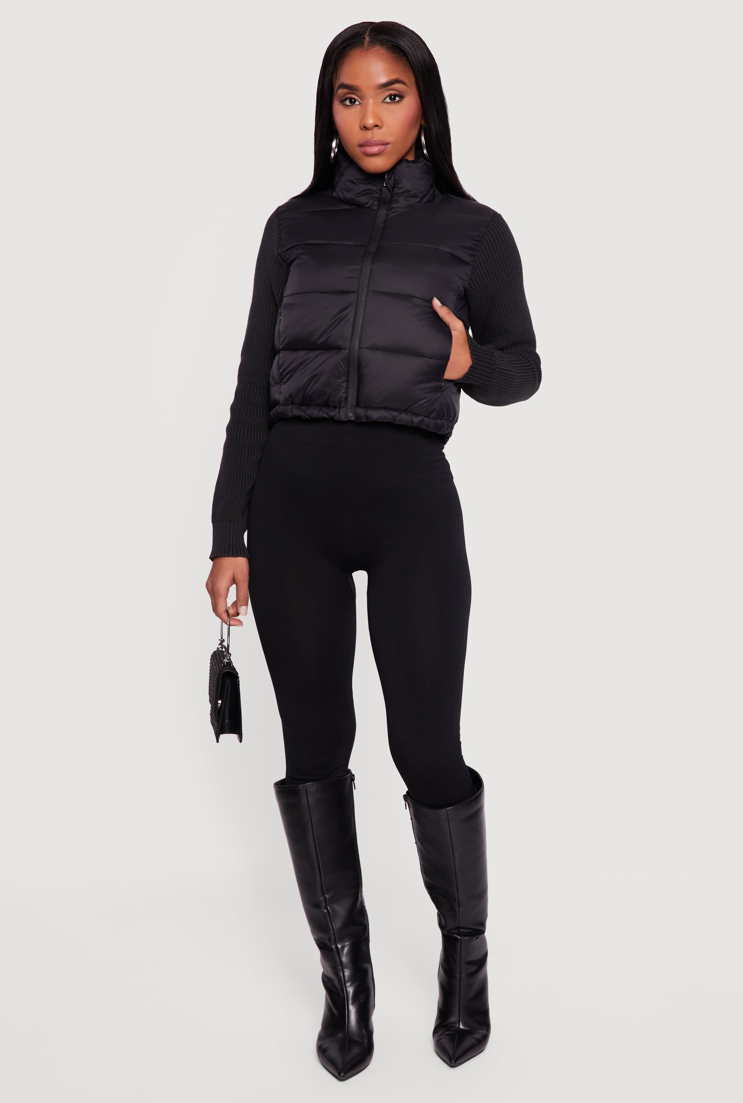 Nylon Long Sleeve Mock Neck Zip Front Puffer Jacket