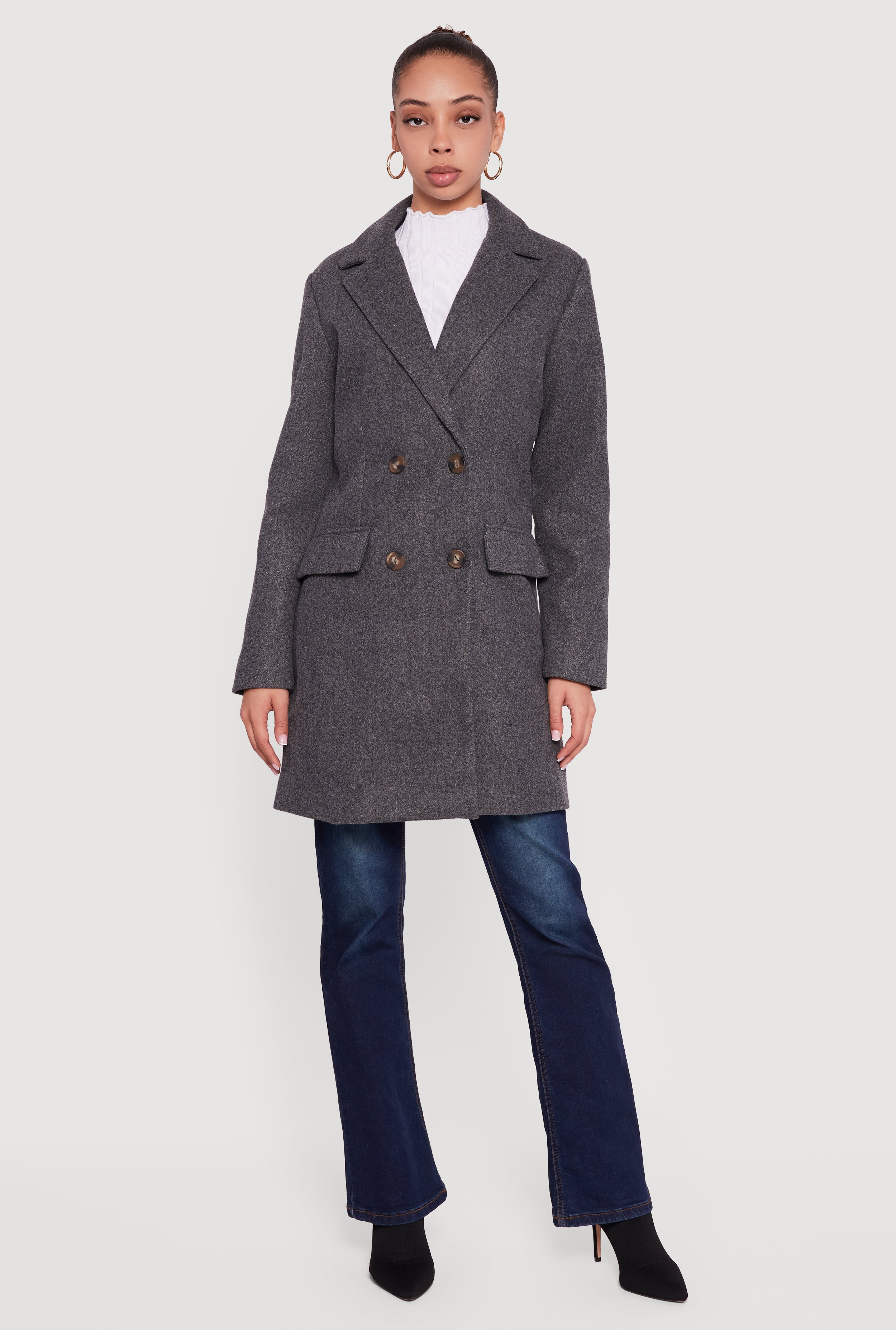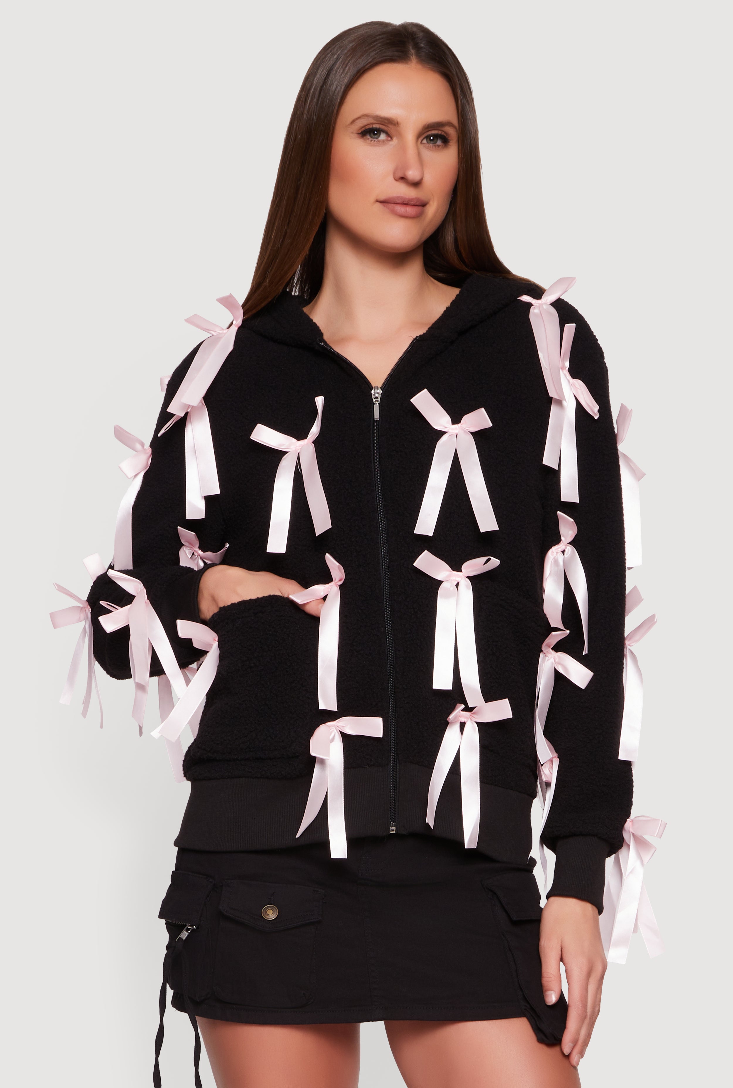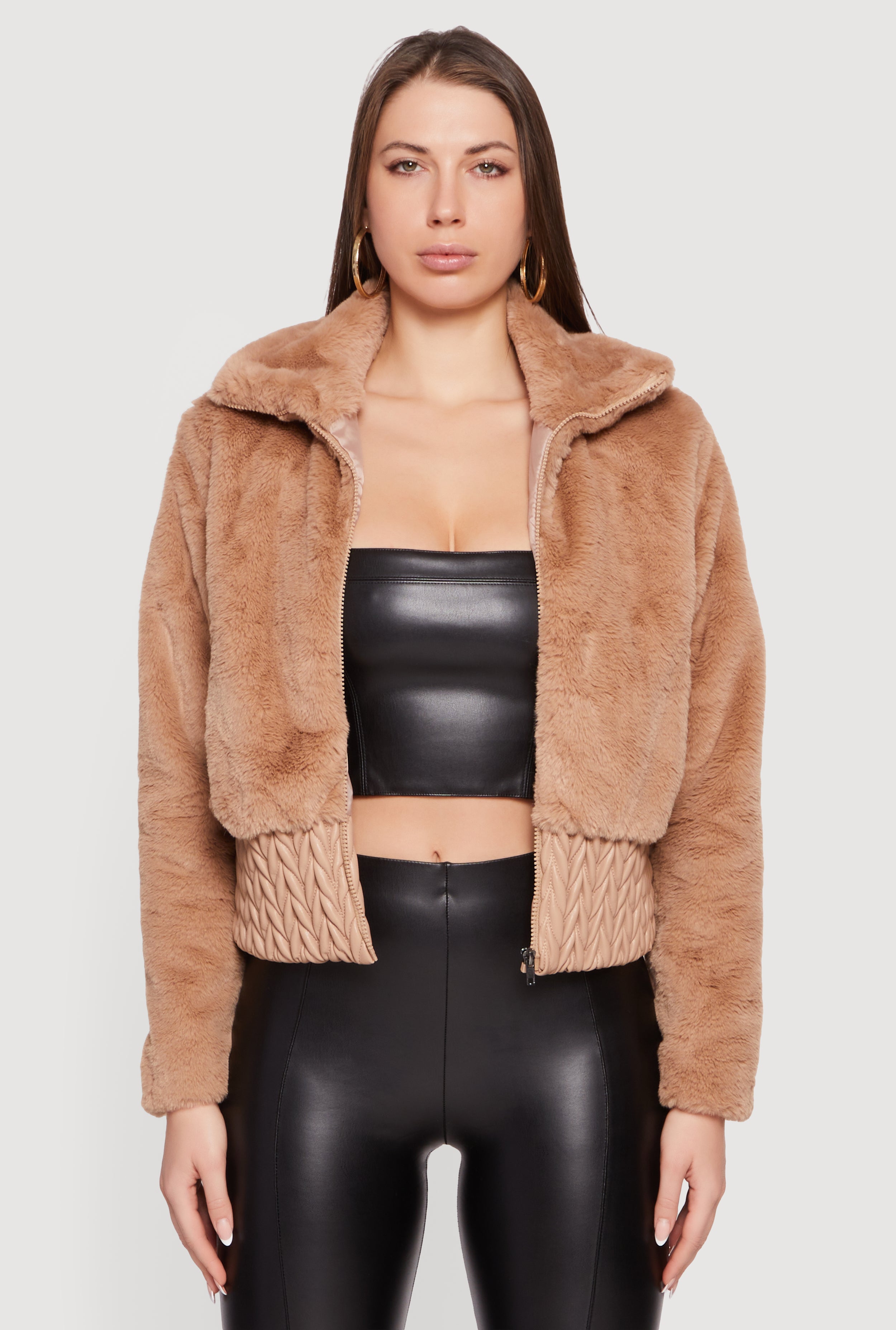 Faux Leather Chevron Trim Zip Front Faux Fur Jacket