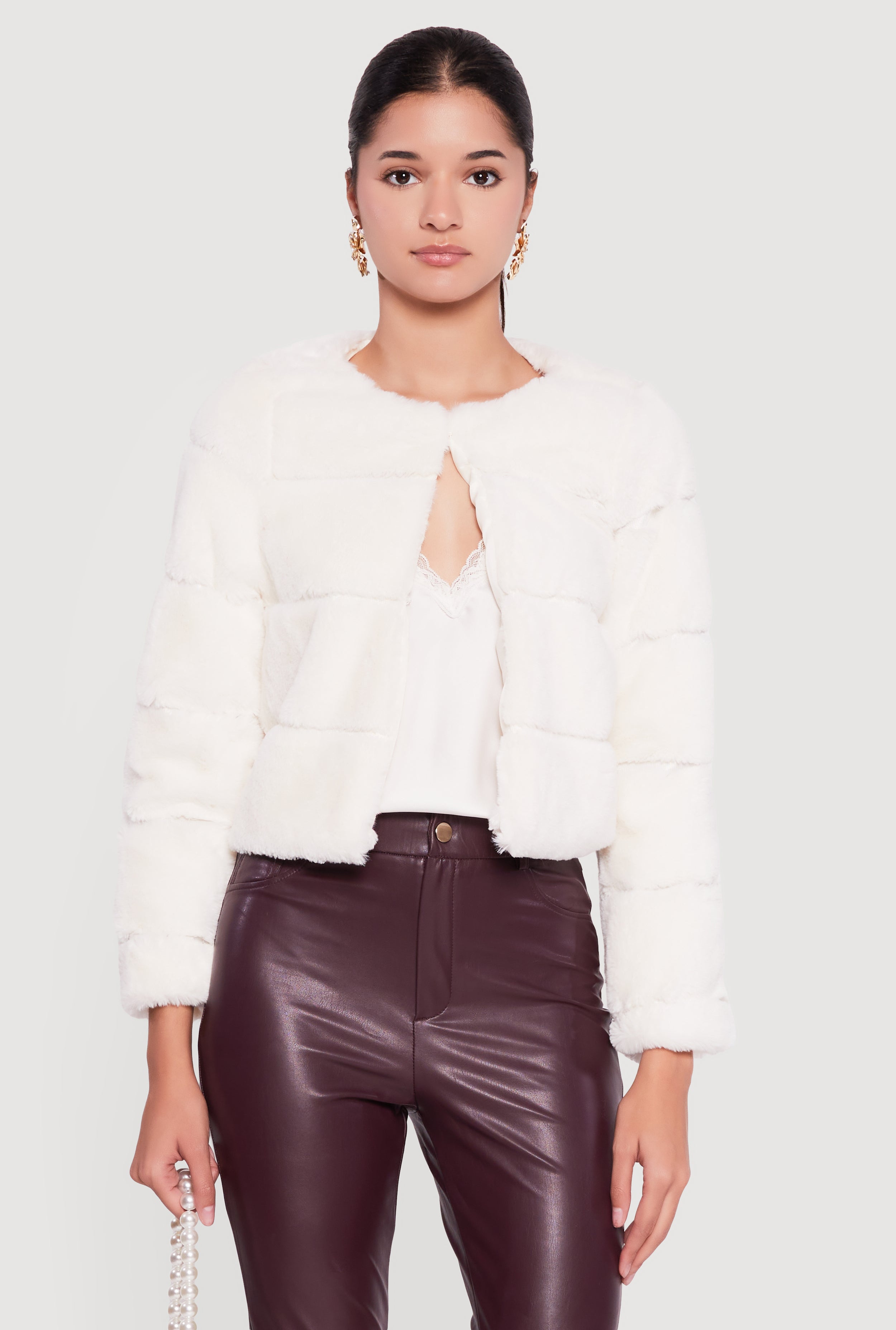 Faux Fur Trim Hook and Eye Cropped Jacket