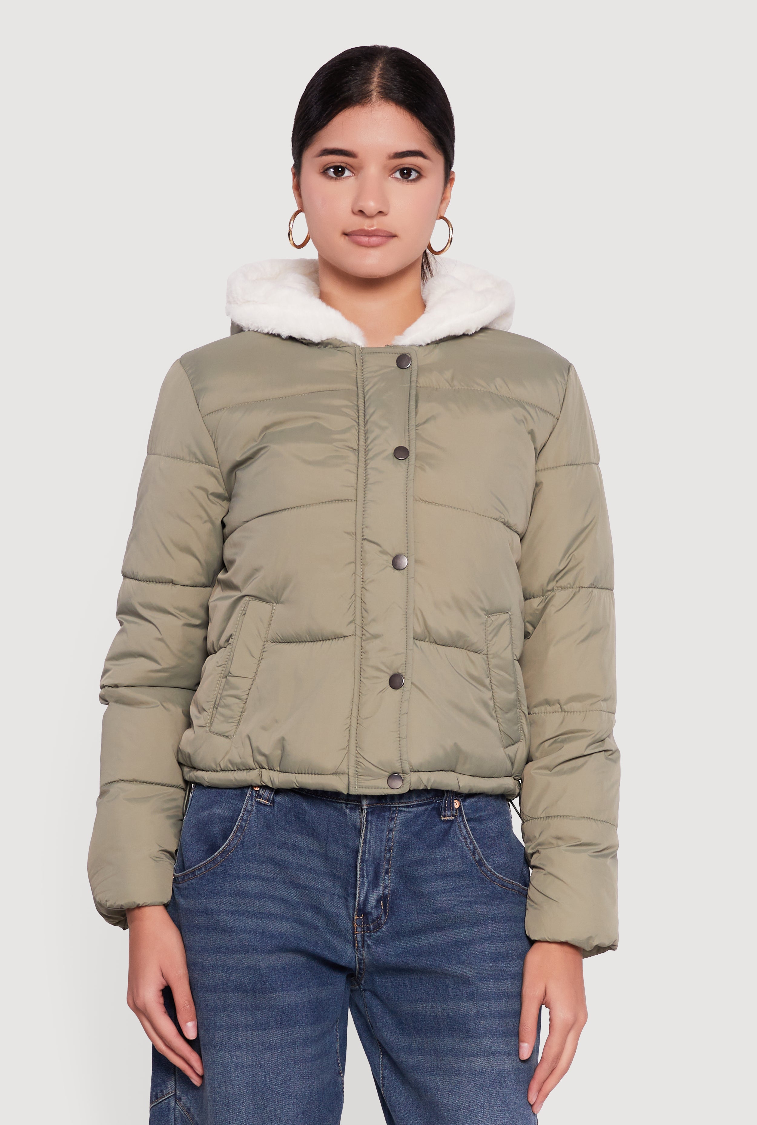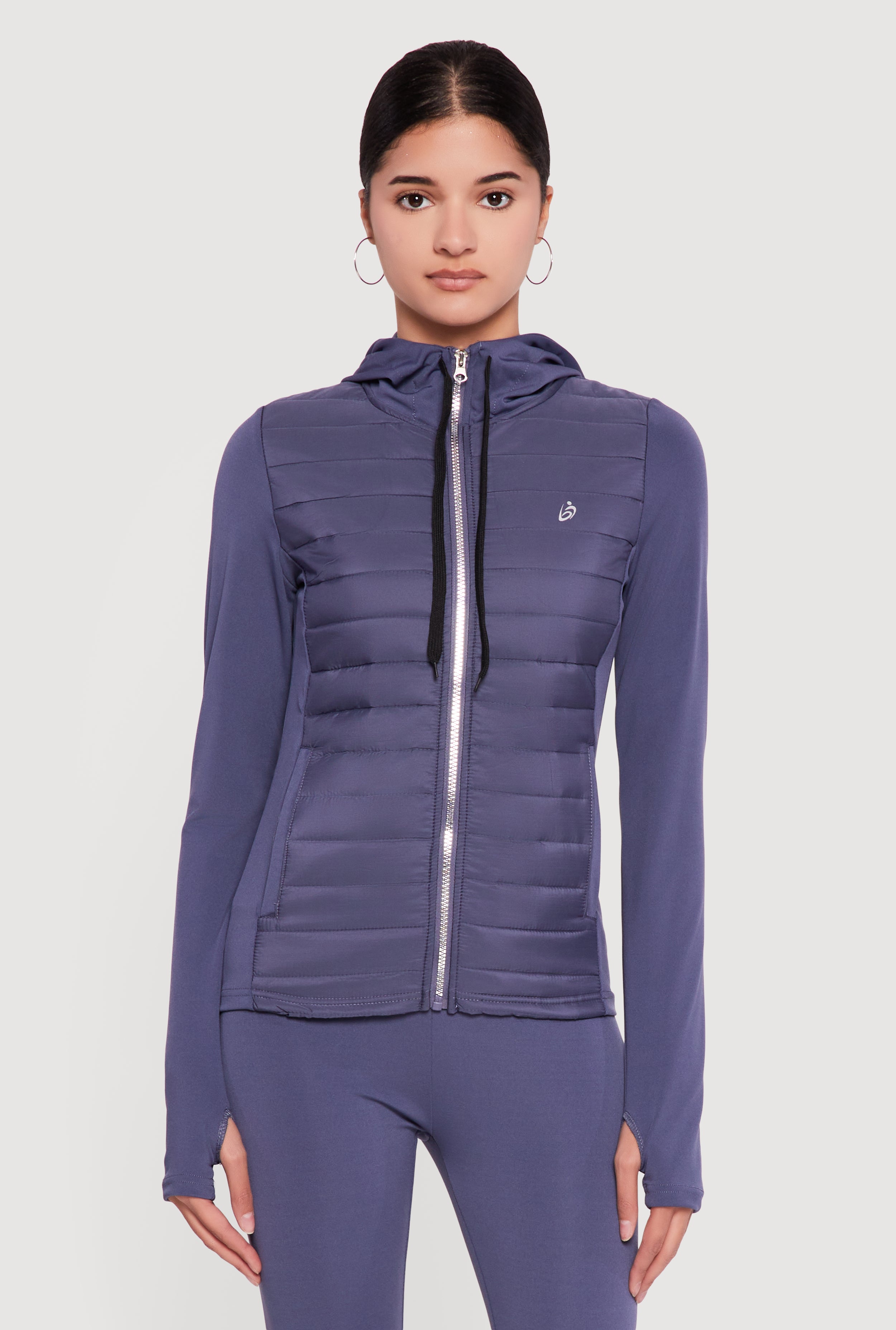 Lightweight Puffer Detail Hooded Zip Front Jacket