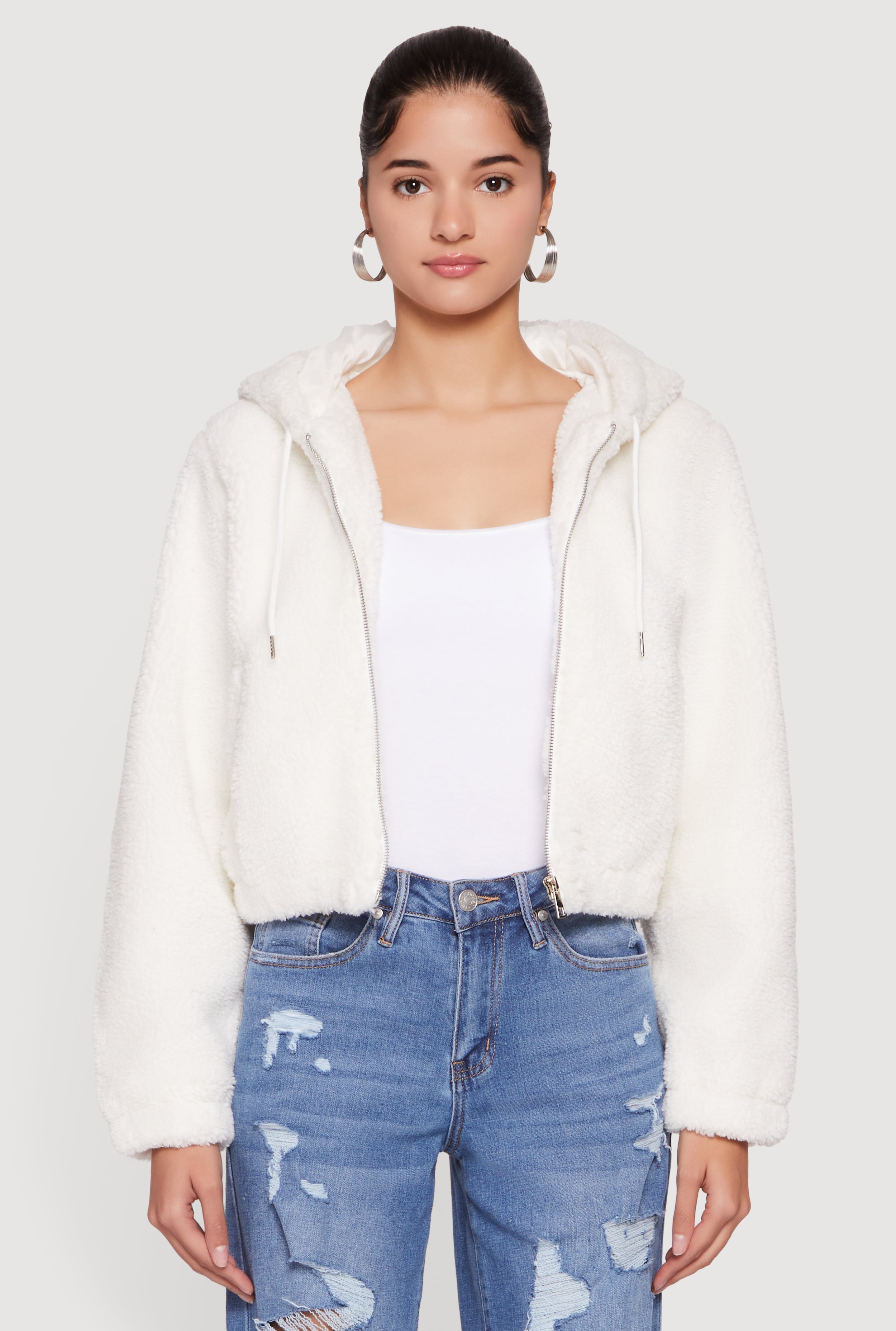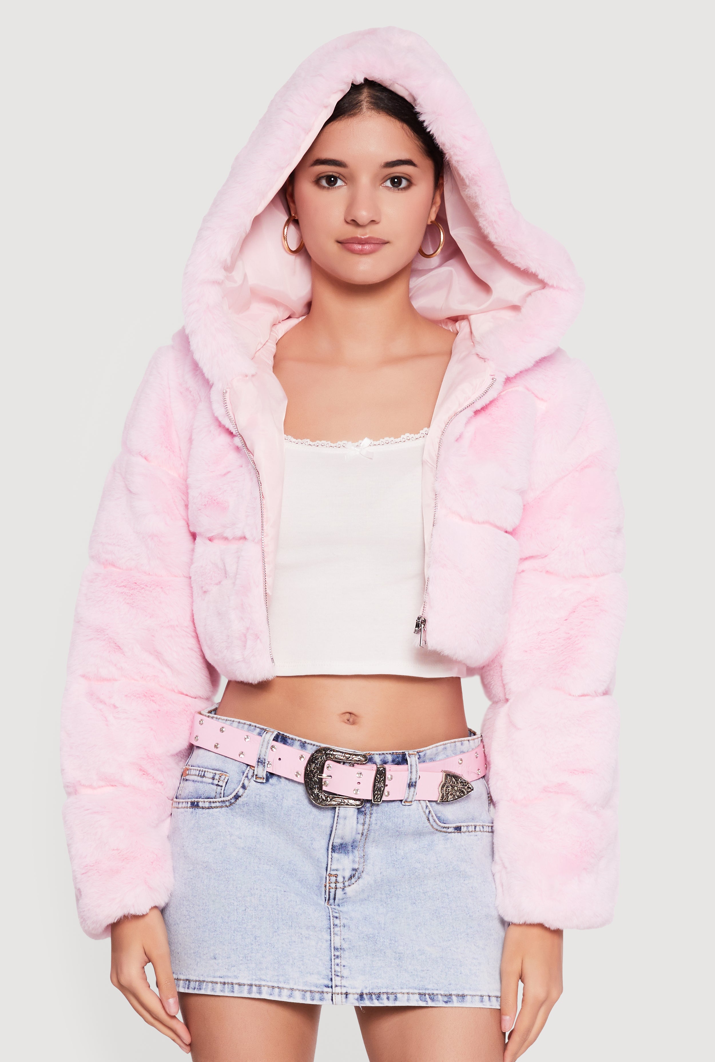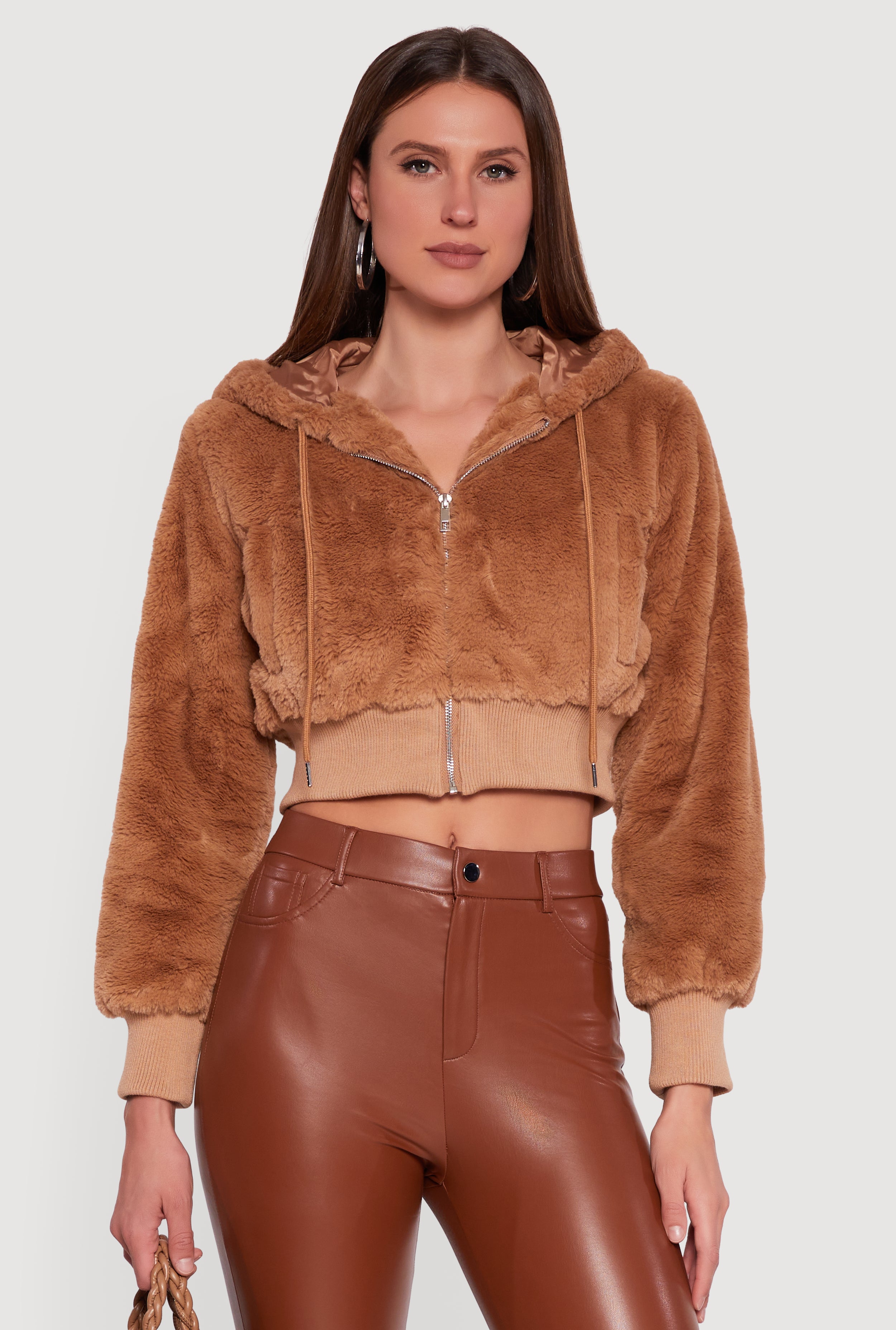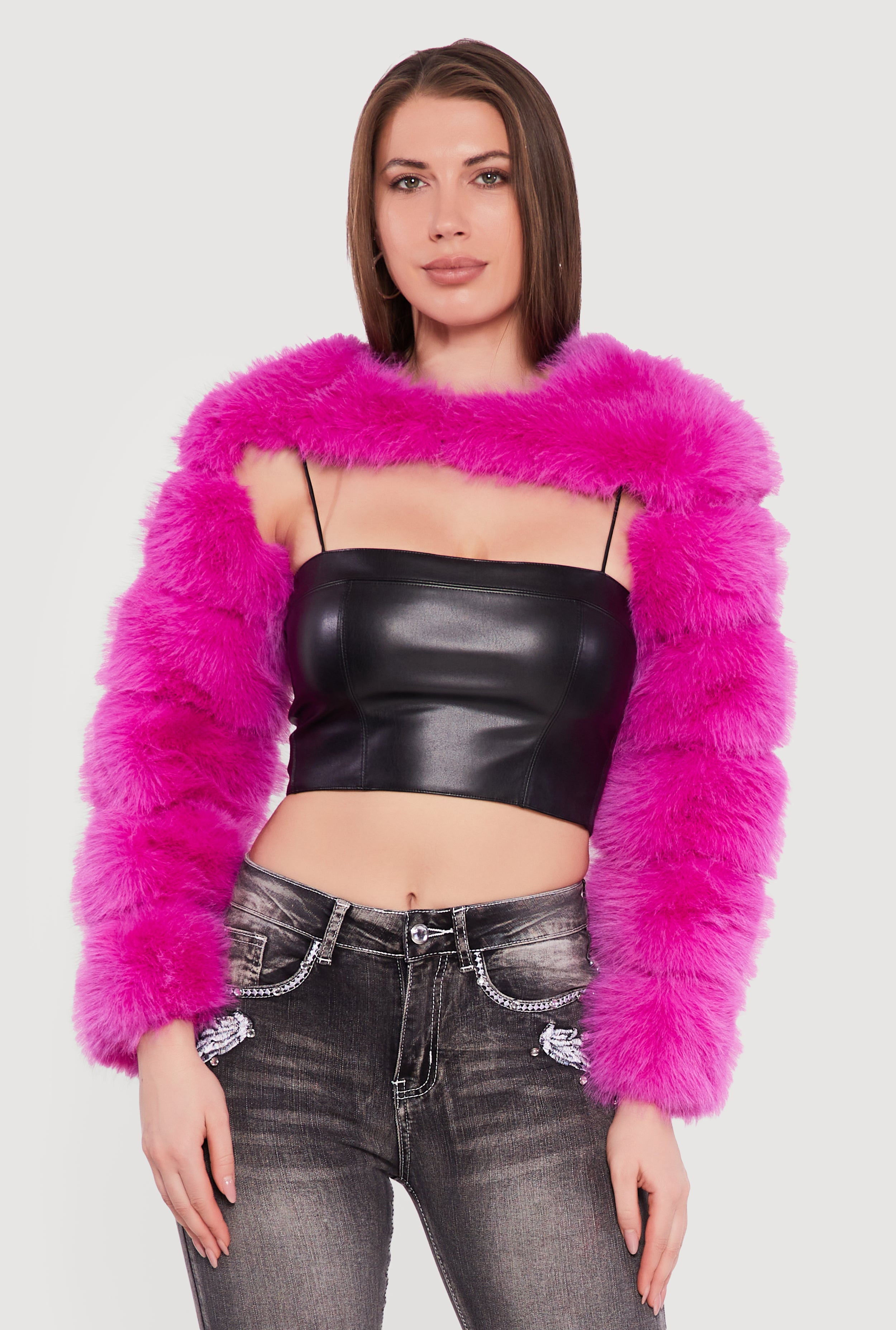 Faux Fur Cropped Long Sleeve Mock Neck Zip Front Jacket