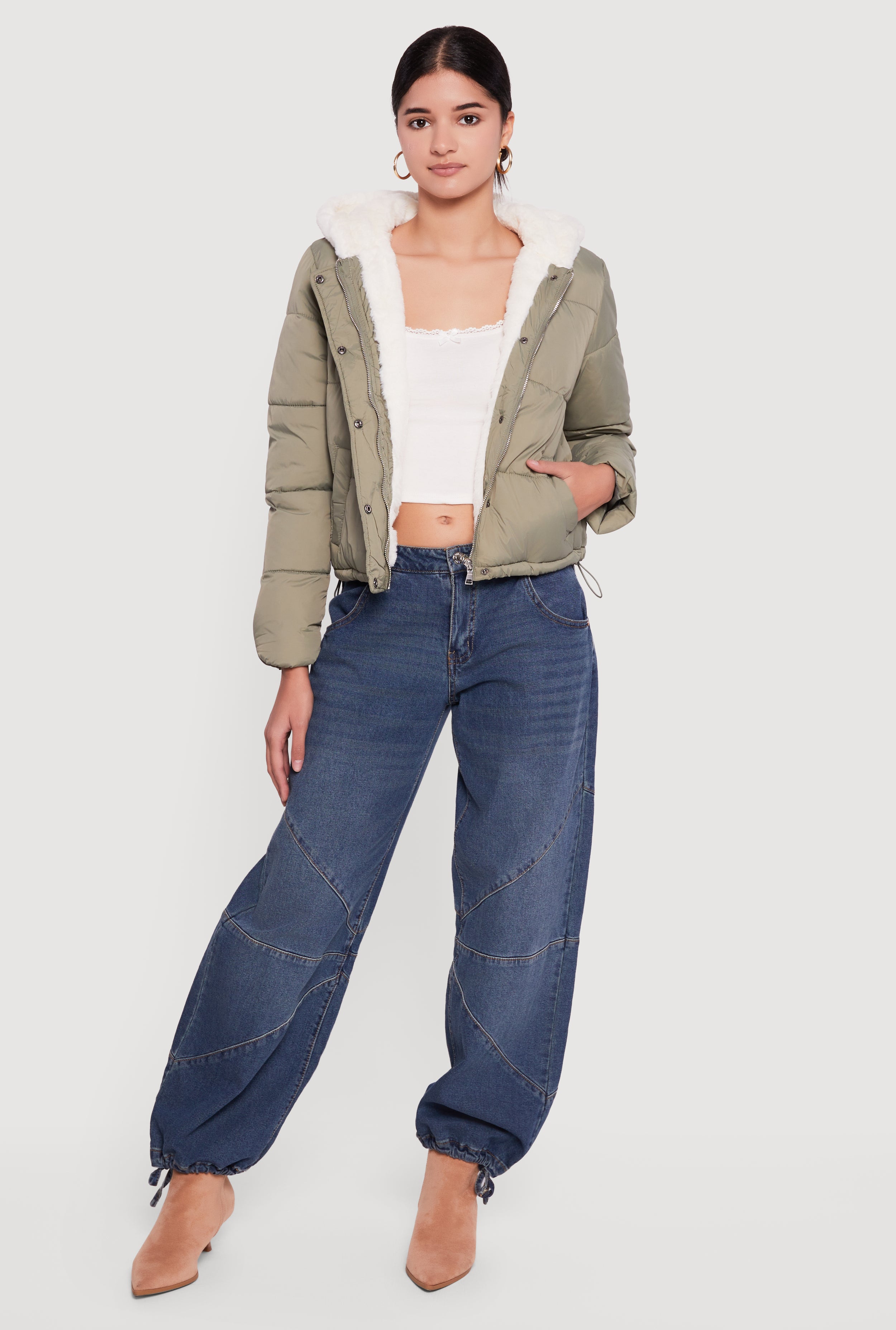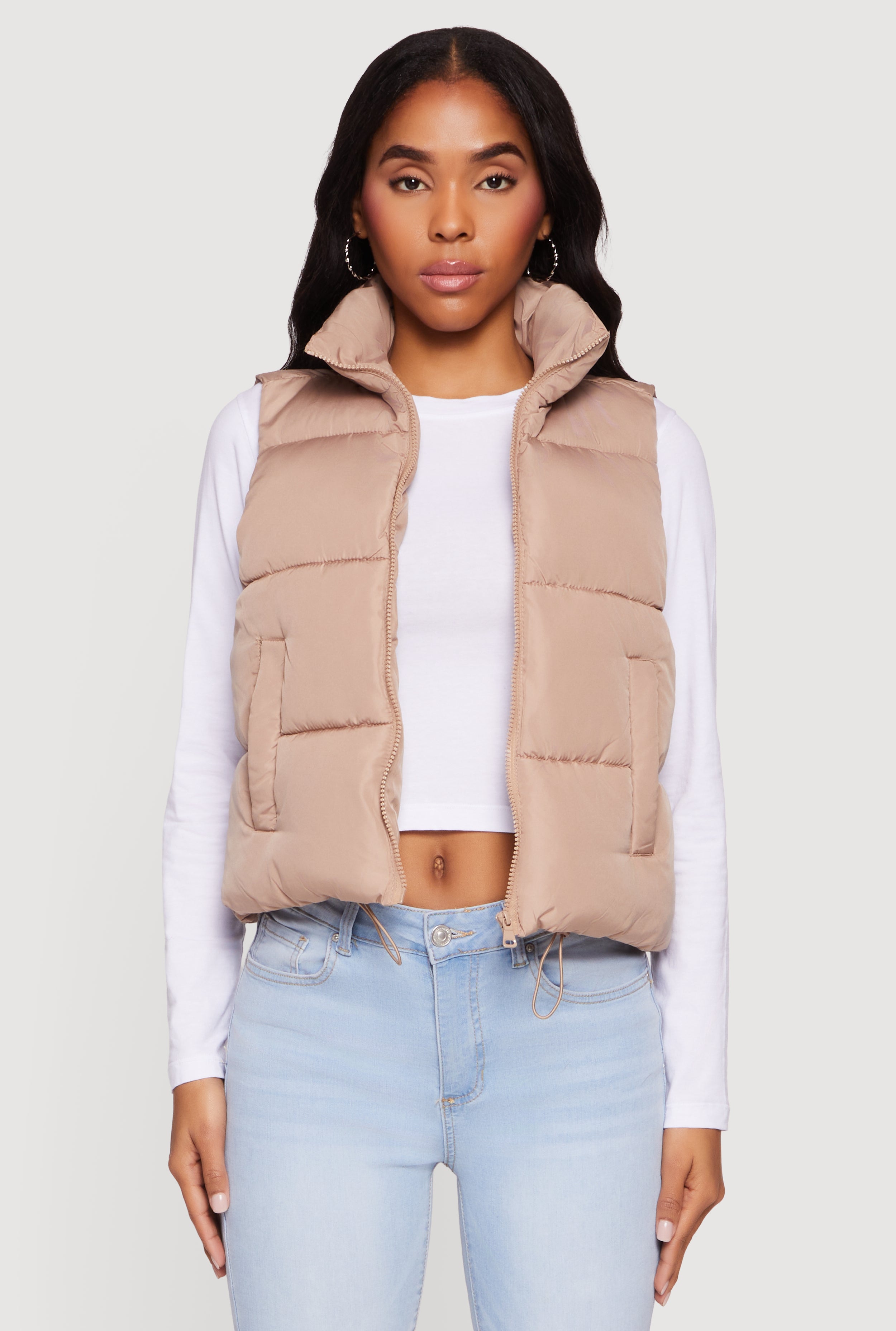 Sherpa Lined Drawstring Hem Zip Front Puffer Vest