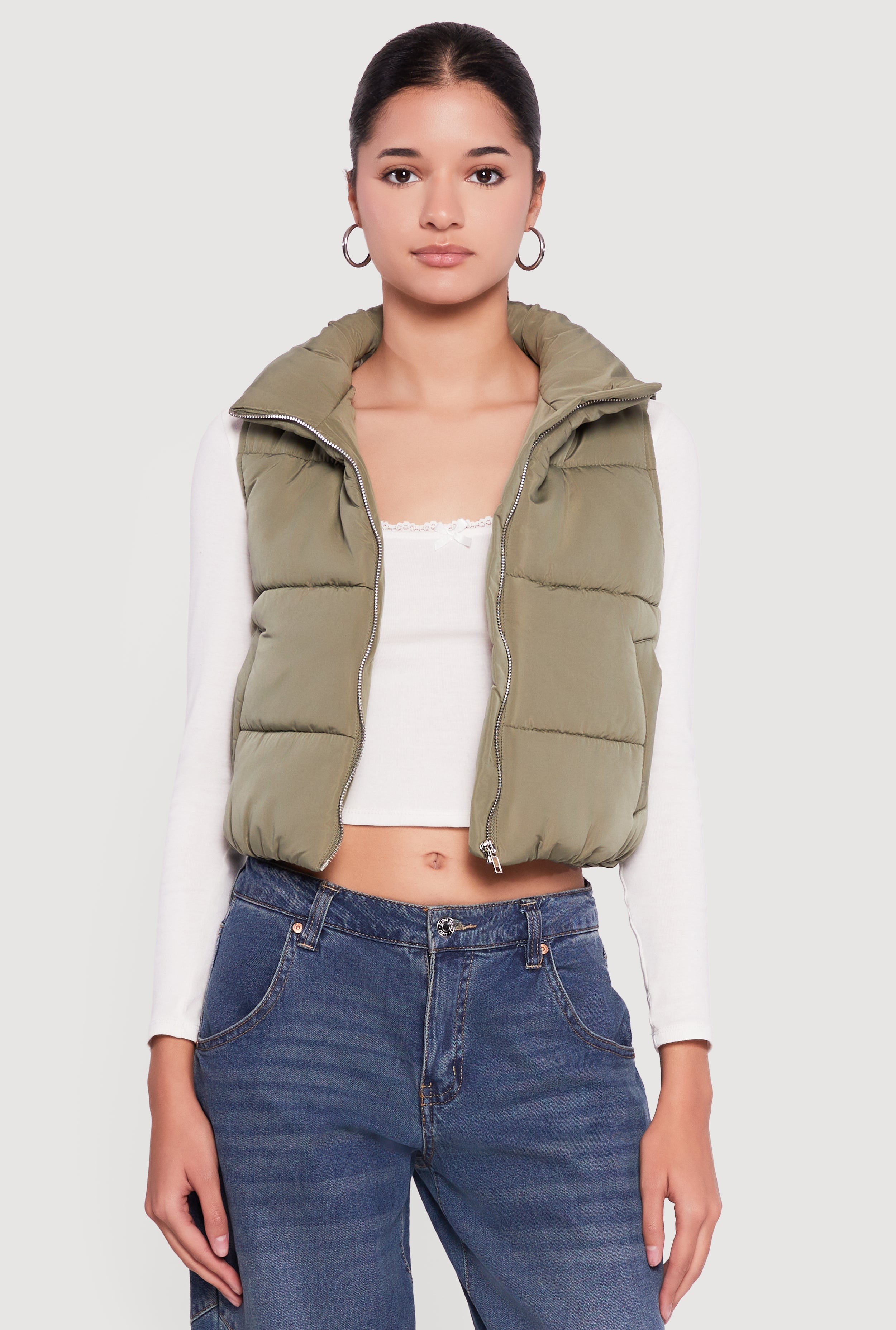 Almost Famous Mock Neck Zip Front Puffer Vest