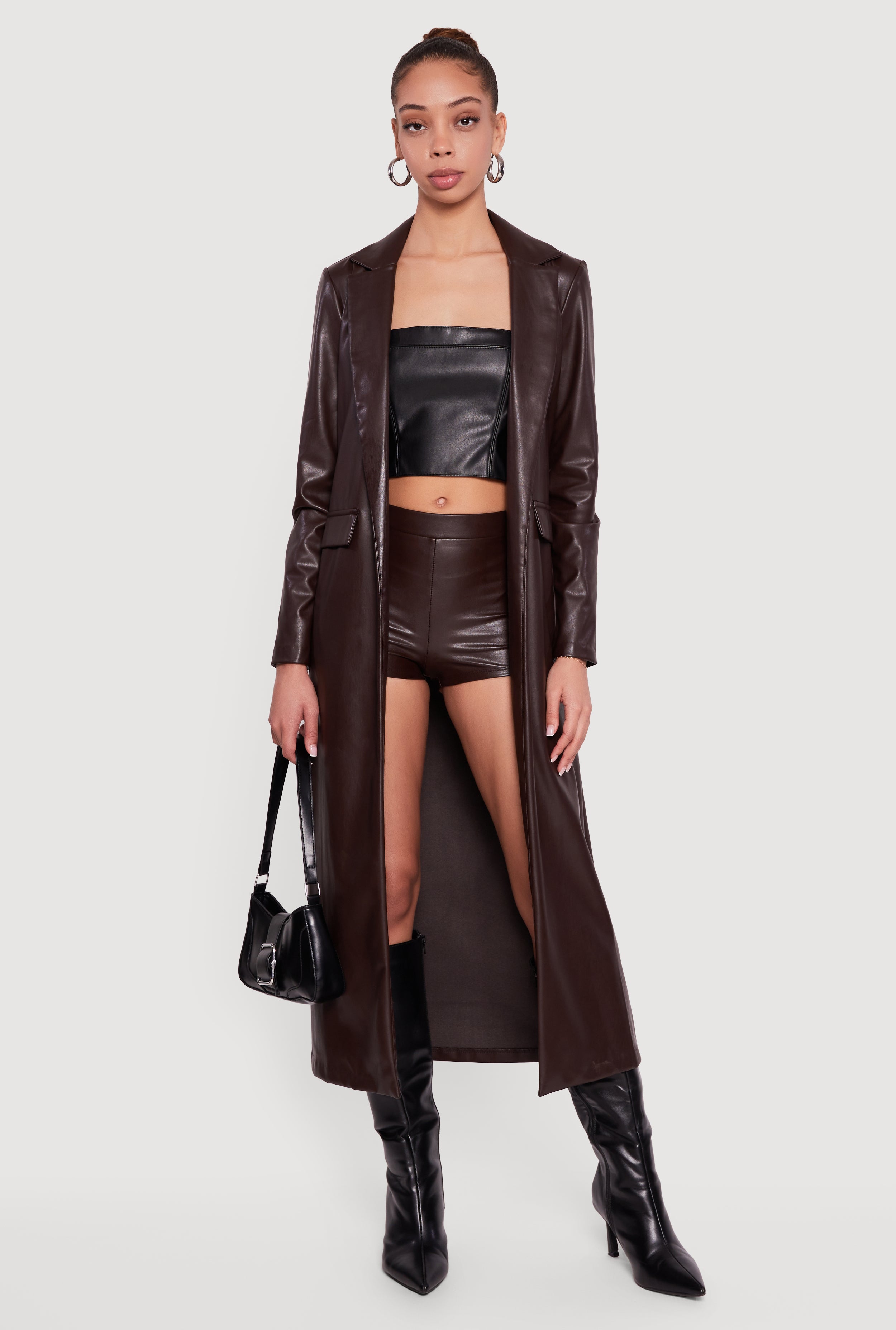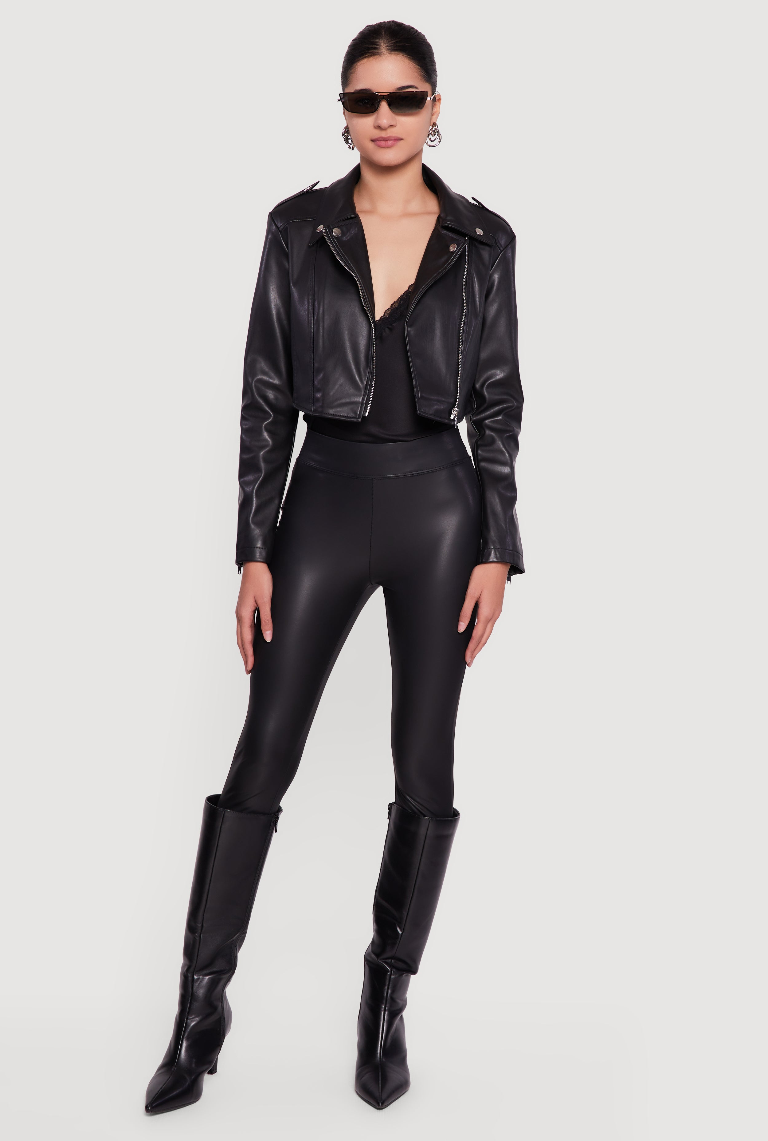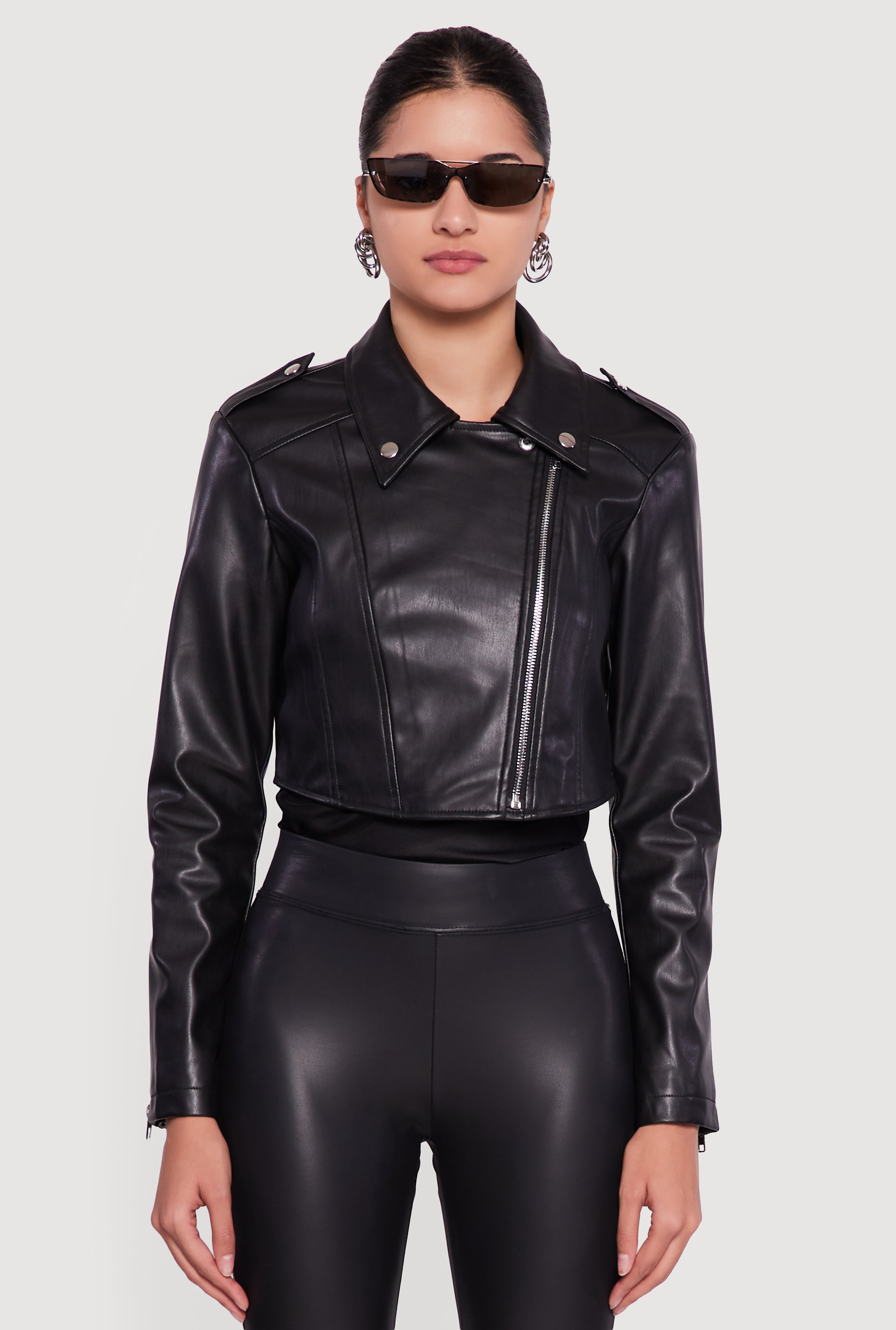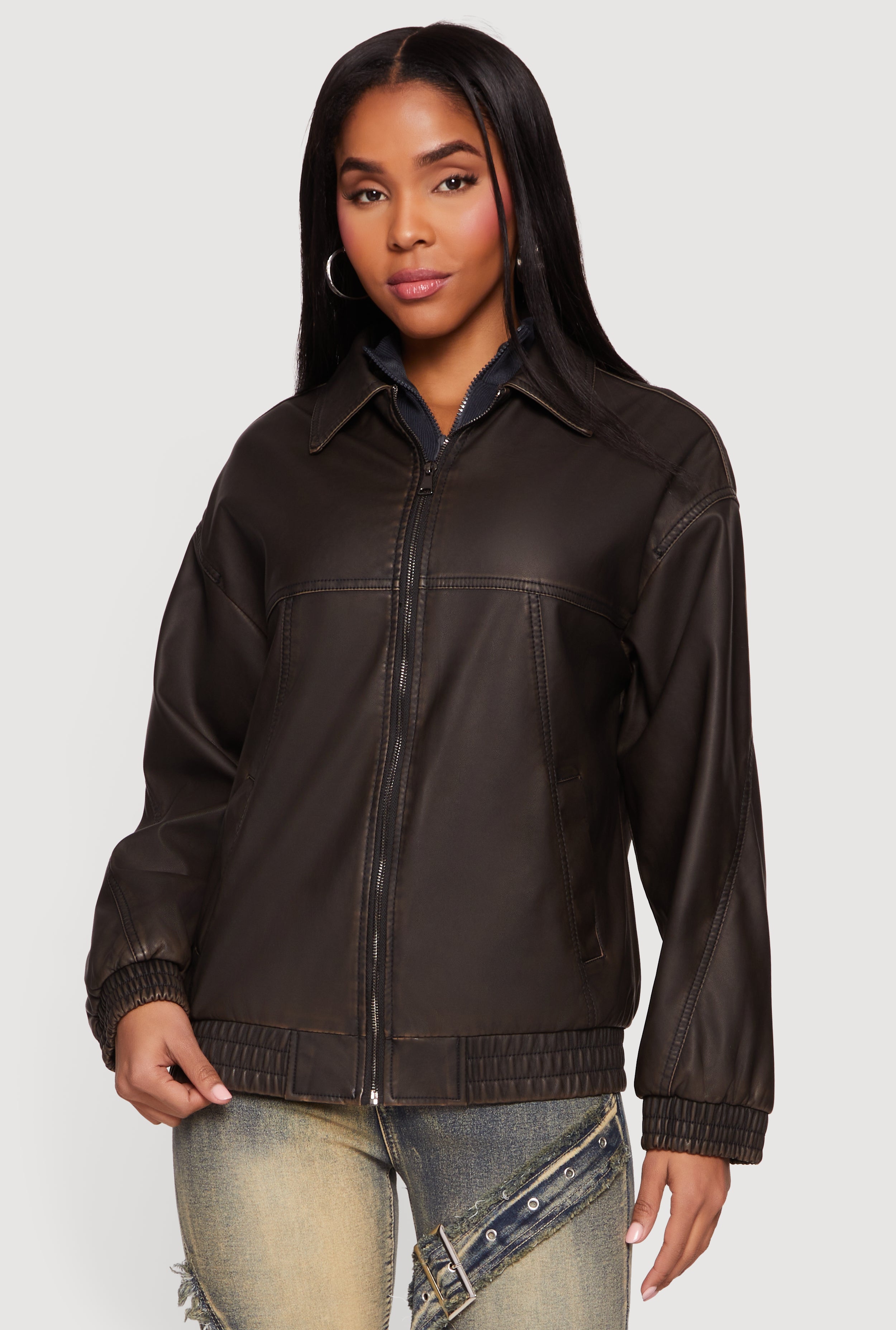 Faux Leather Long Sleeve Zip Front Bomber Jacket