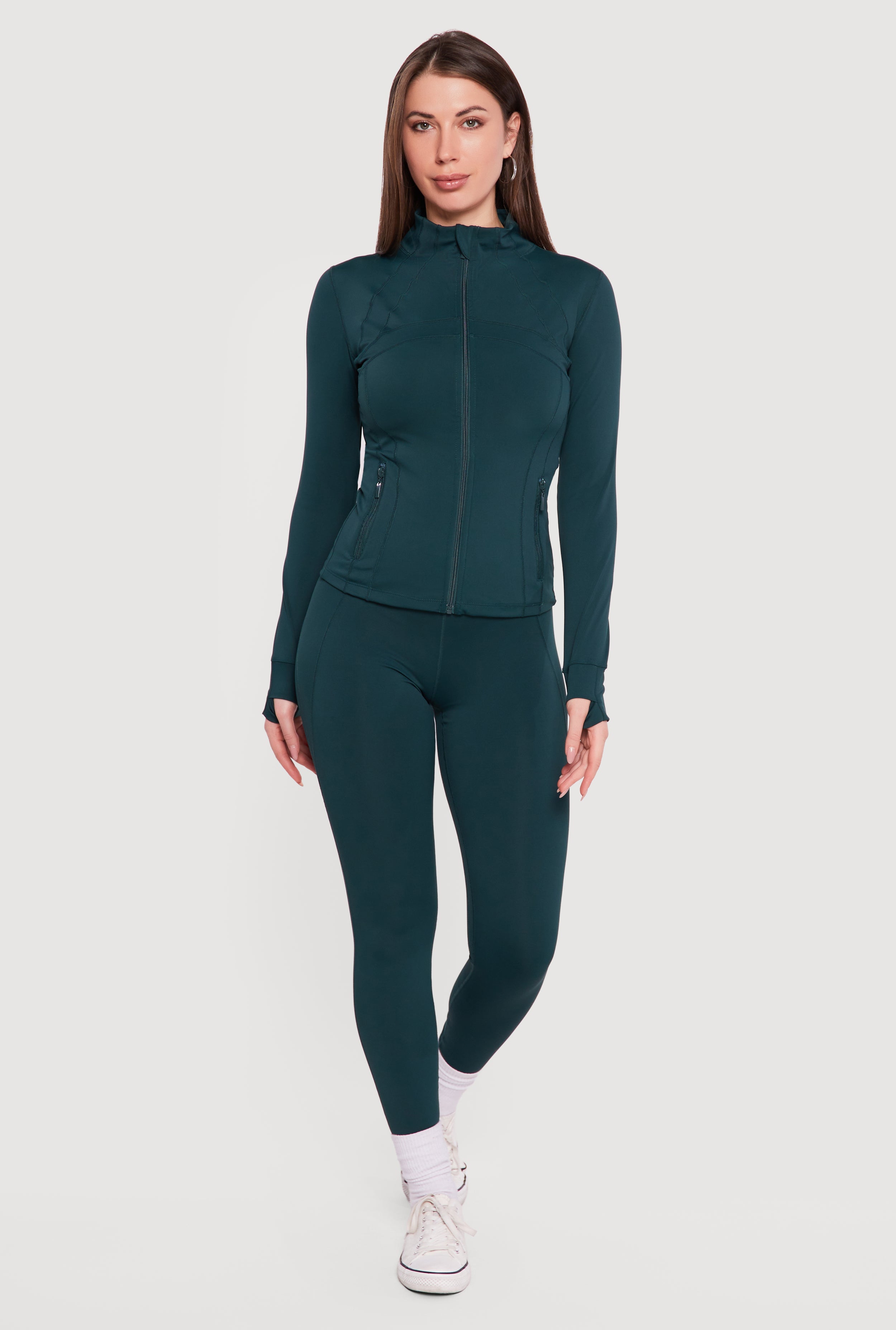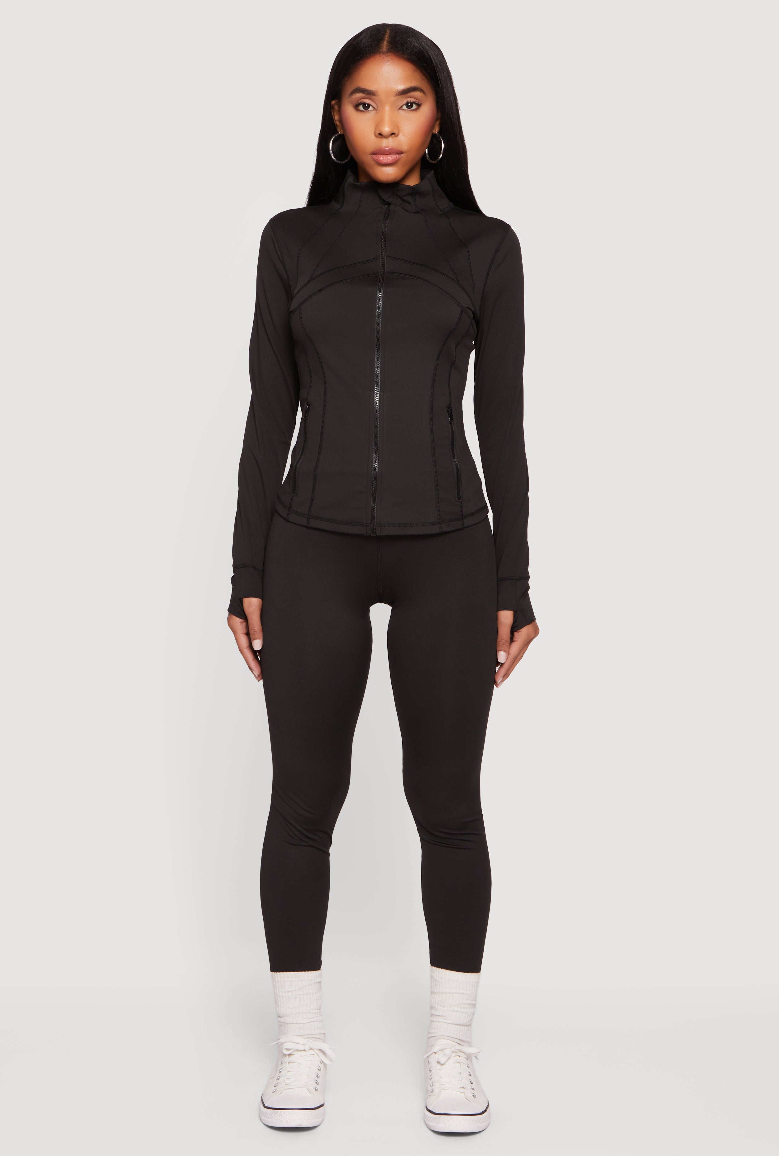 Long Sleeve Mock Neck Zip Front Jacket with Thumb Holes
