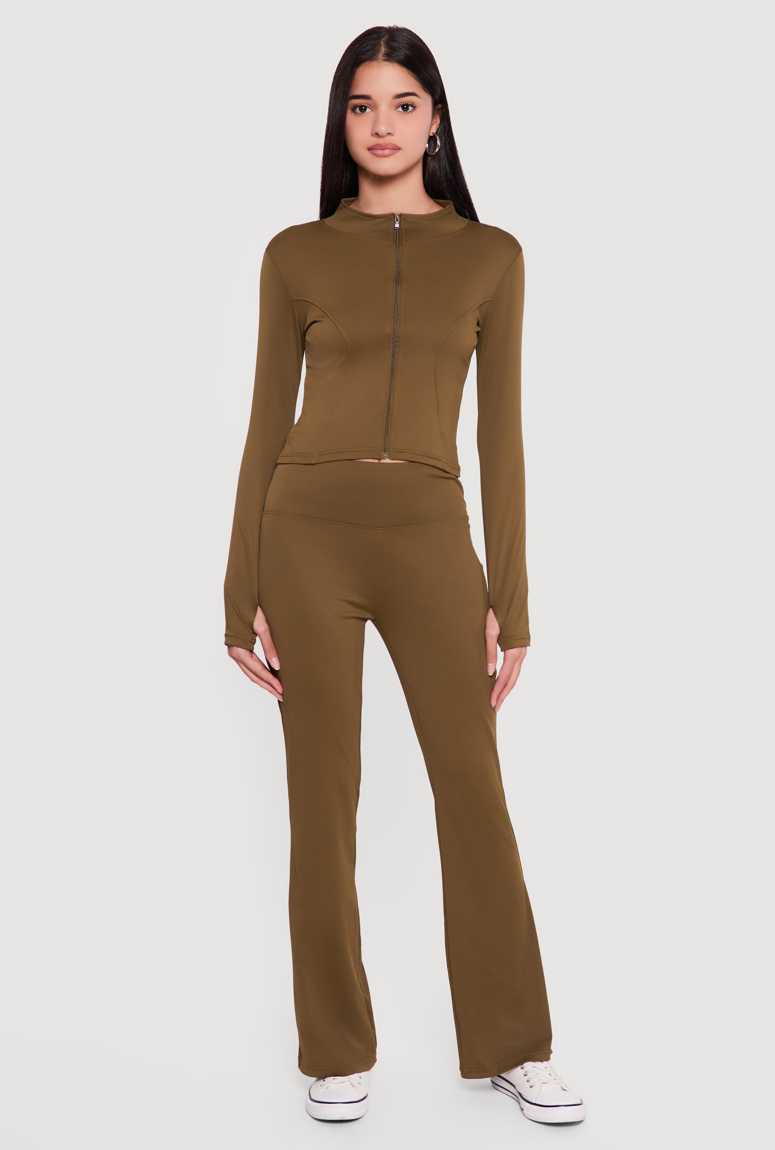 Solid Long Sleeve Mock Neck Zip Front Active Jacket