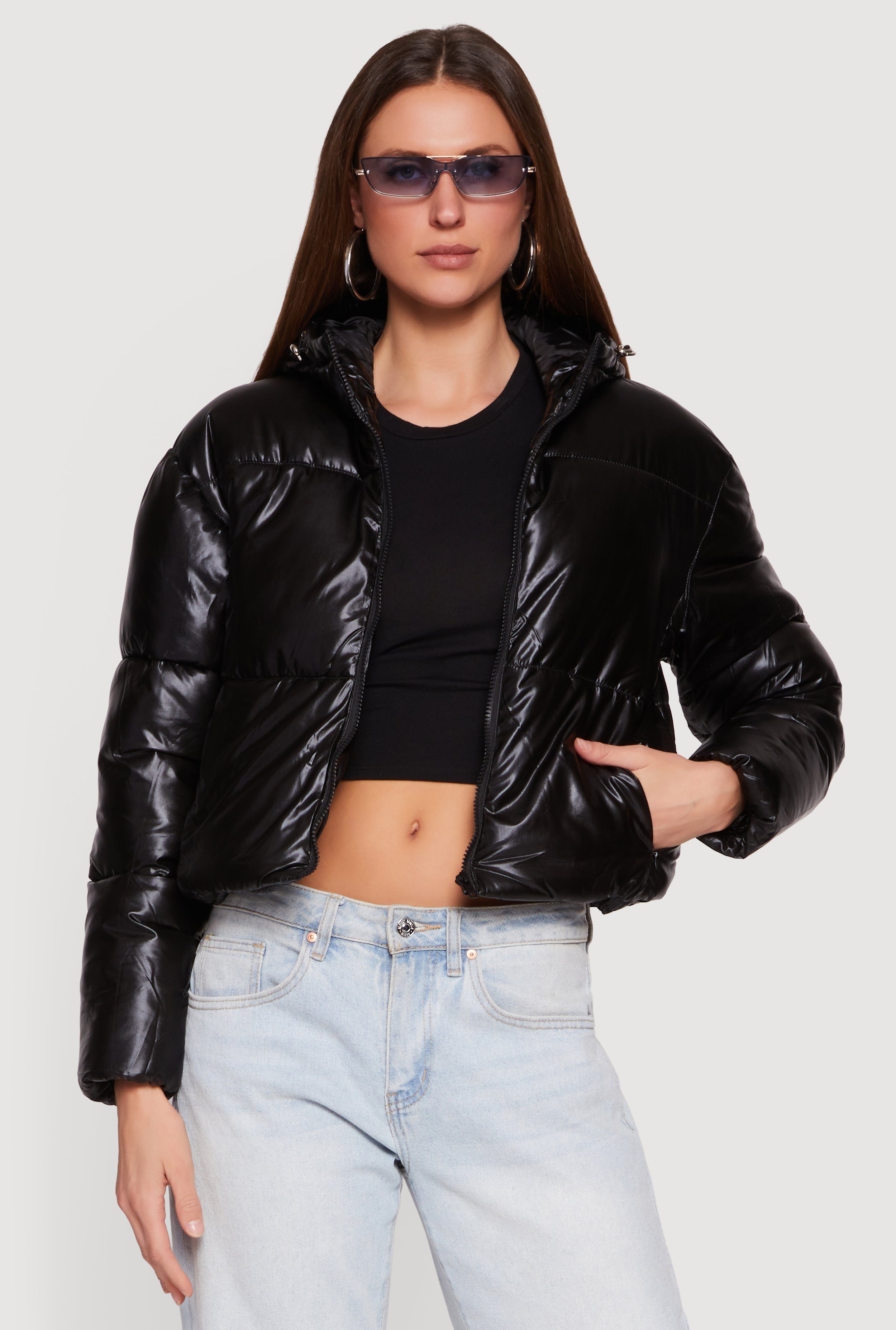 Faux Leather Sherpa Lined Cropped Puffer Vest