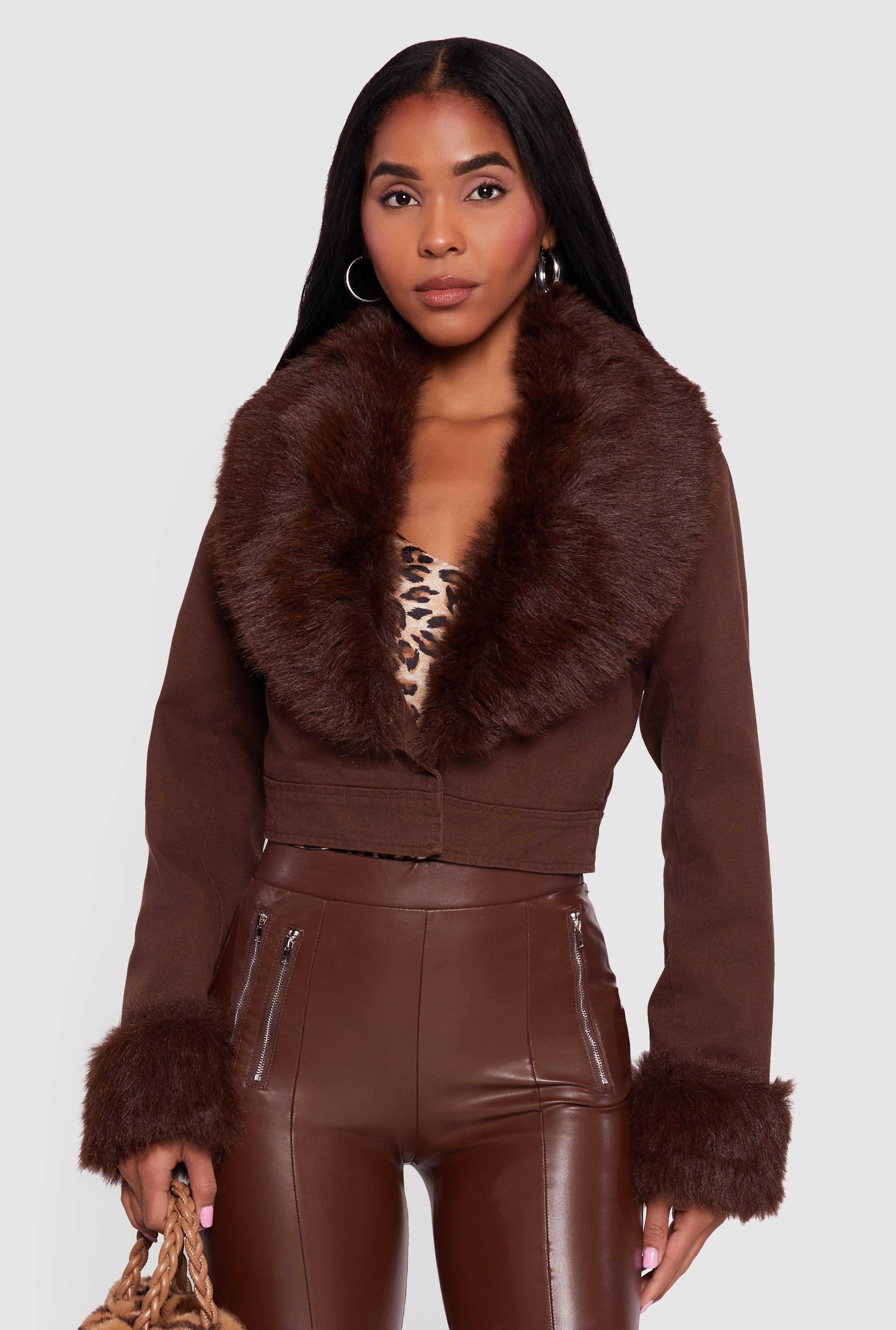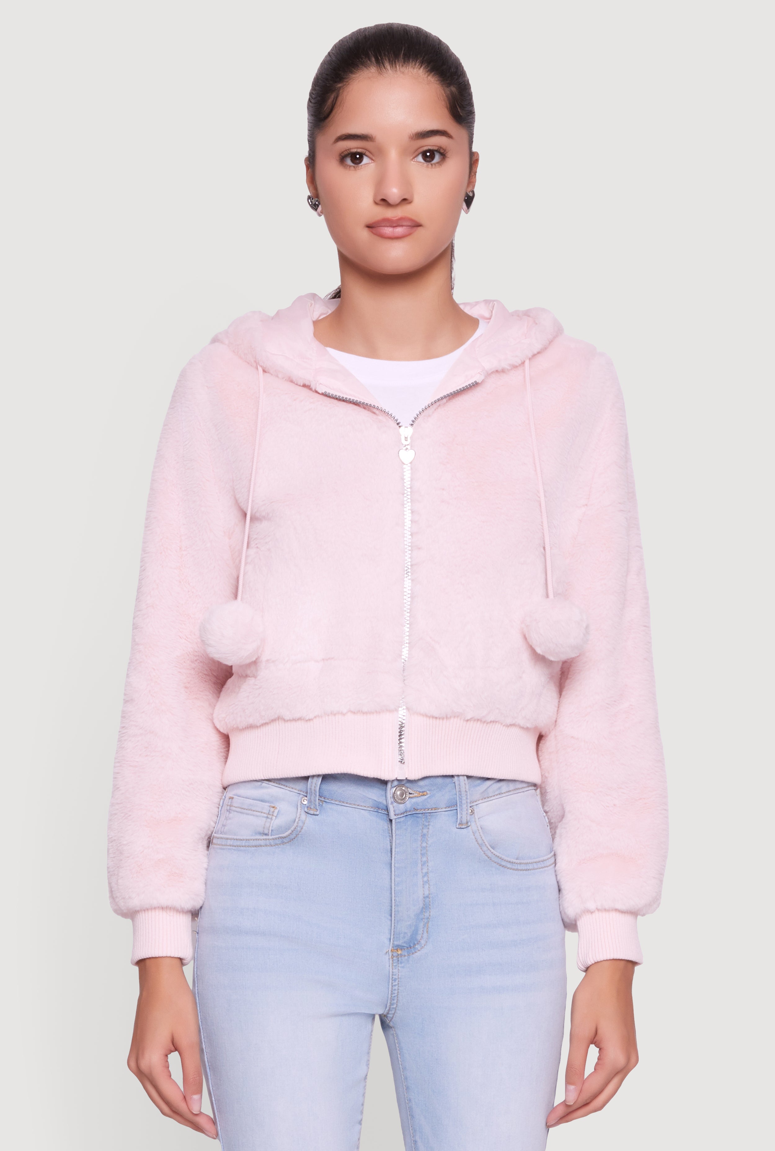 Pom Pom Drawstring Hooded Faux Fur Jacket