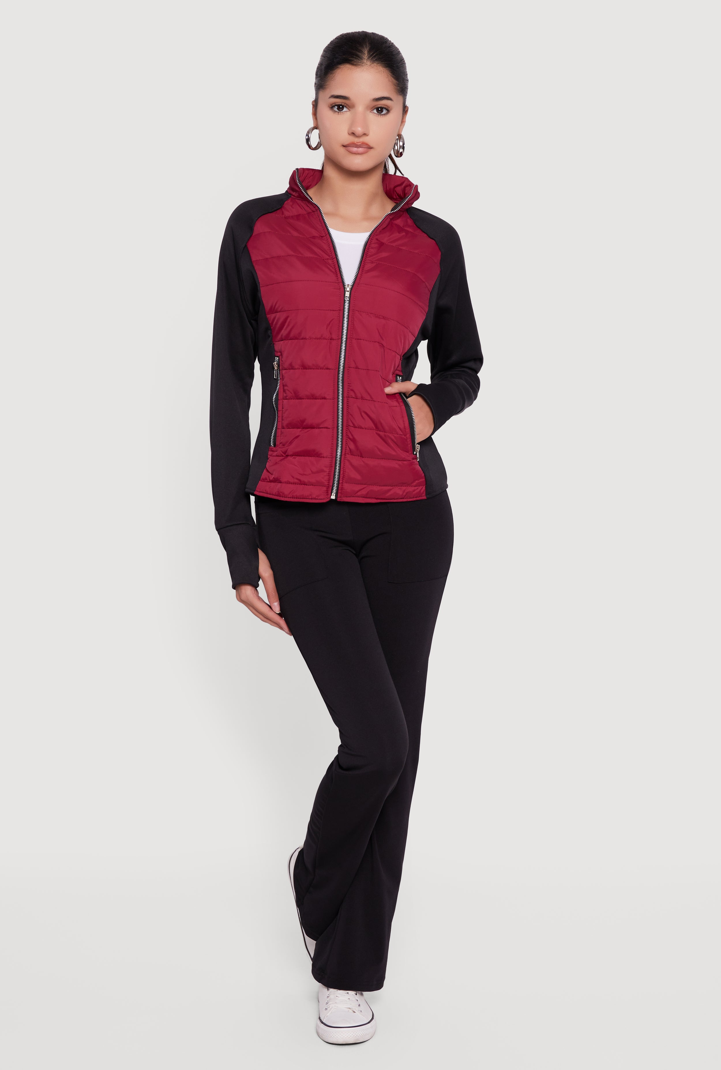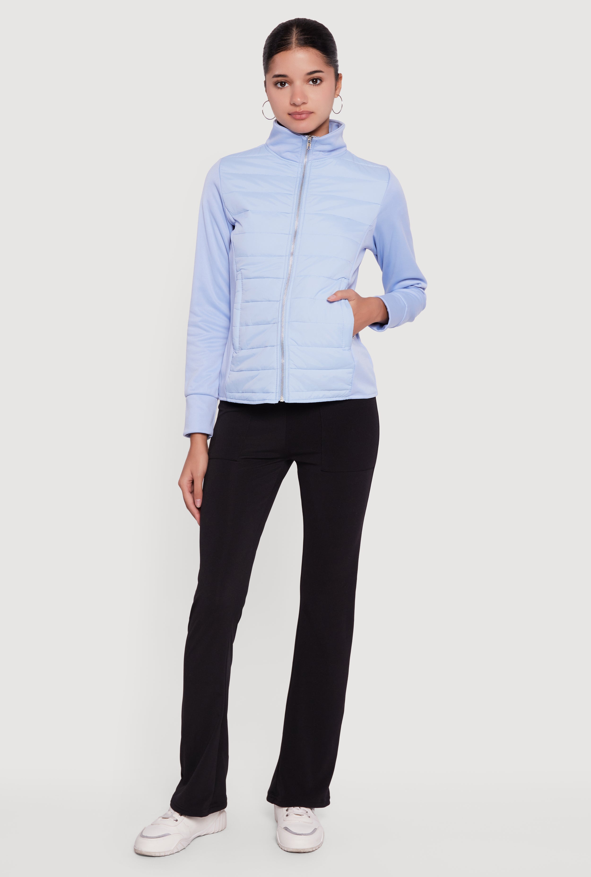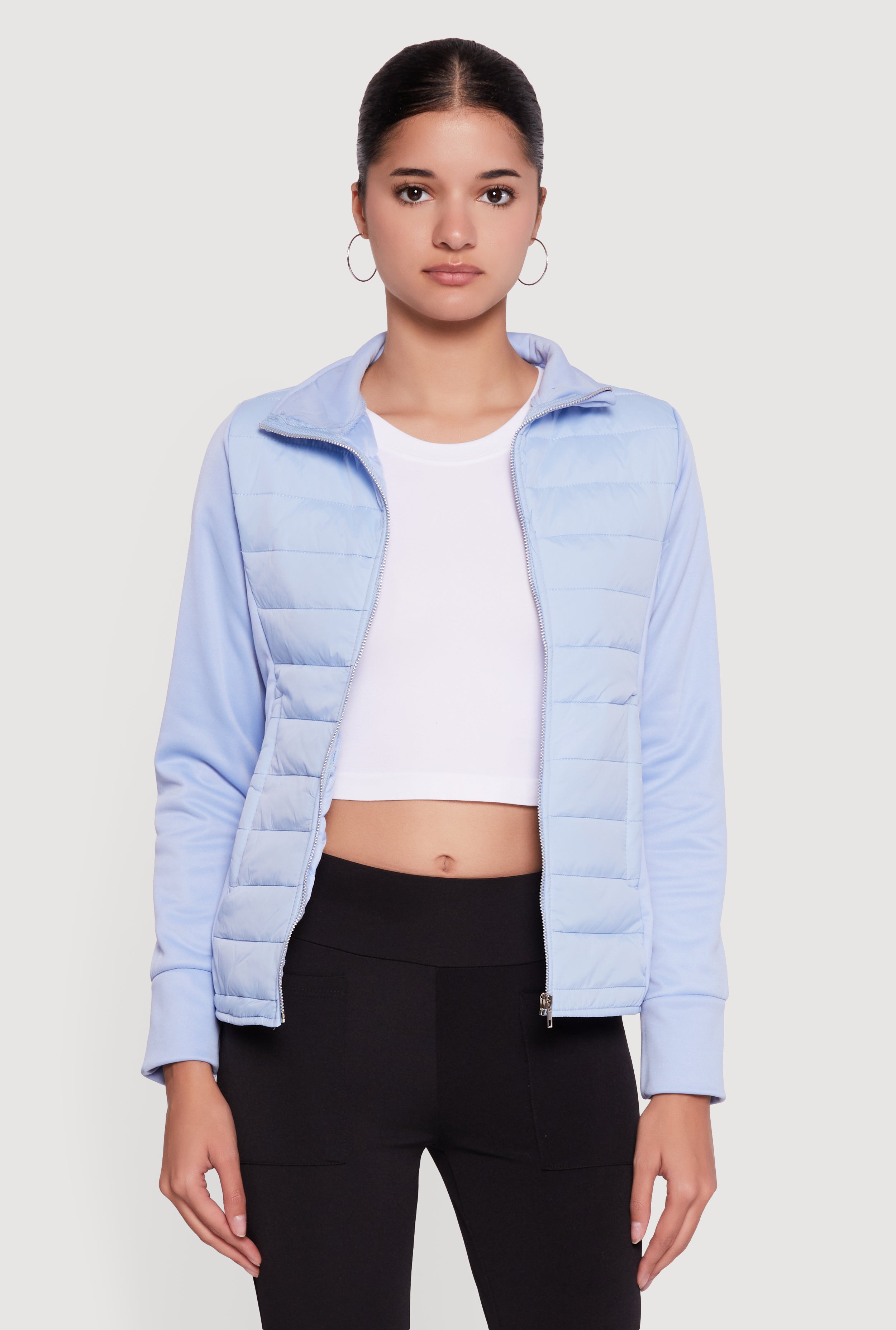 Fleece Lined Long Sleeve Hybrid Quilted Puffer Jacket