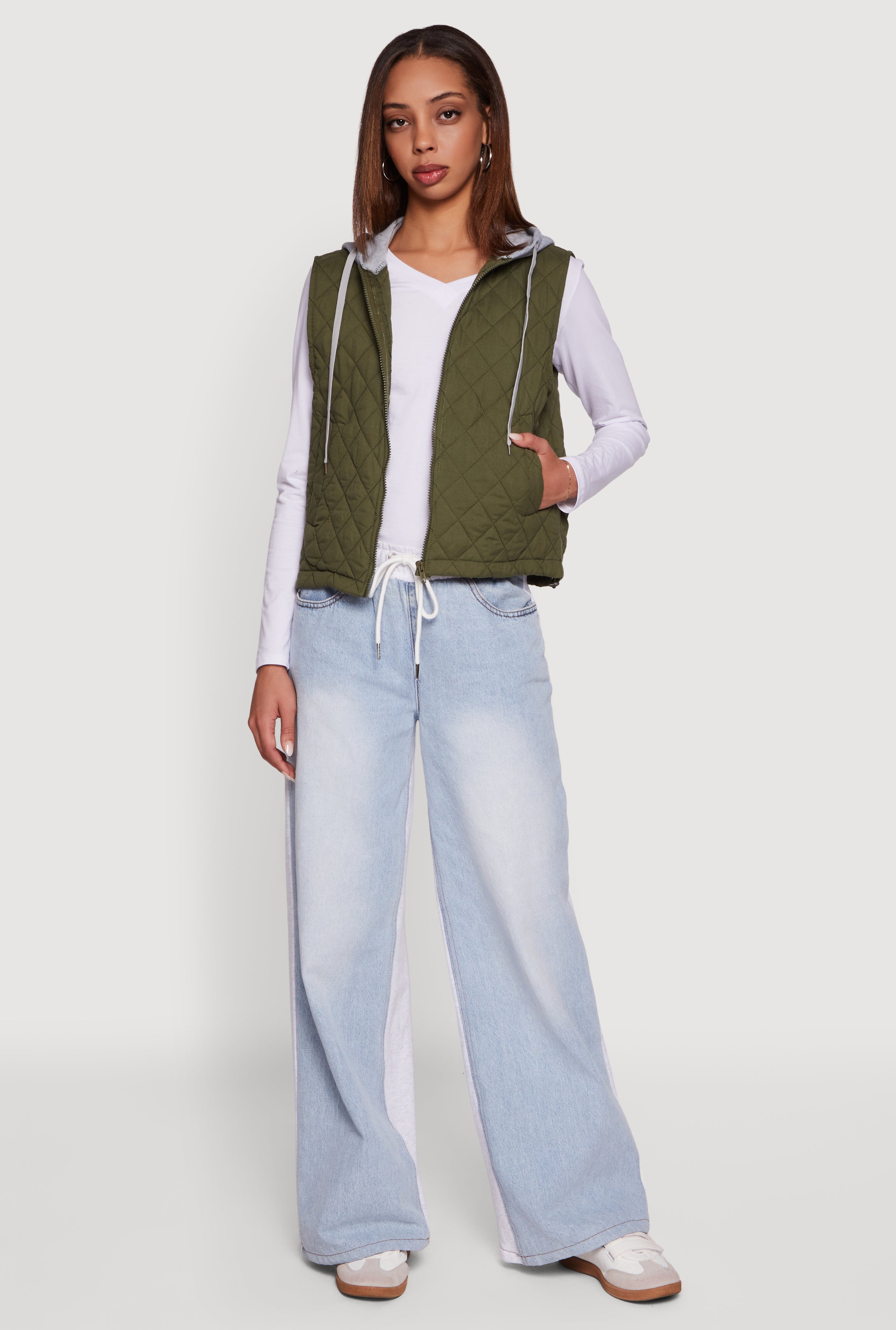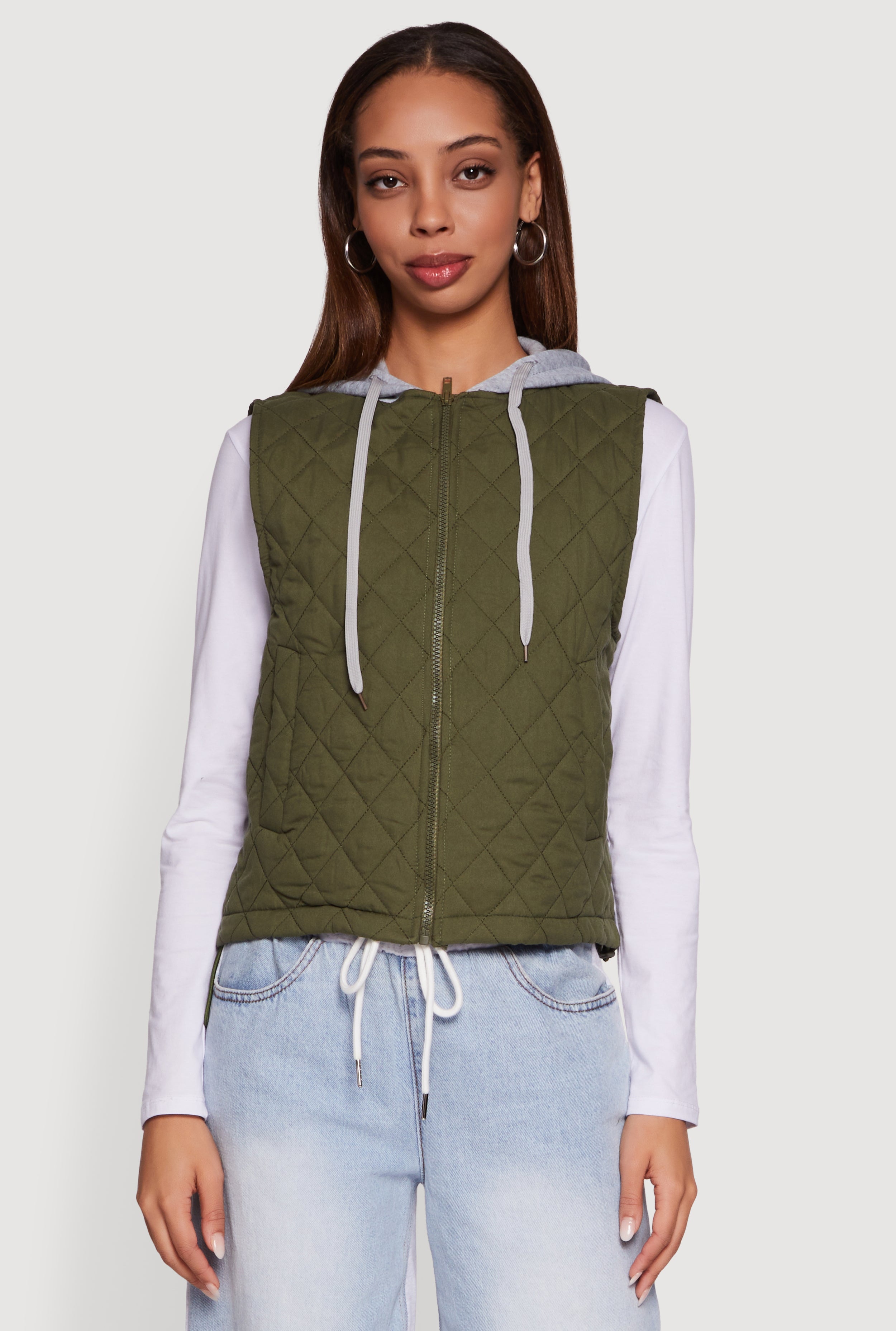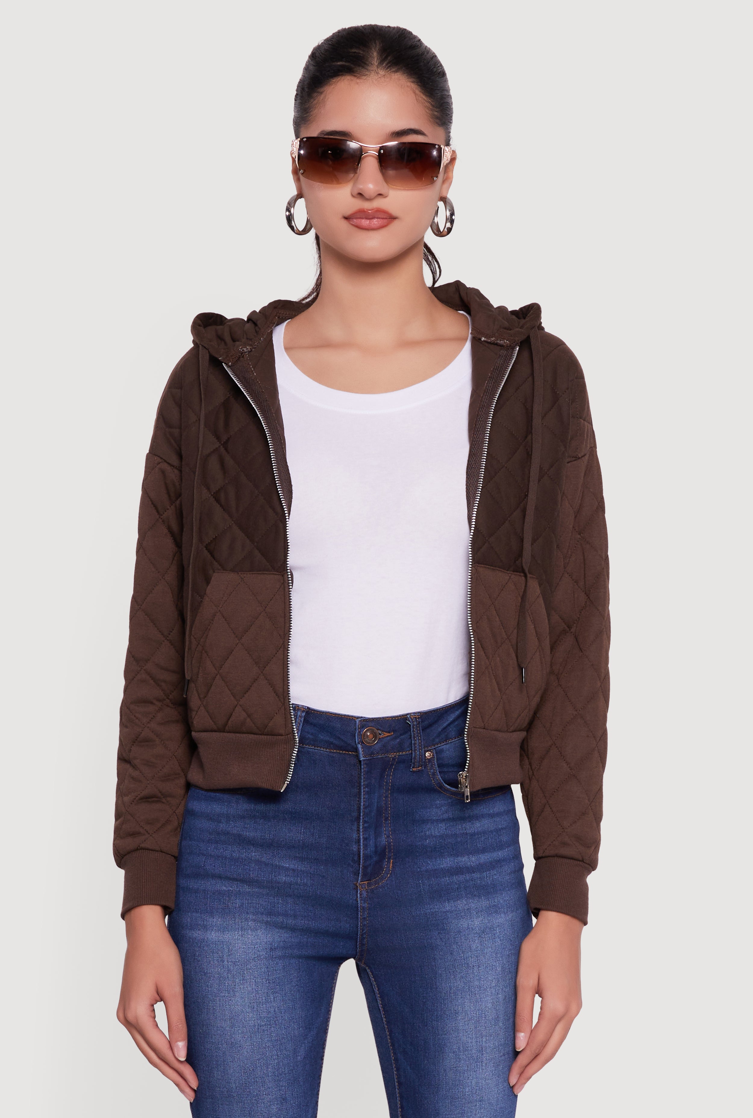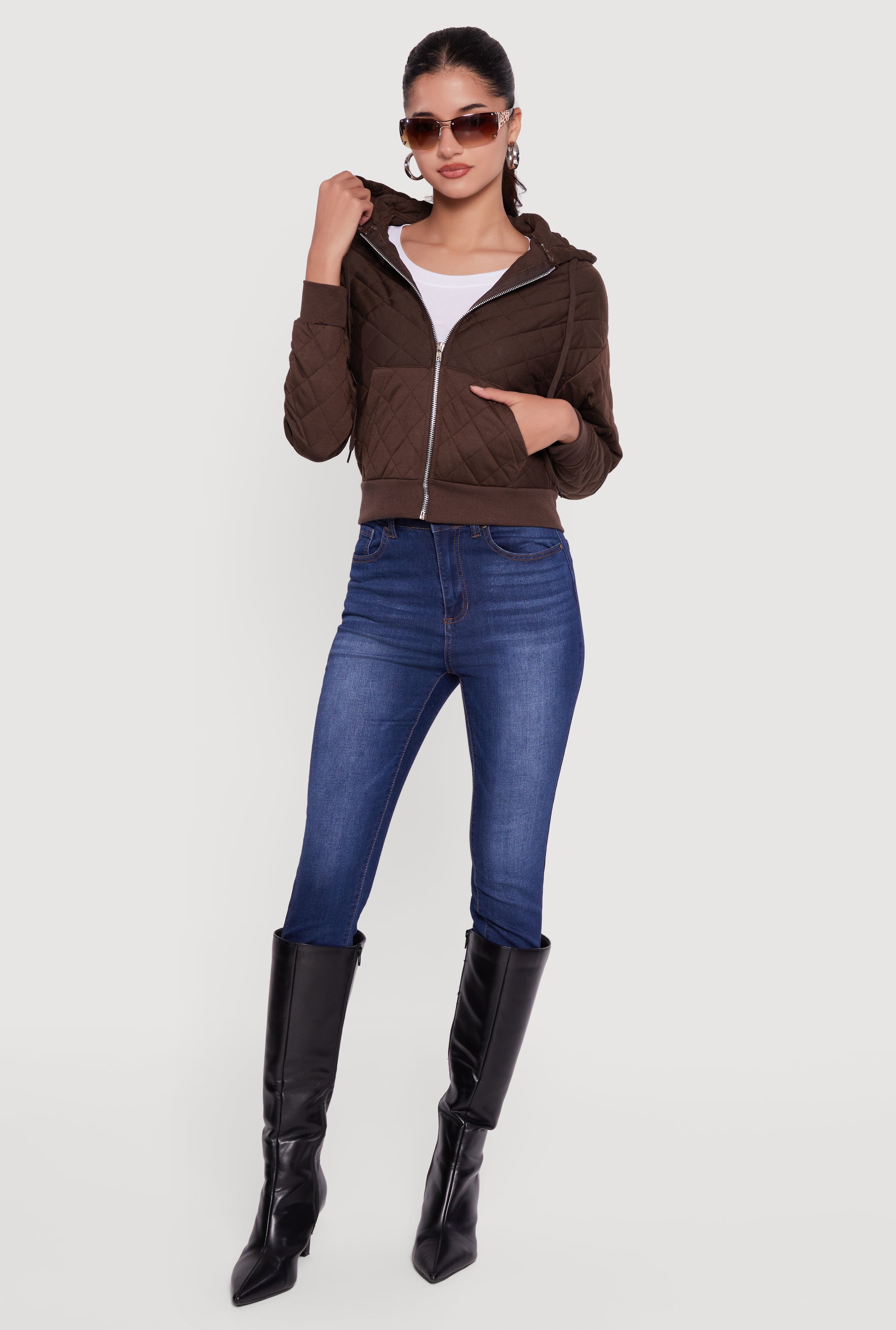 Fleece Lined Long Sleeve Hybrid Quilted Puffer Jacket