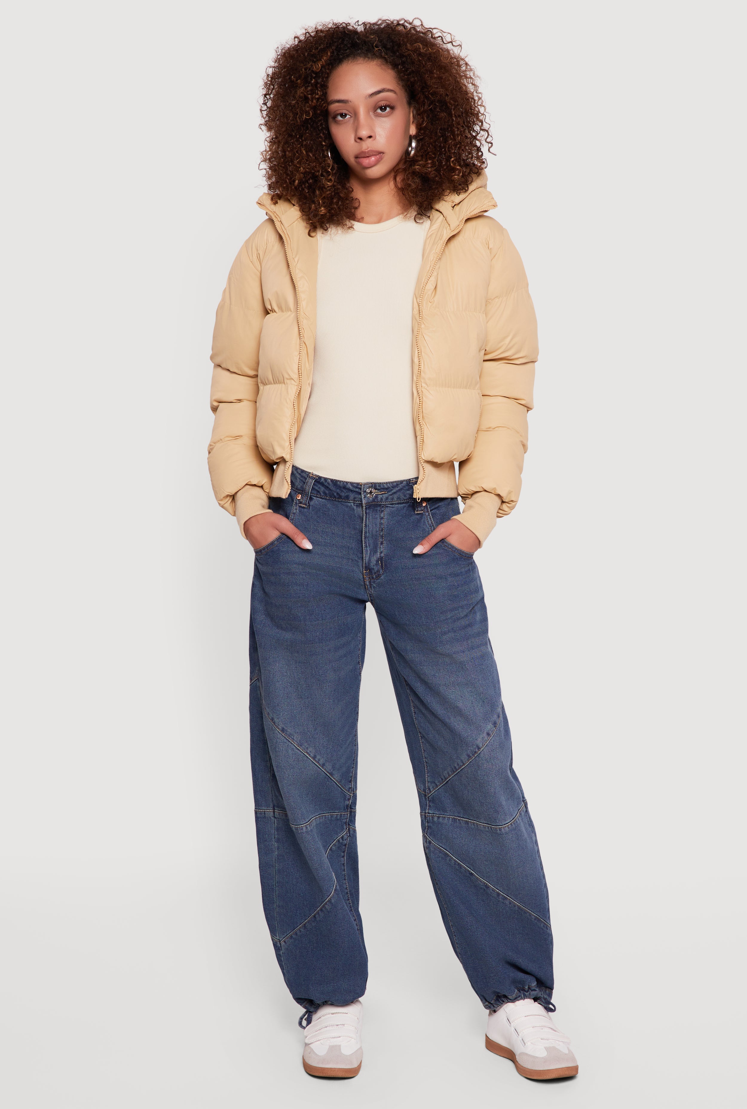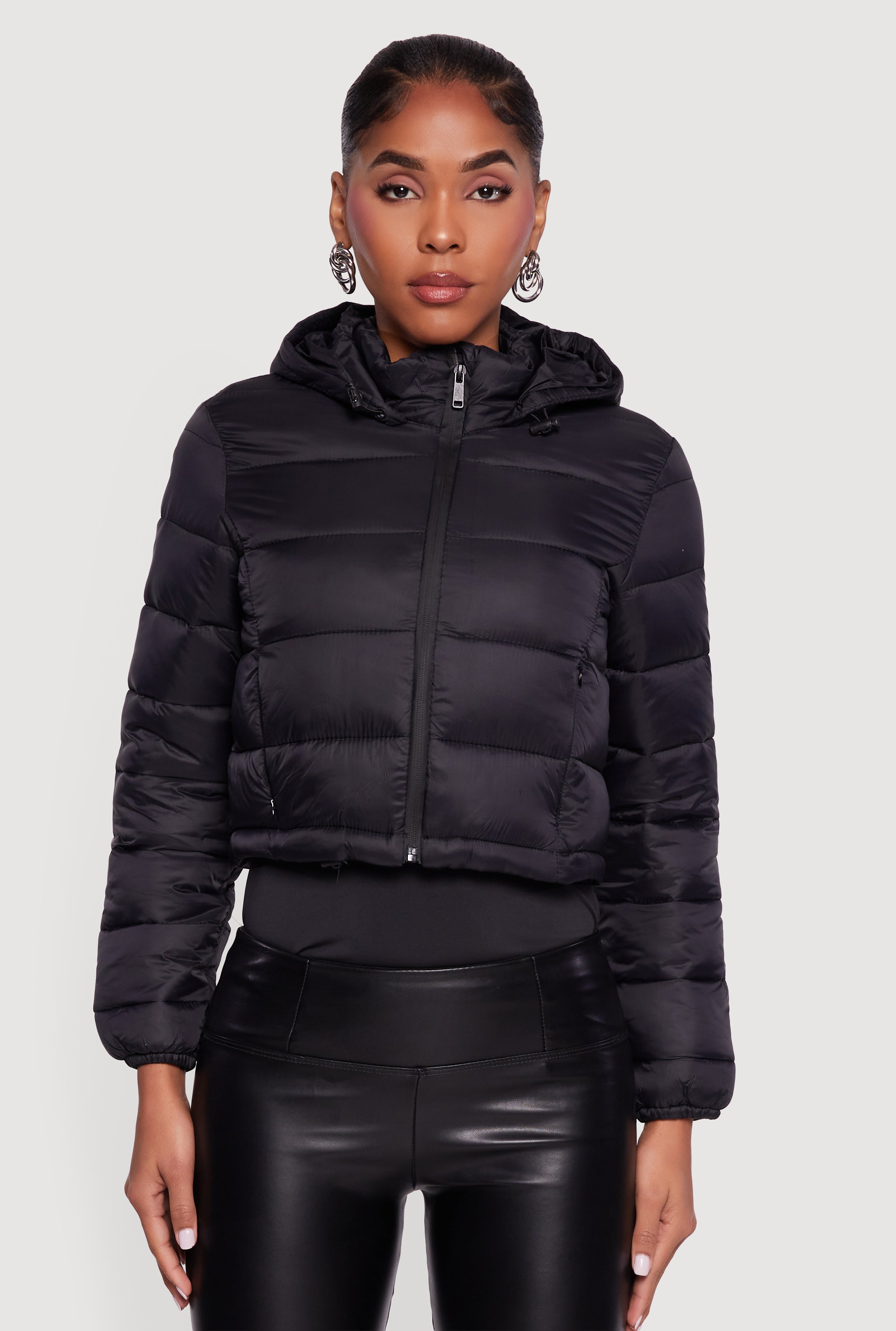 Hooded Cropped Puffer Jacket with Zip Pockets