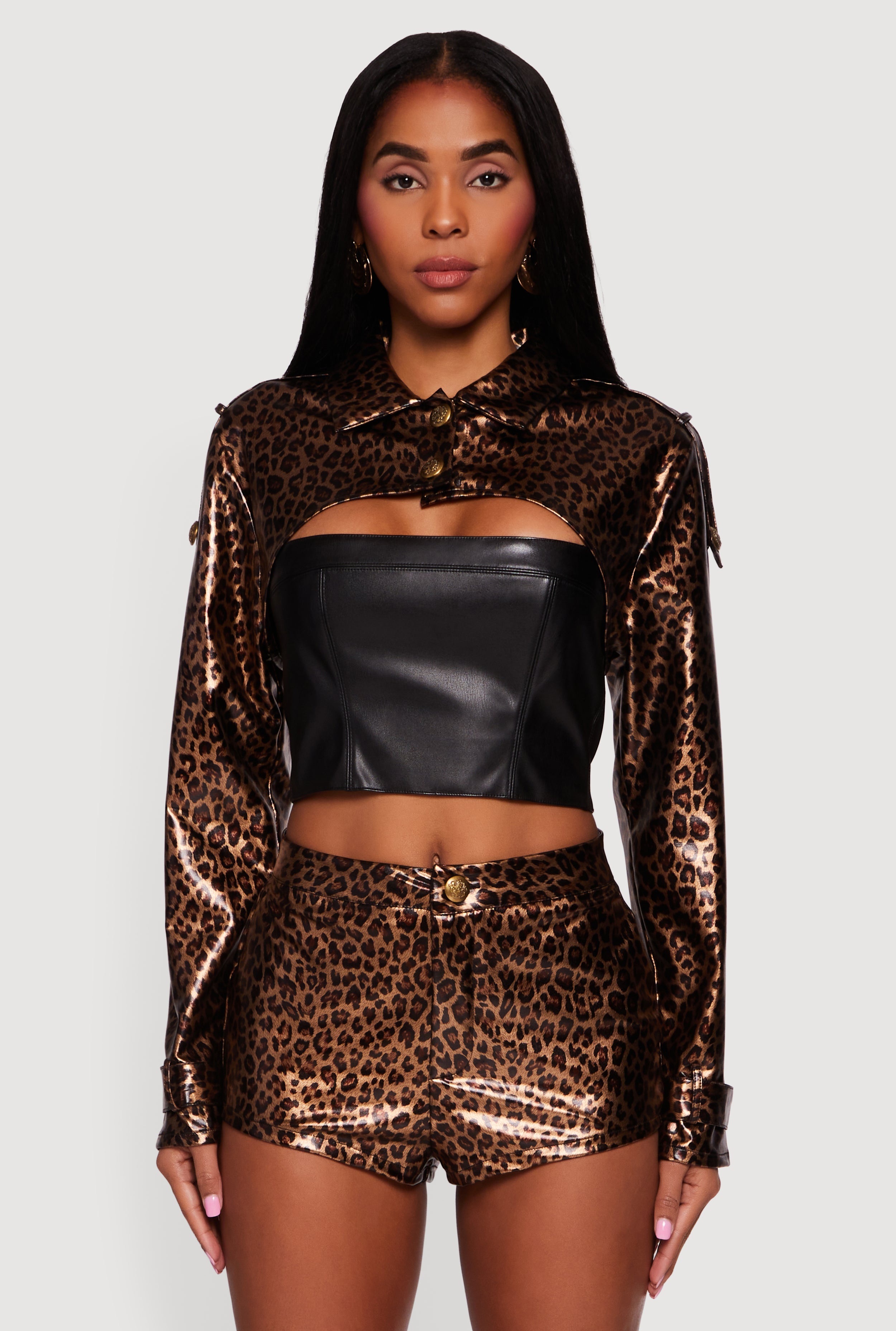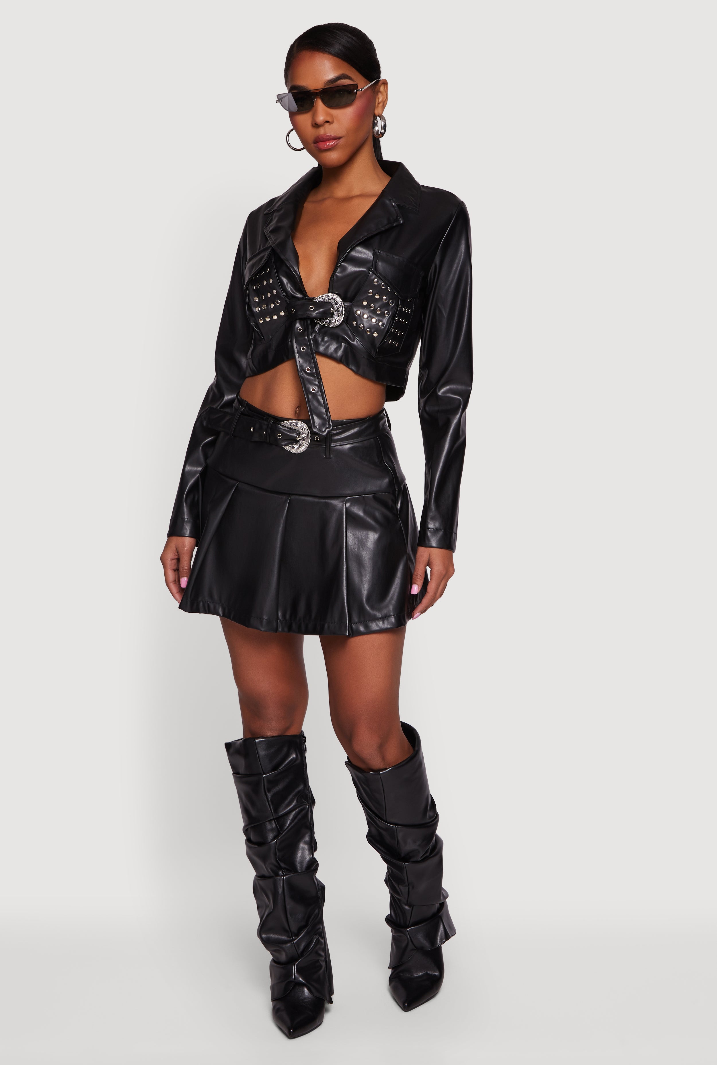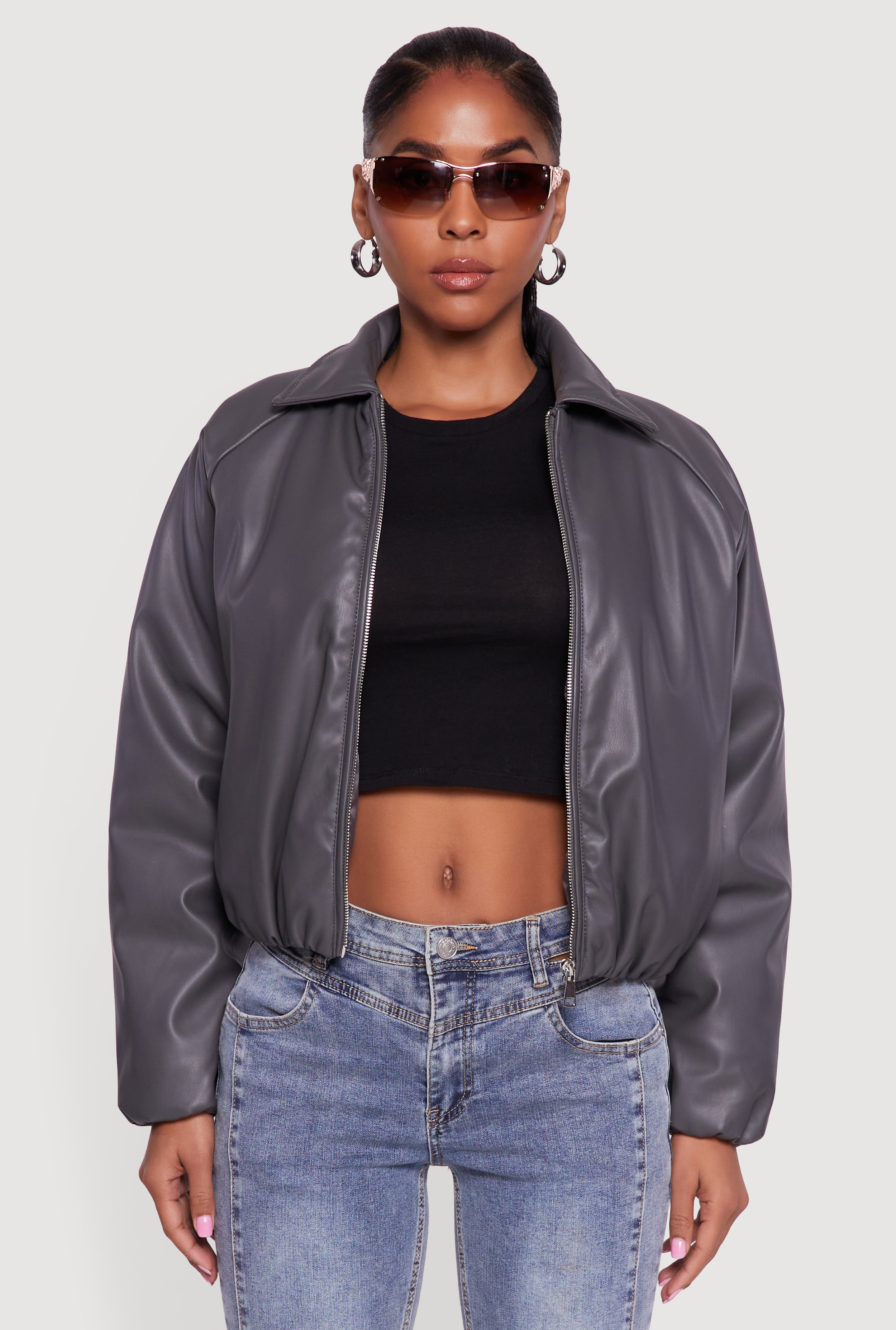 Trendy Faux Leather Buckle Detail Bolero Puffer Jacket