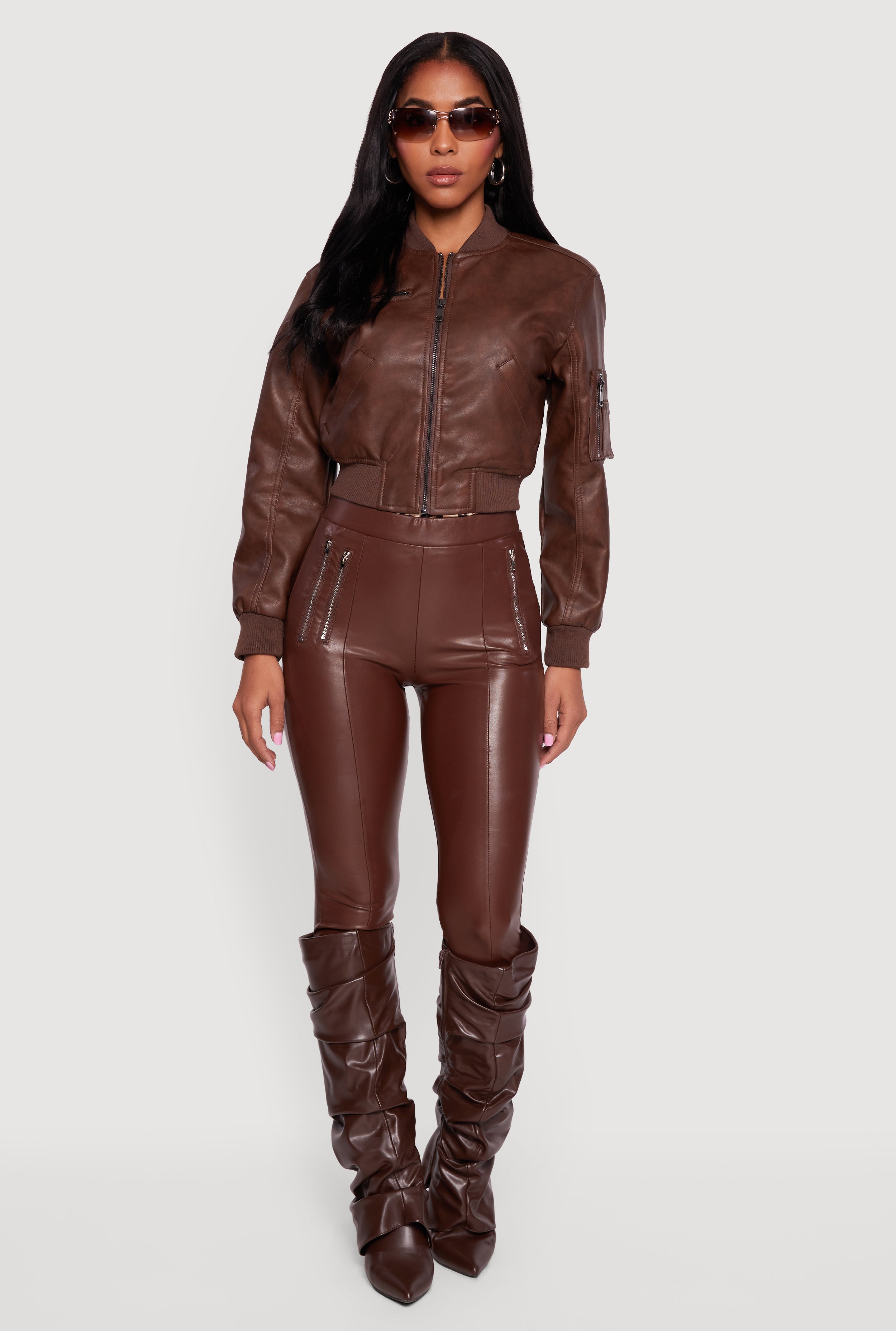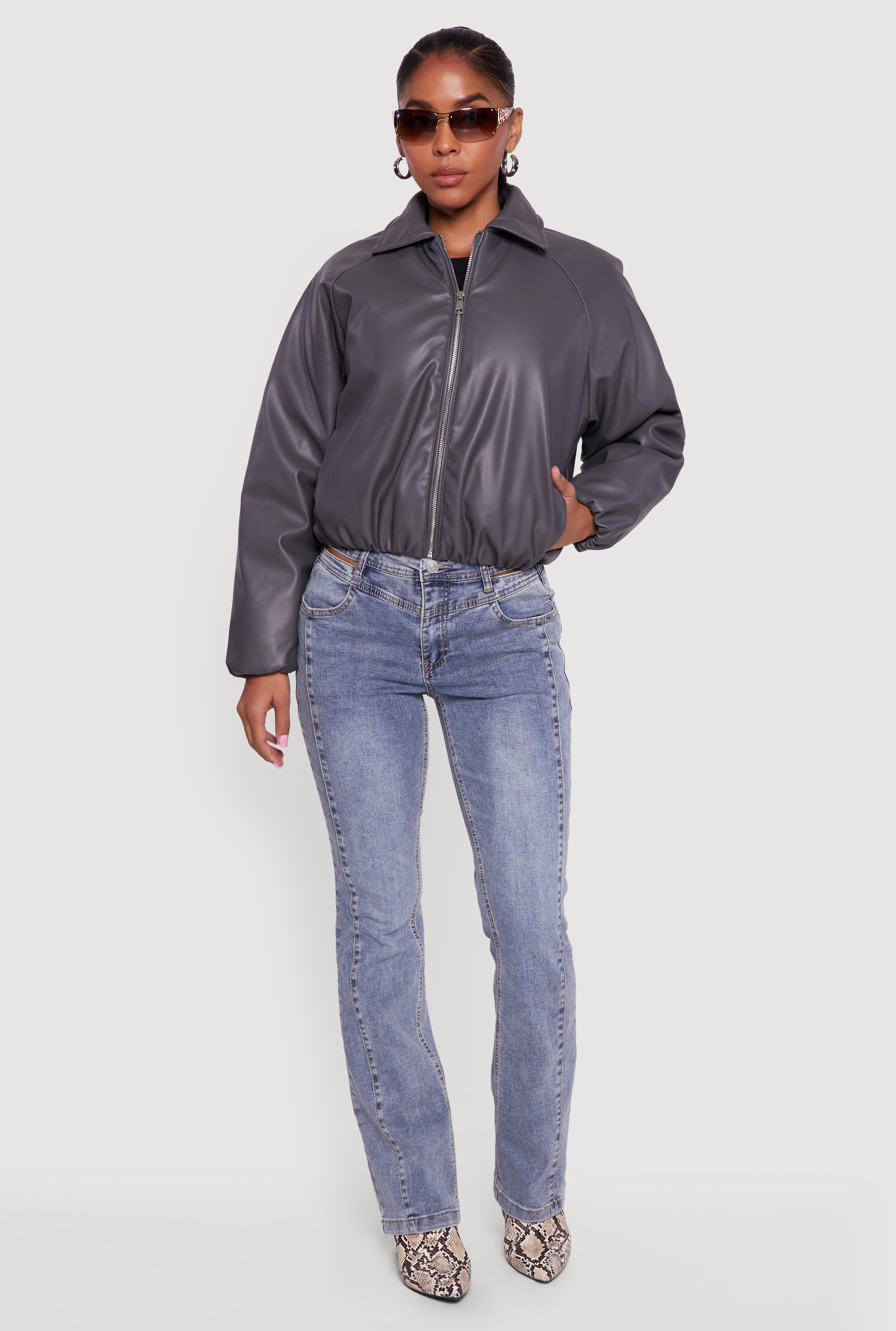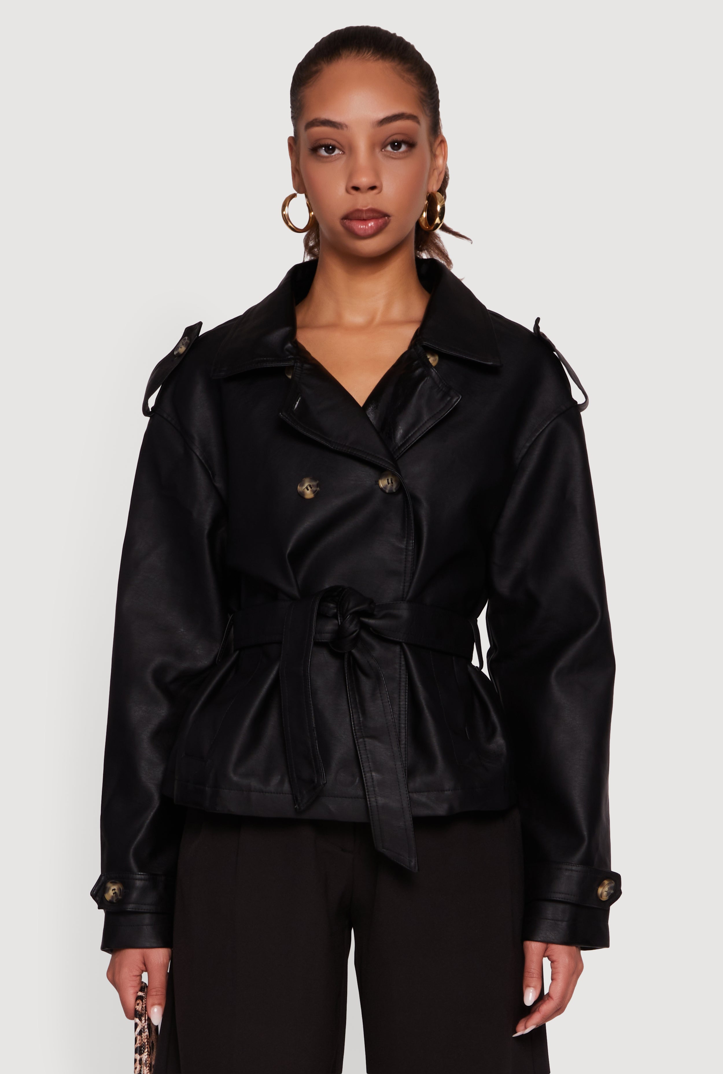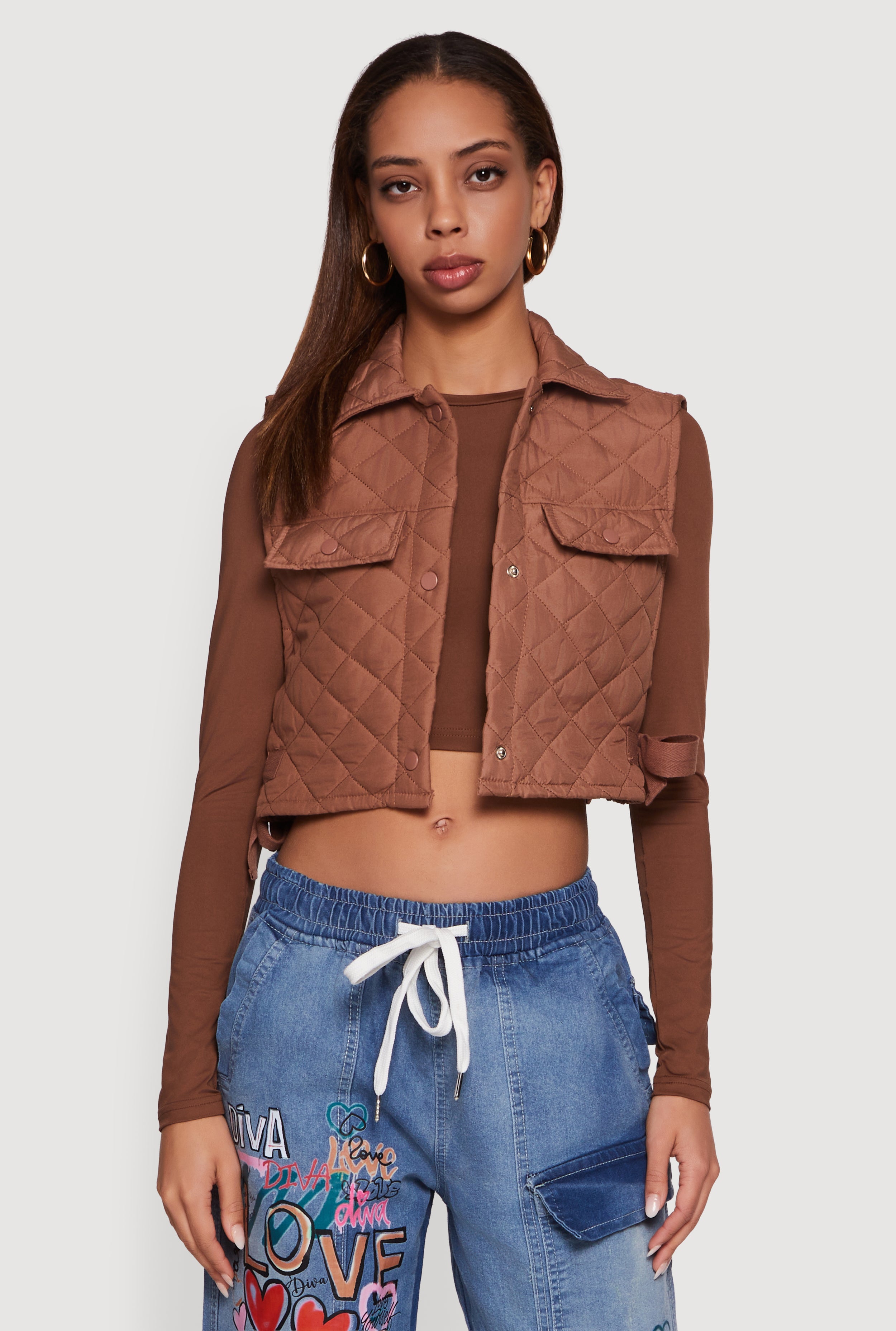 Trendy Faux Leather Buckle Detail Bolero Puffer Jacket