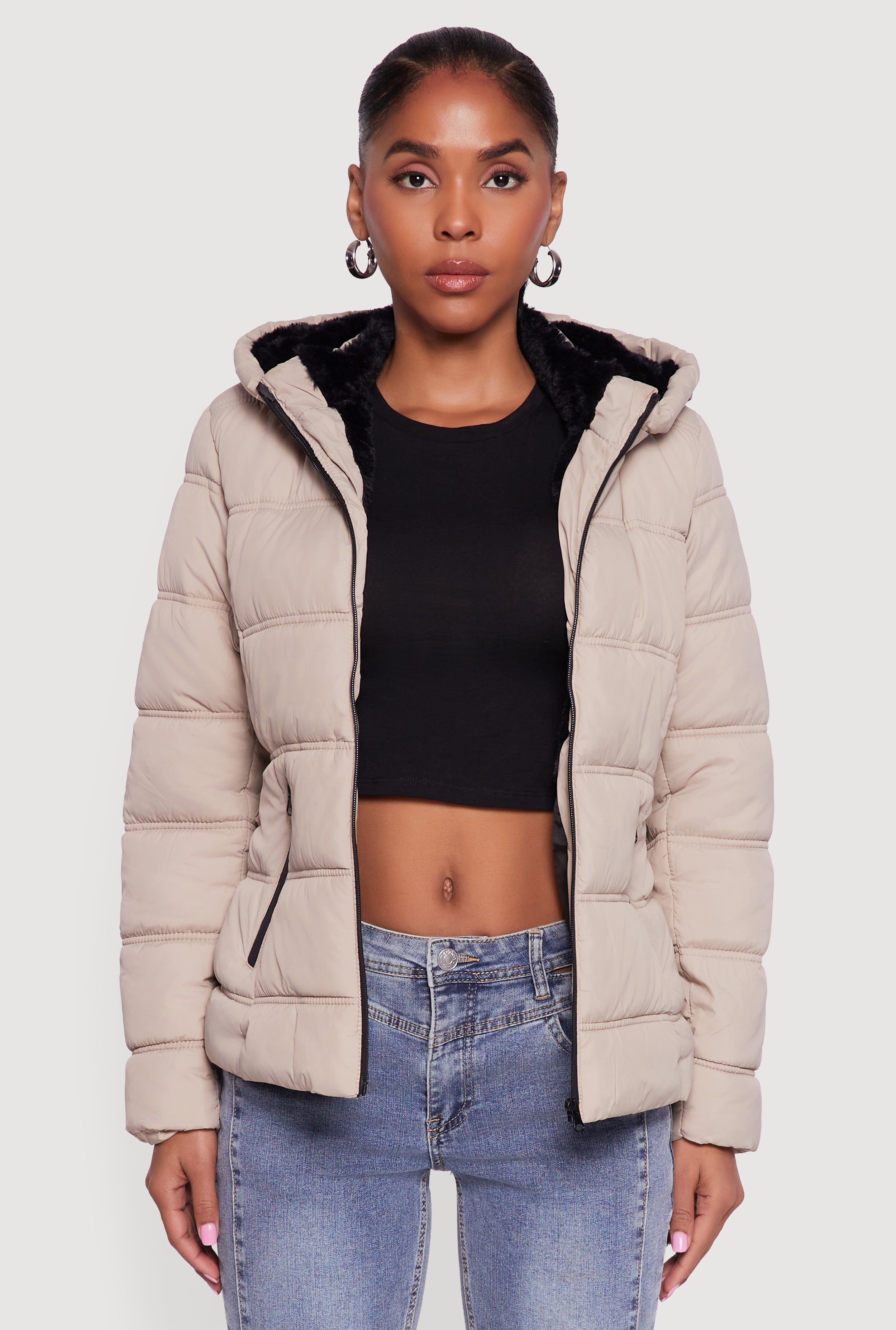 Faux Fur Lined Hooded Puffer Jacket with Belt