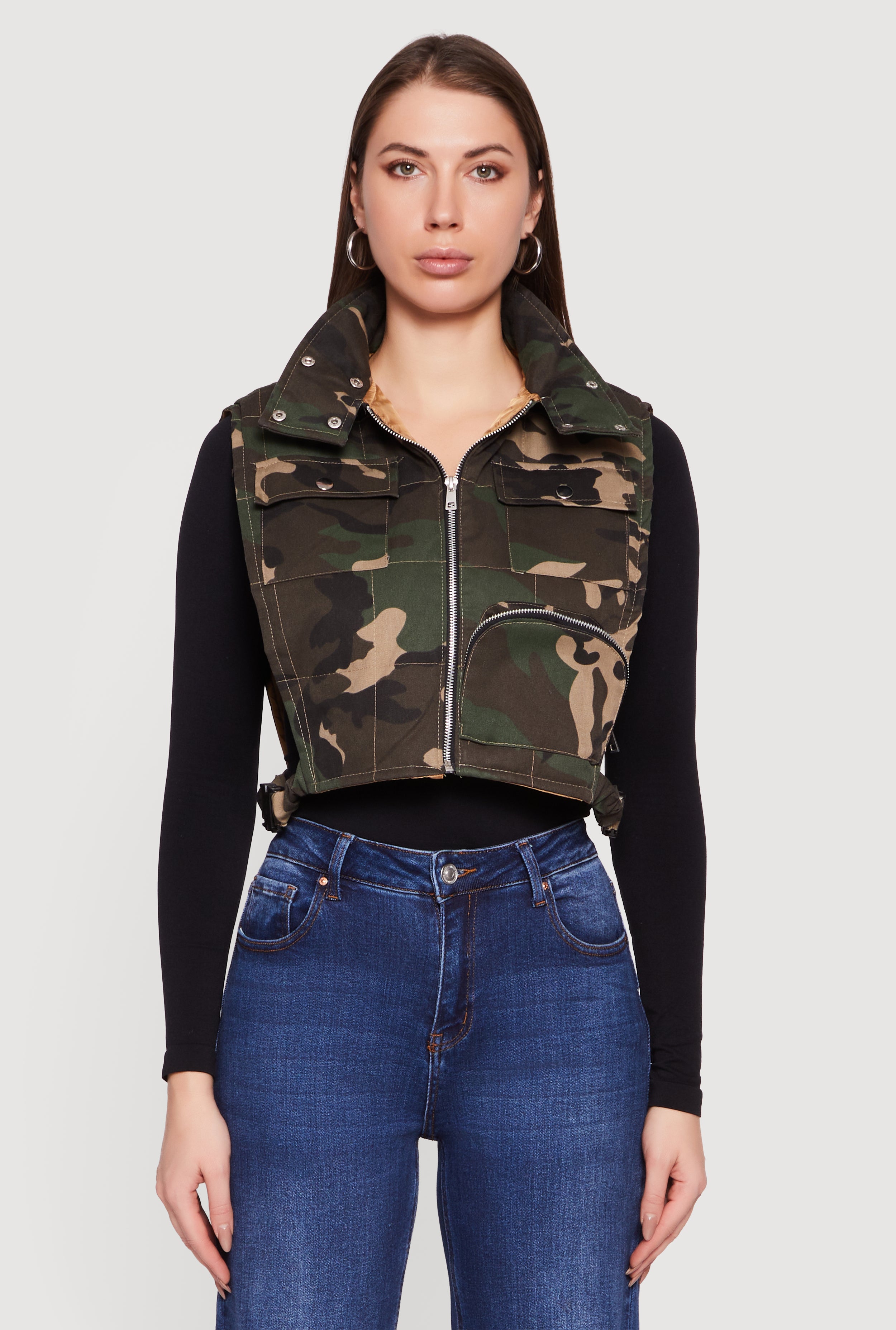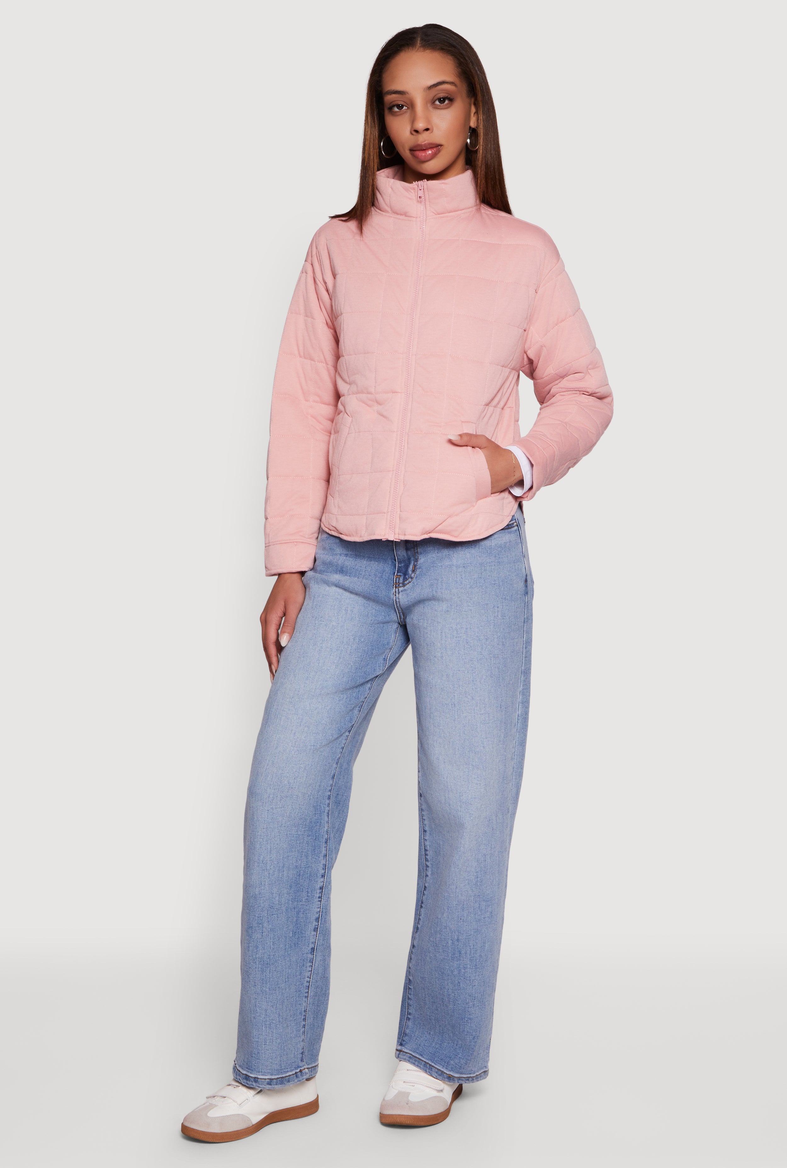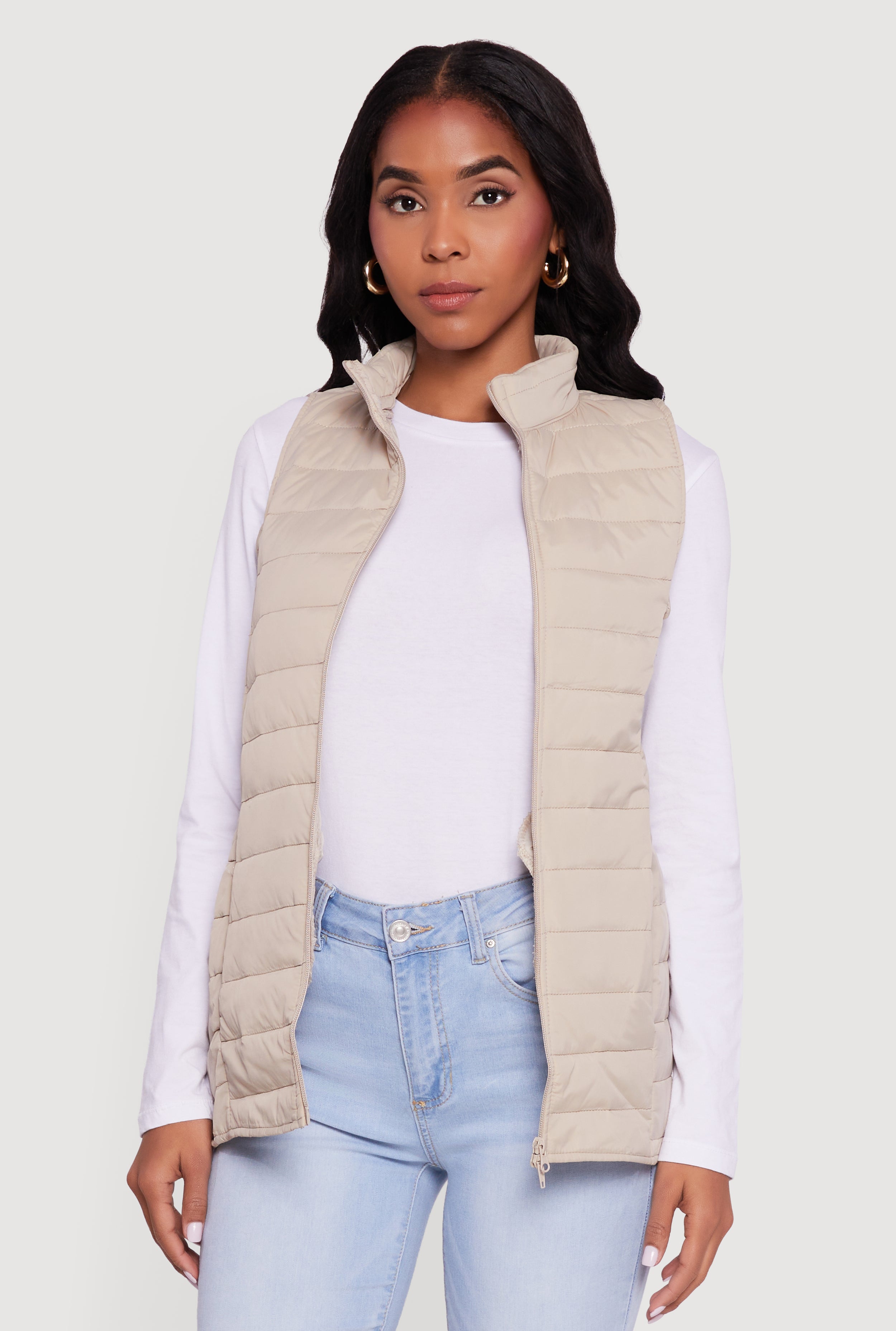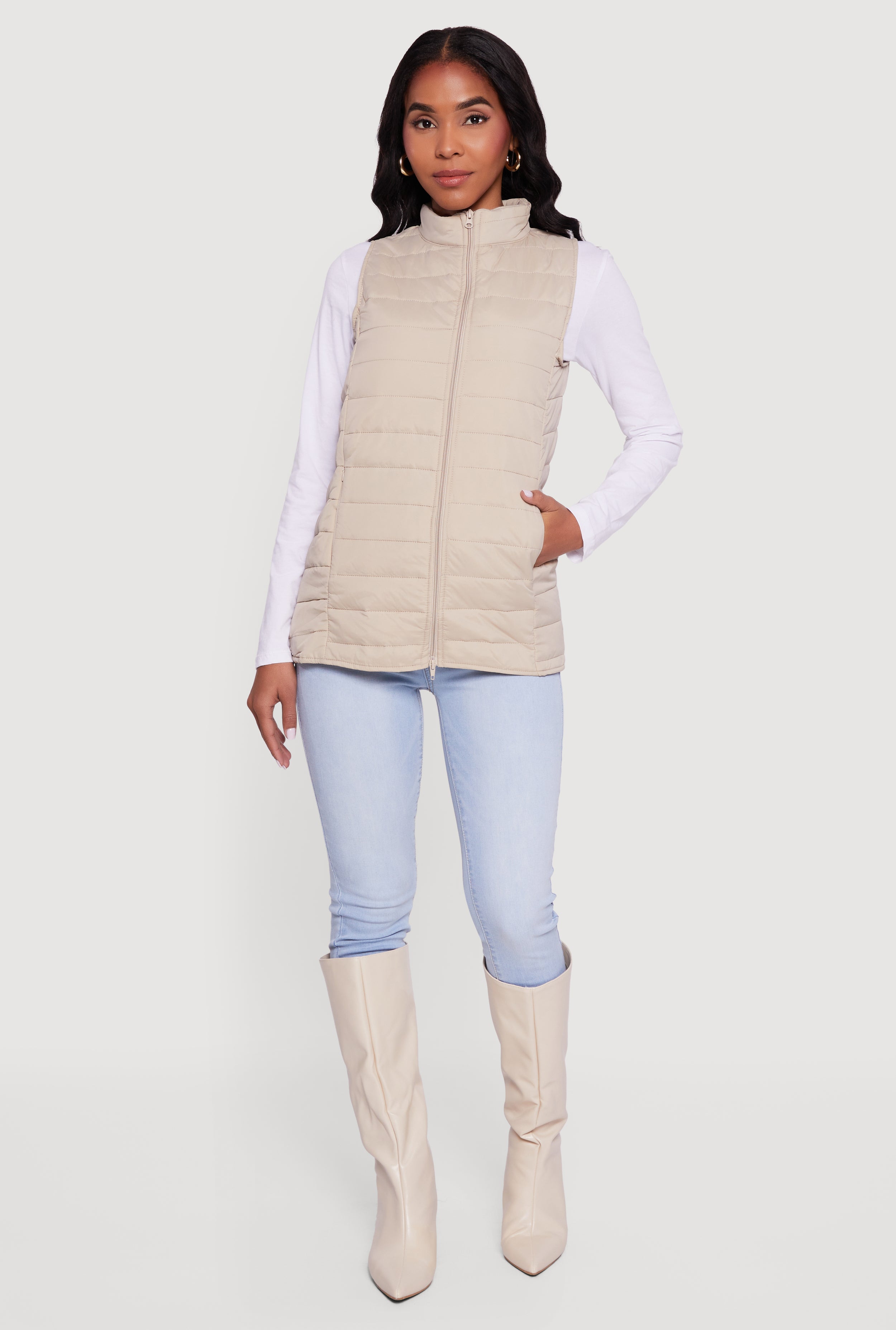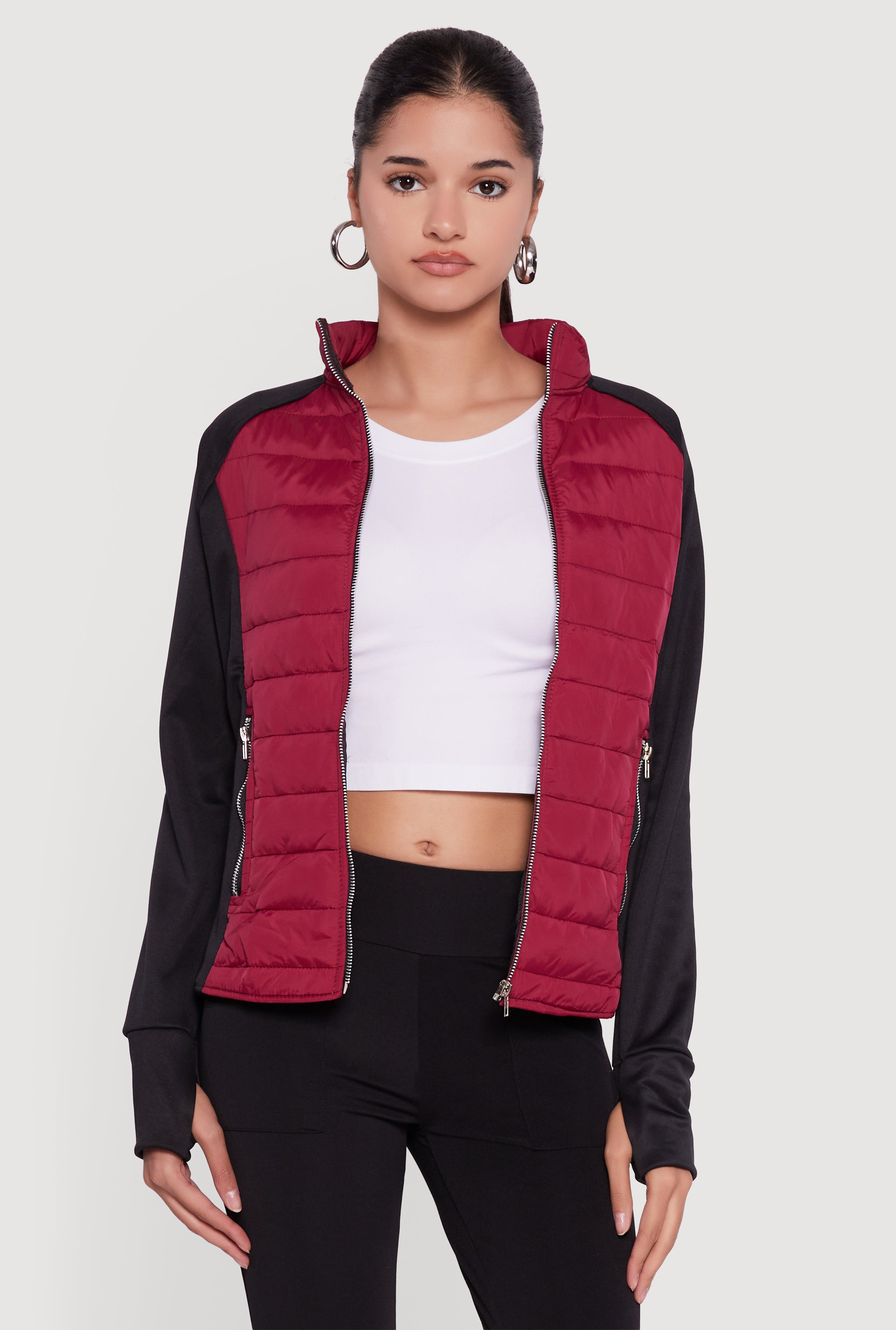 Lightweight Zip Front Puffer Jacket with Thumb Holes