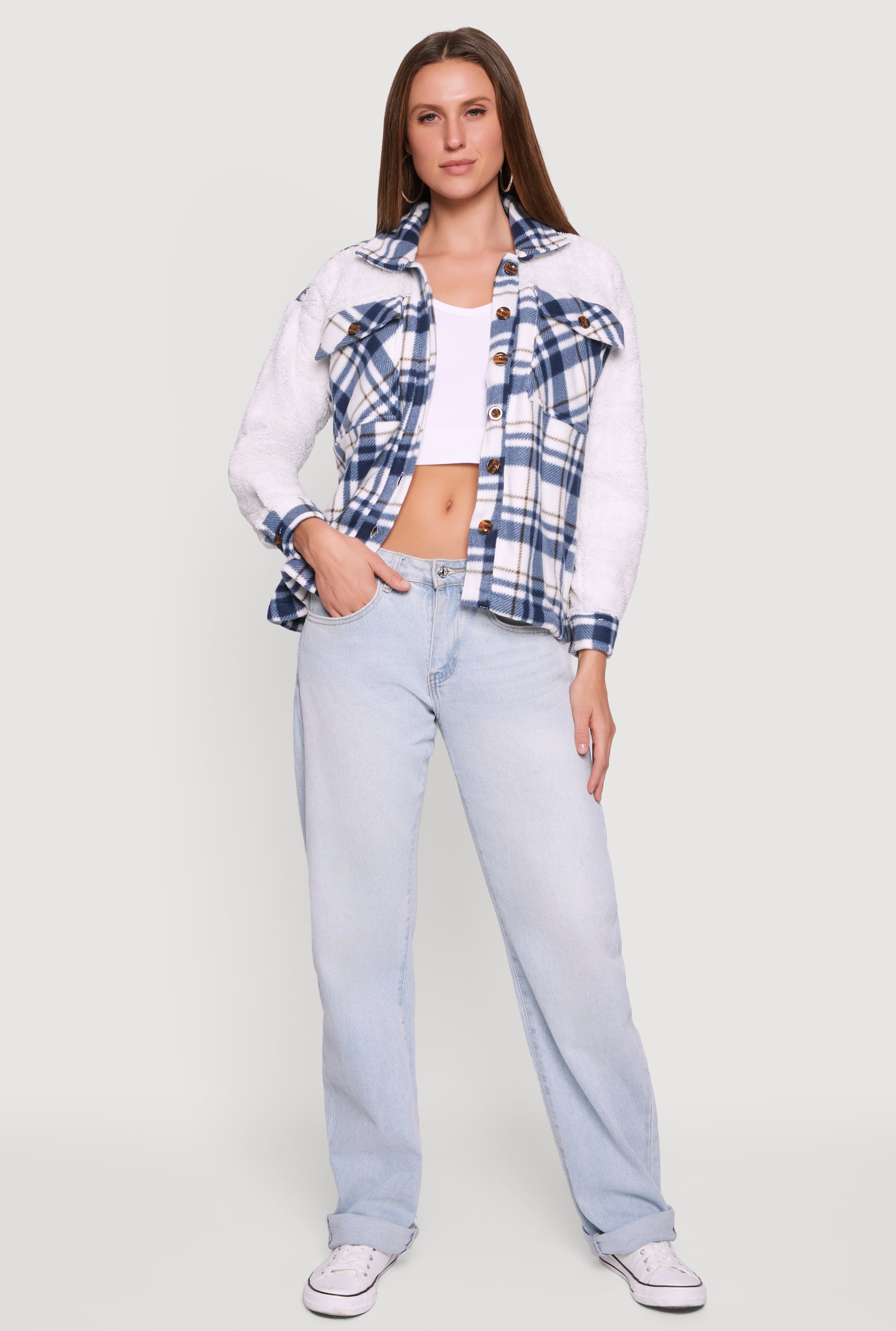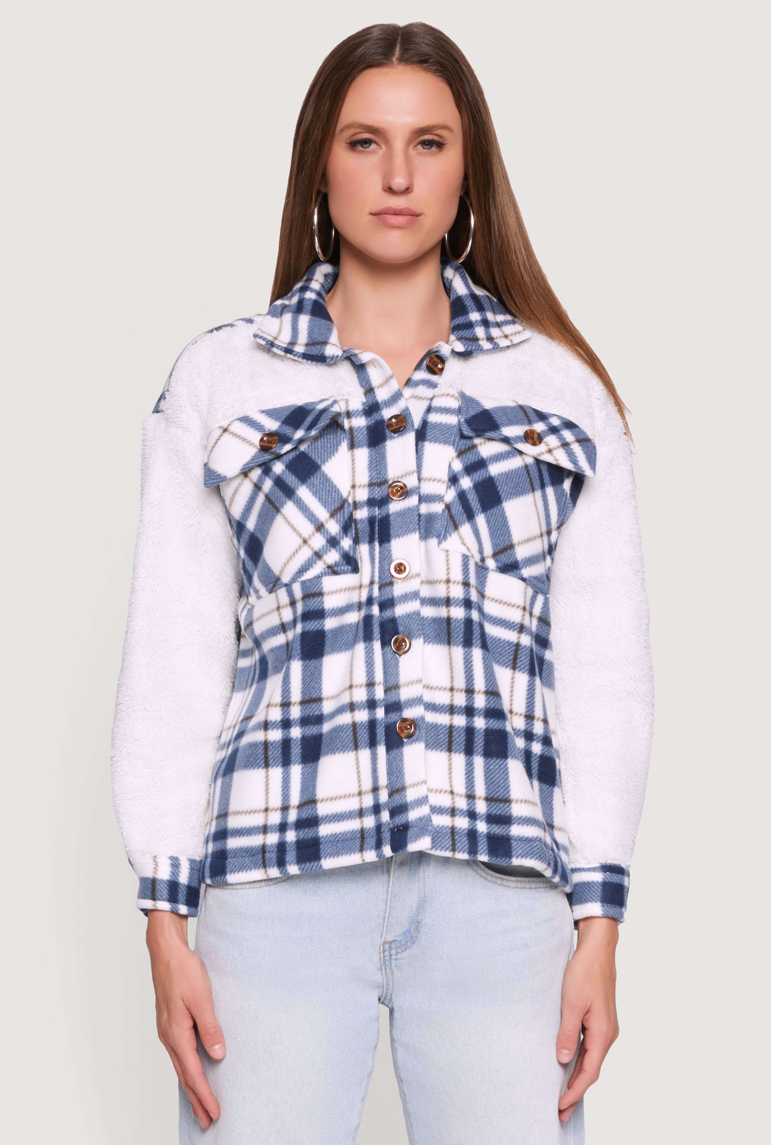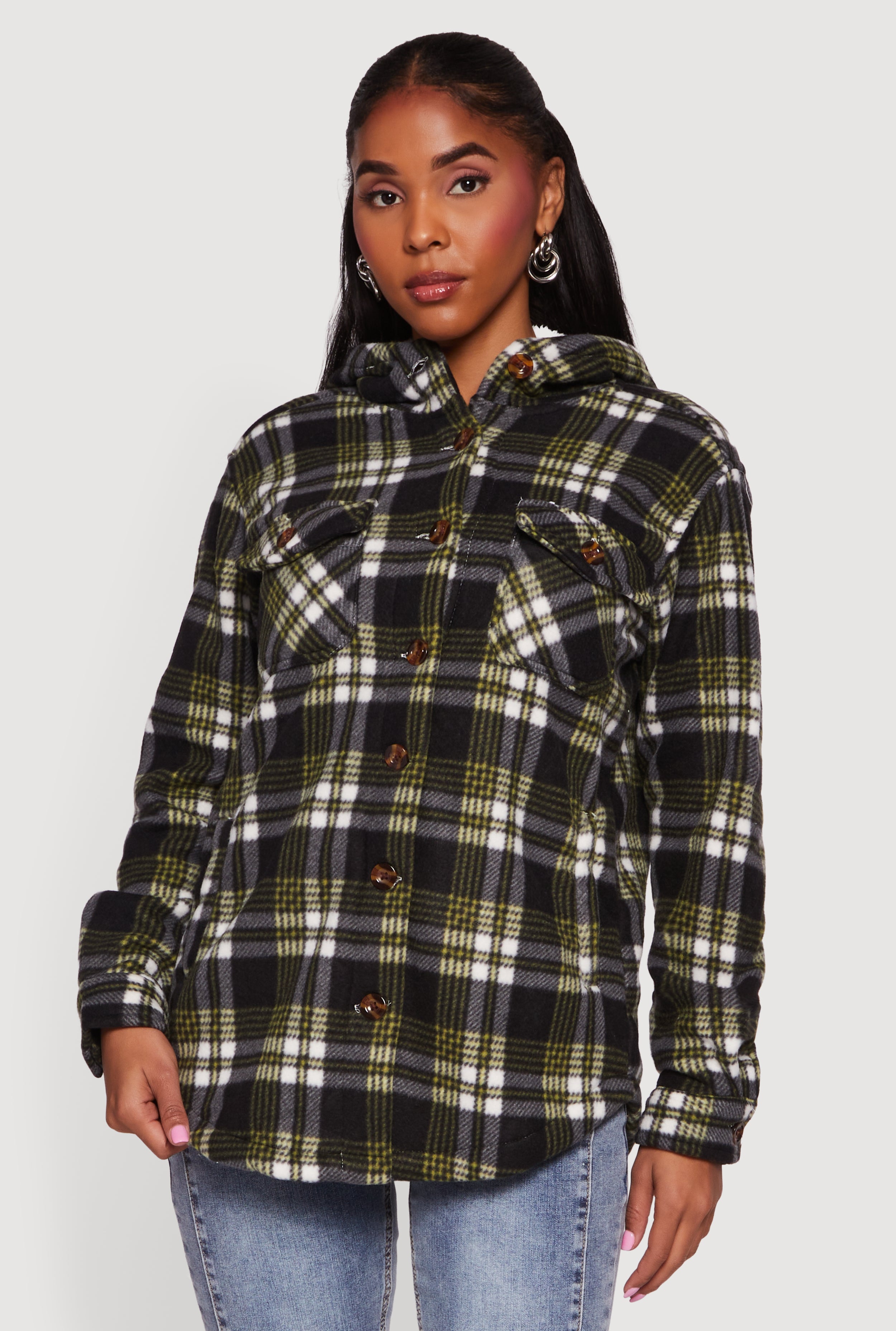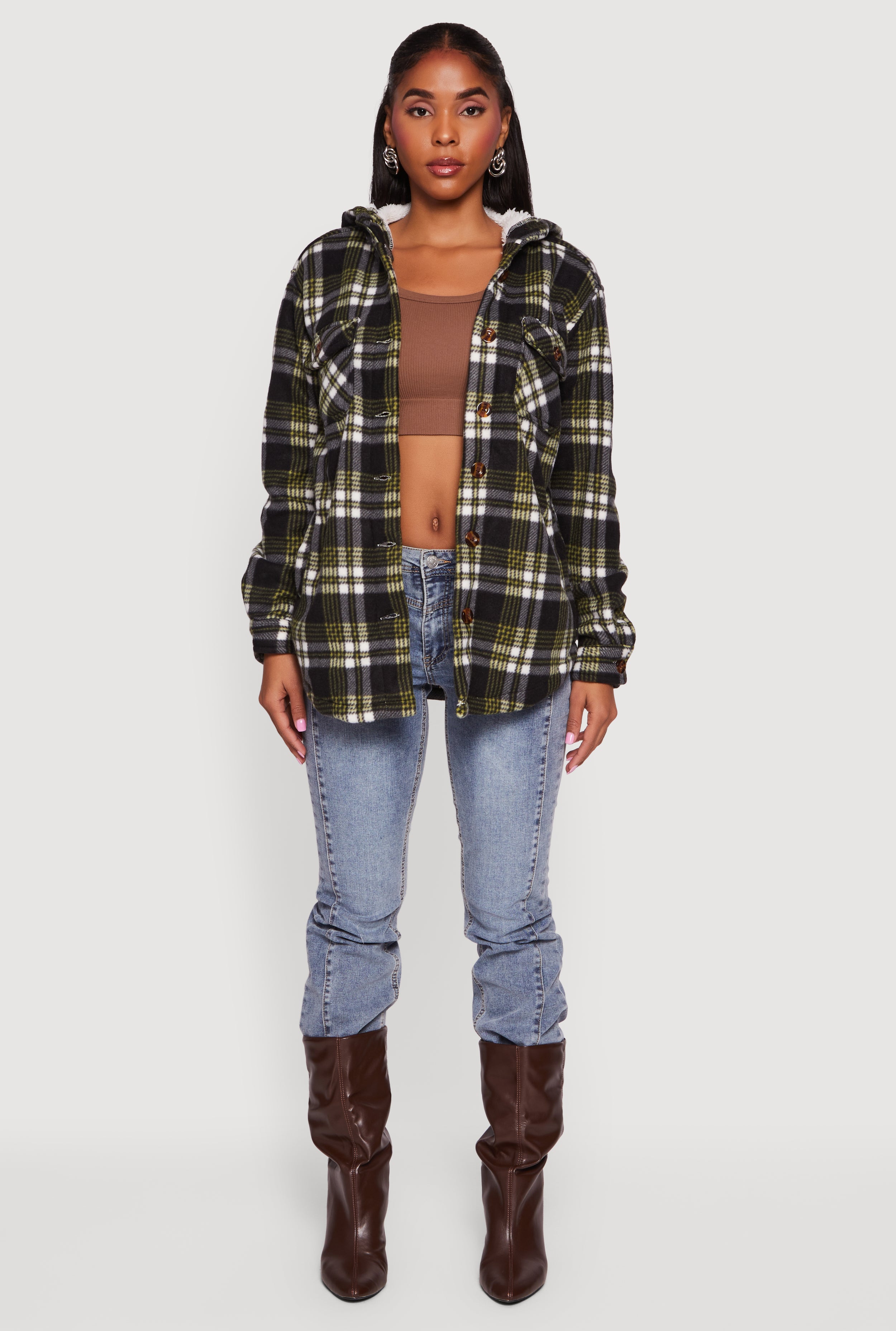 Plaid Sherpa Lined Hooded Button Front Shacket