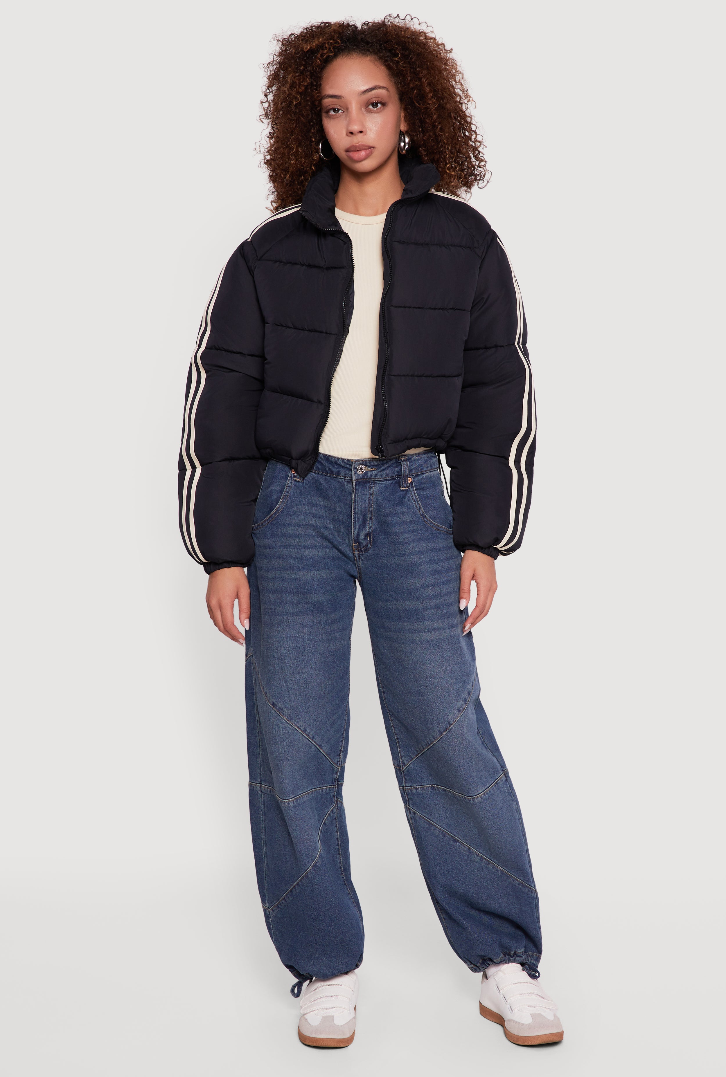 Color Block Lightweight Puffer Jacket with Thumb Holes
