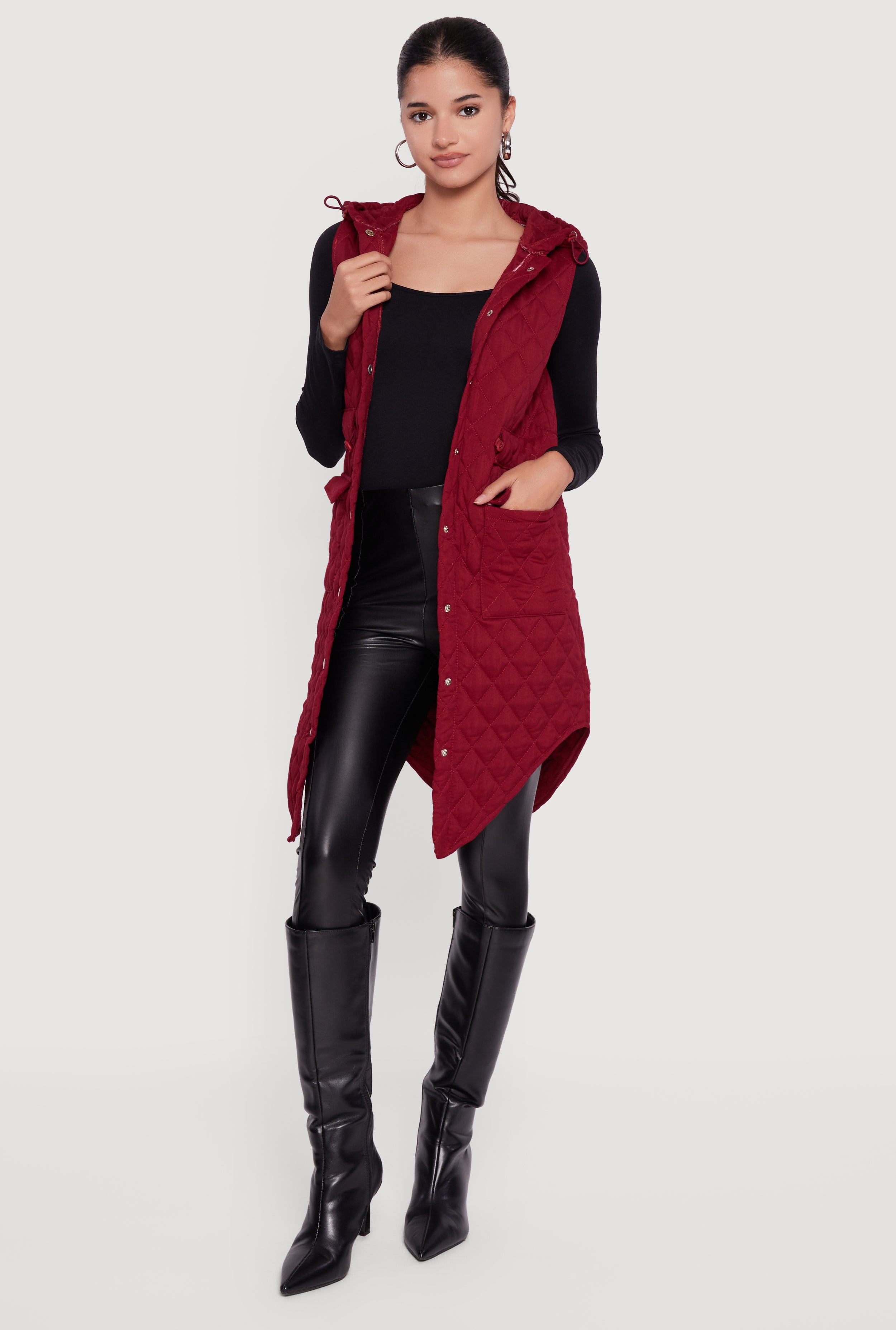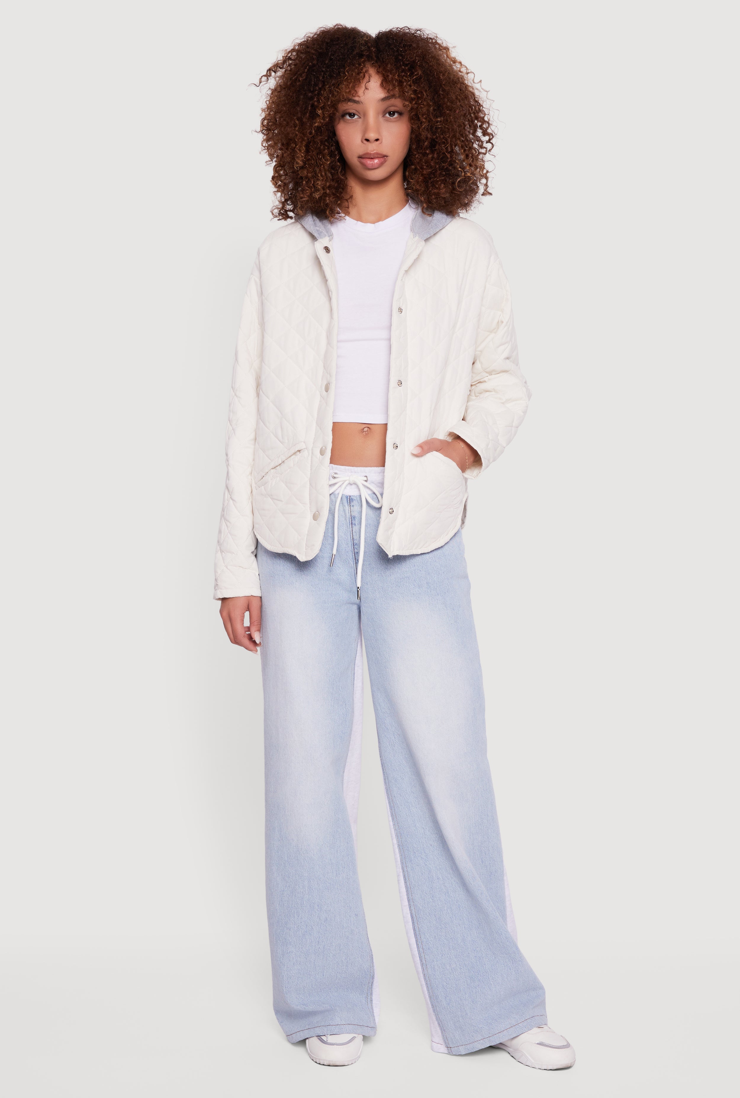 Hooded Long Sleeve Snap Button Quilted Jacket