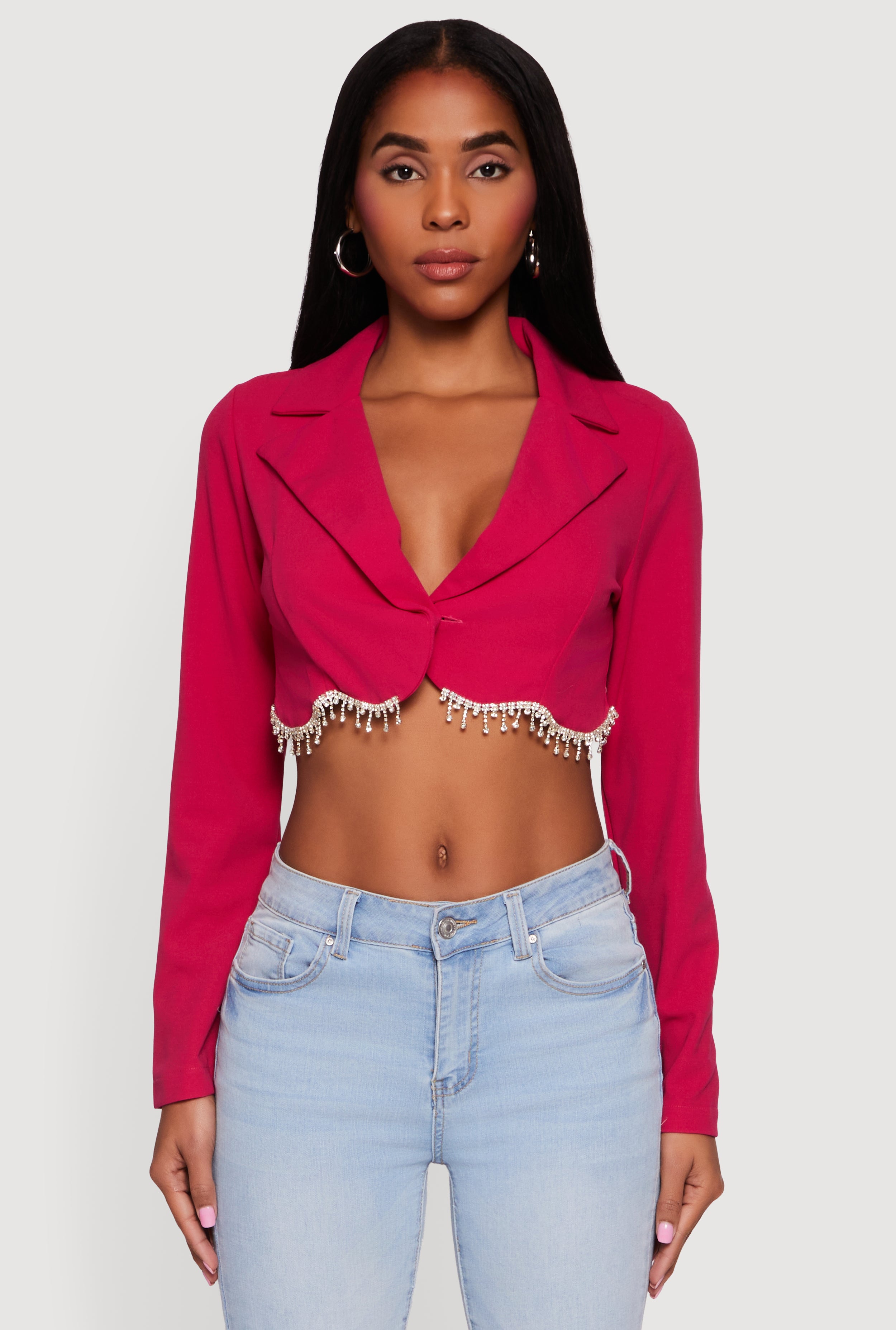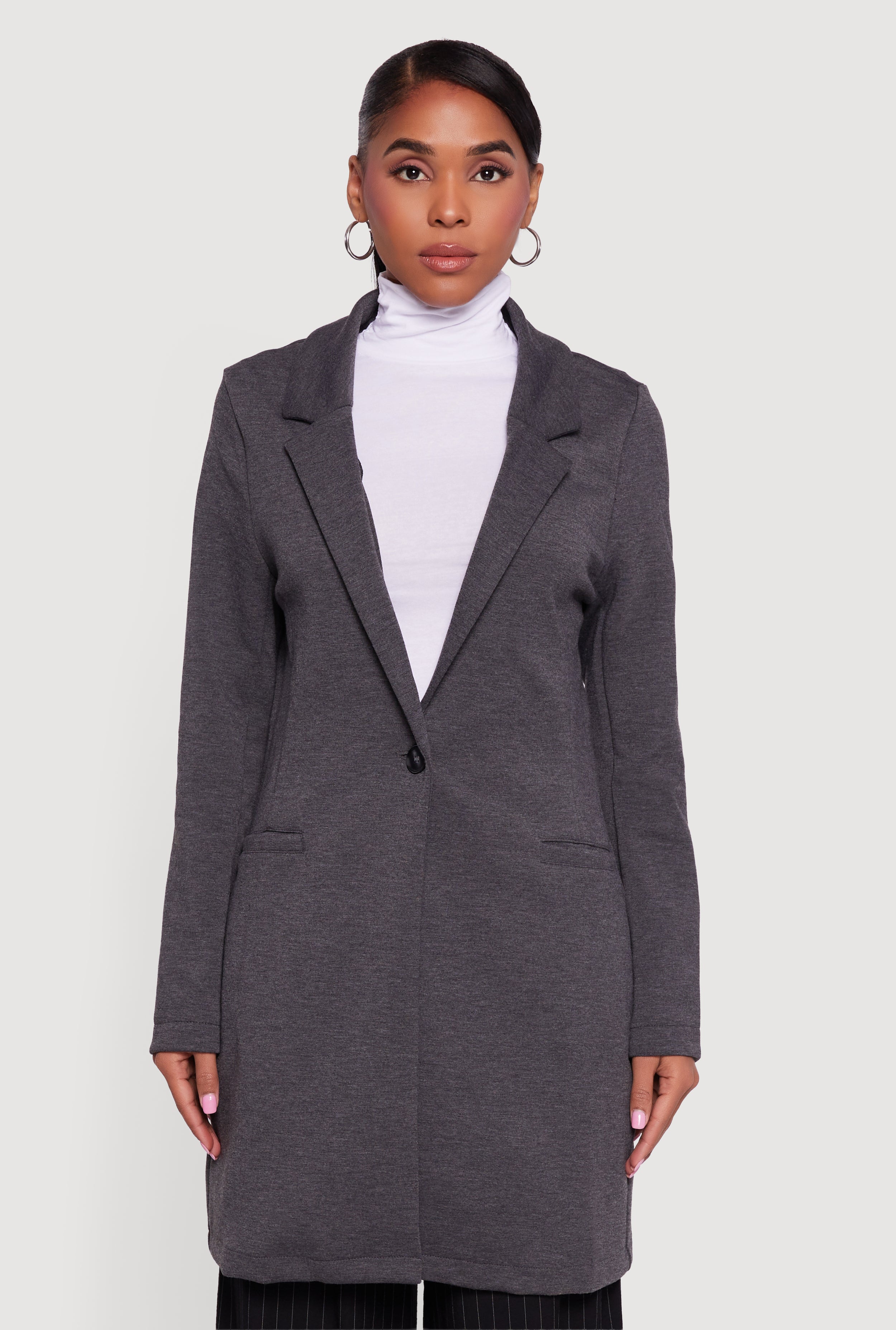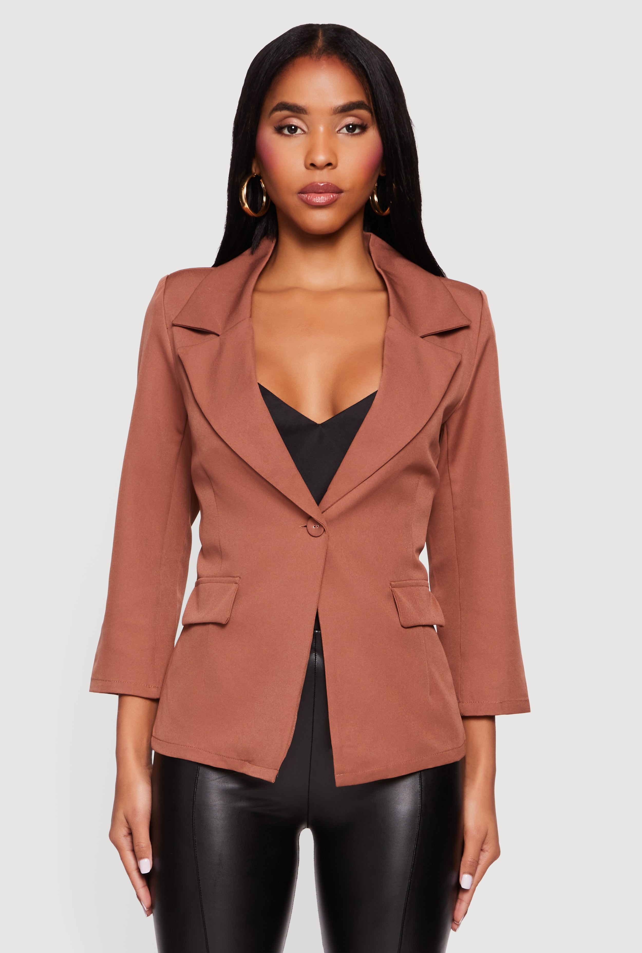 Tabbed Roll Cuff Sleeve Crepe Knit Blazer