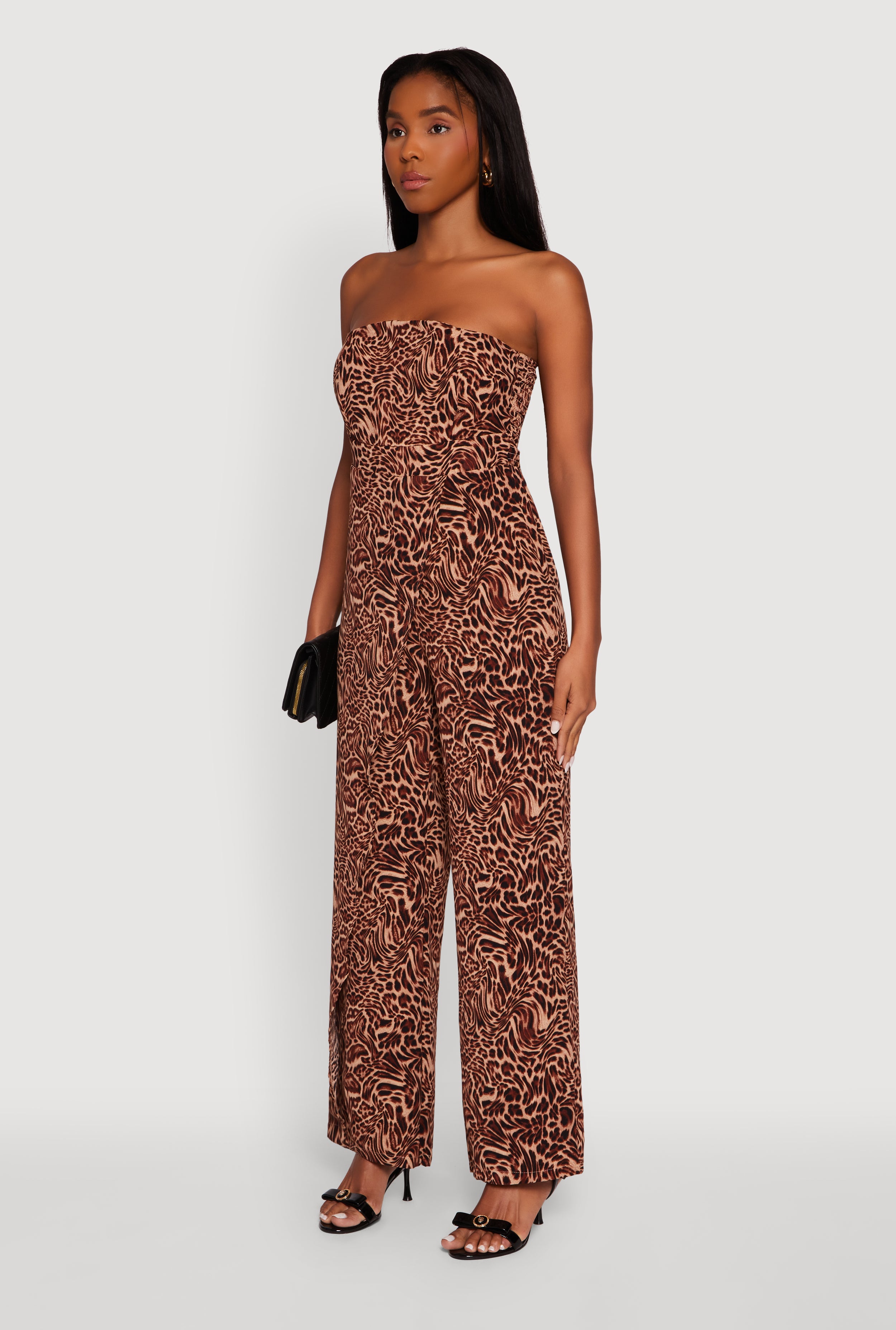 Step out in style with the Airy Crepe Knit Strapless Smocked Printed Jumpsuit, your new go-to for effortless cool. This jumpsuit combines a breezy crepe knit fabric with a flattering smocked back and strapless neckline, making it perfect for those warm nights out or a chic vacation look. The wide-leg pants flow beautifully, giving you that relaxed yet put-together vibe that’s totally on trend. Plus, with built-in padding, you get comfort and confidence all in one.