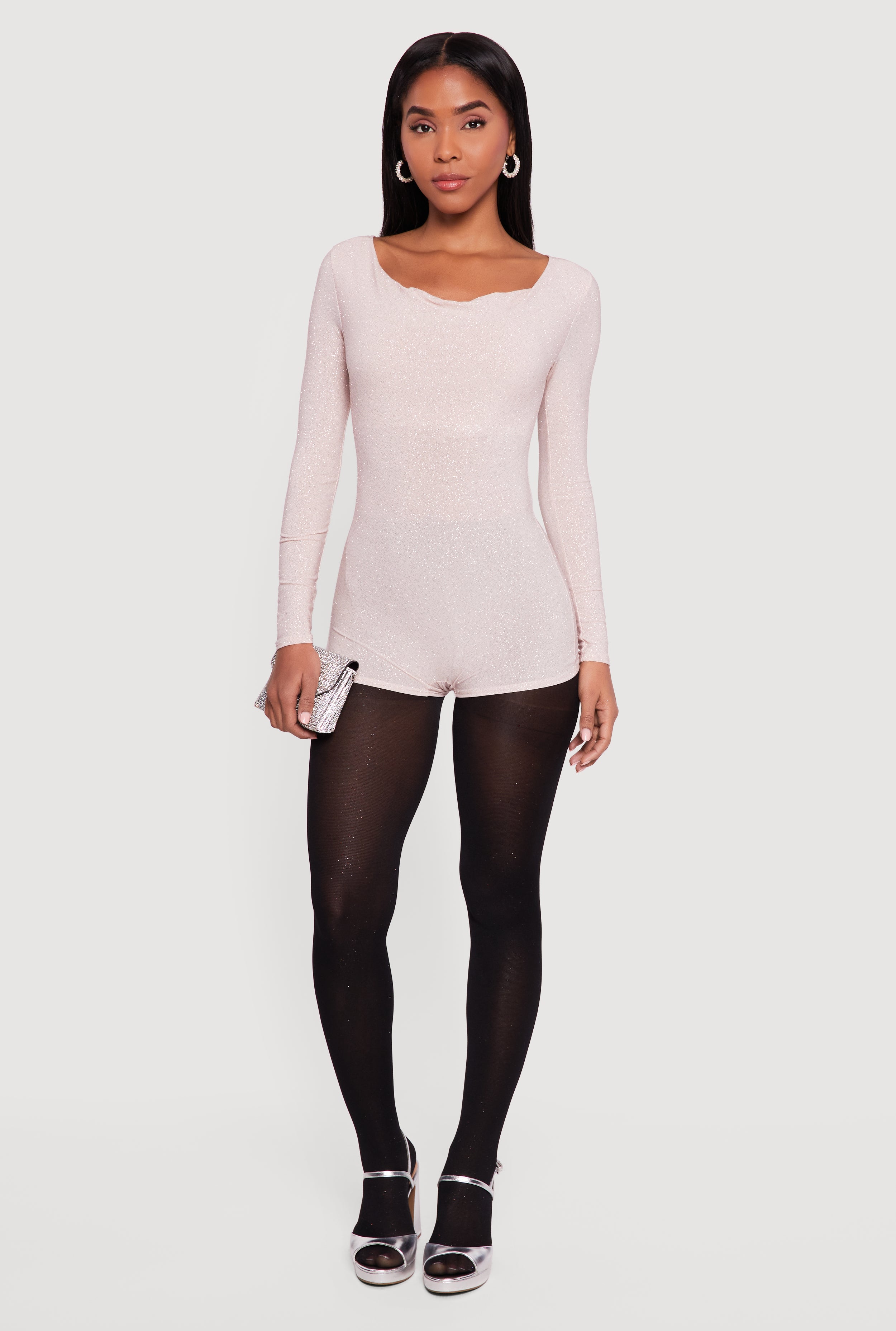 Glittery Long Sleeve Cowl Neck Romper