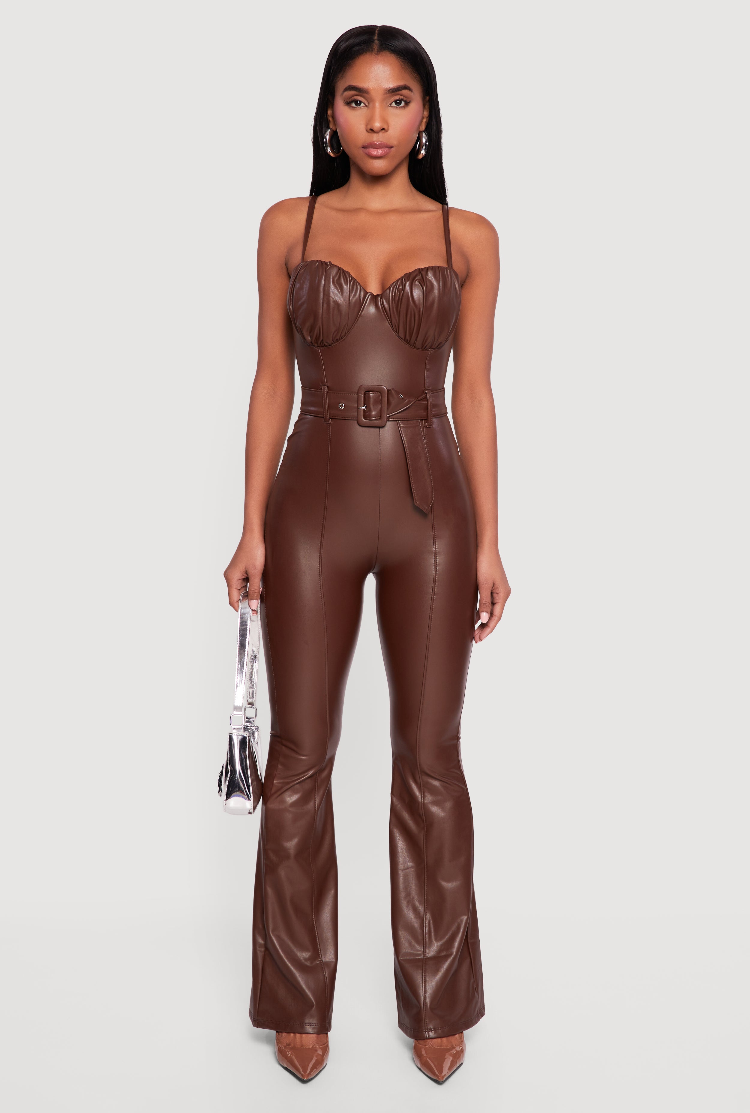 Faux Leather Belted Bustier Jumpsuit