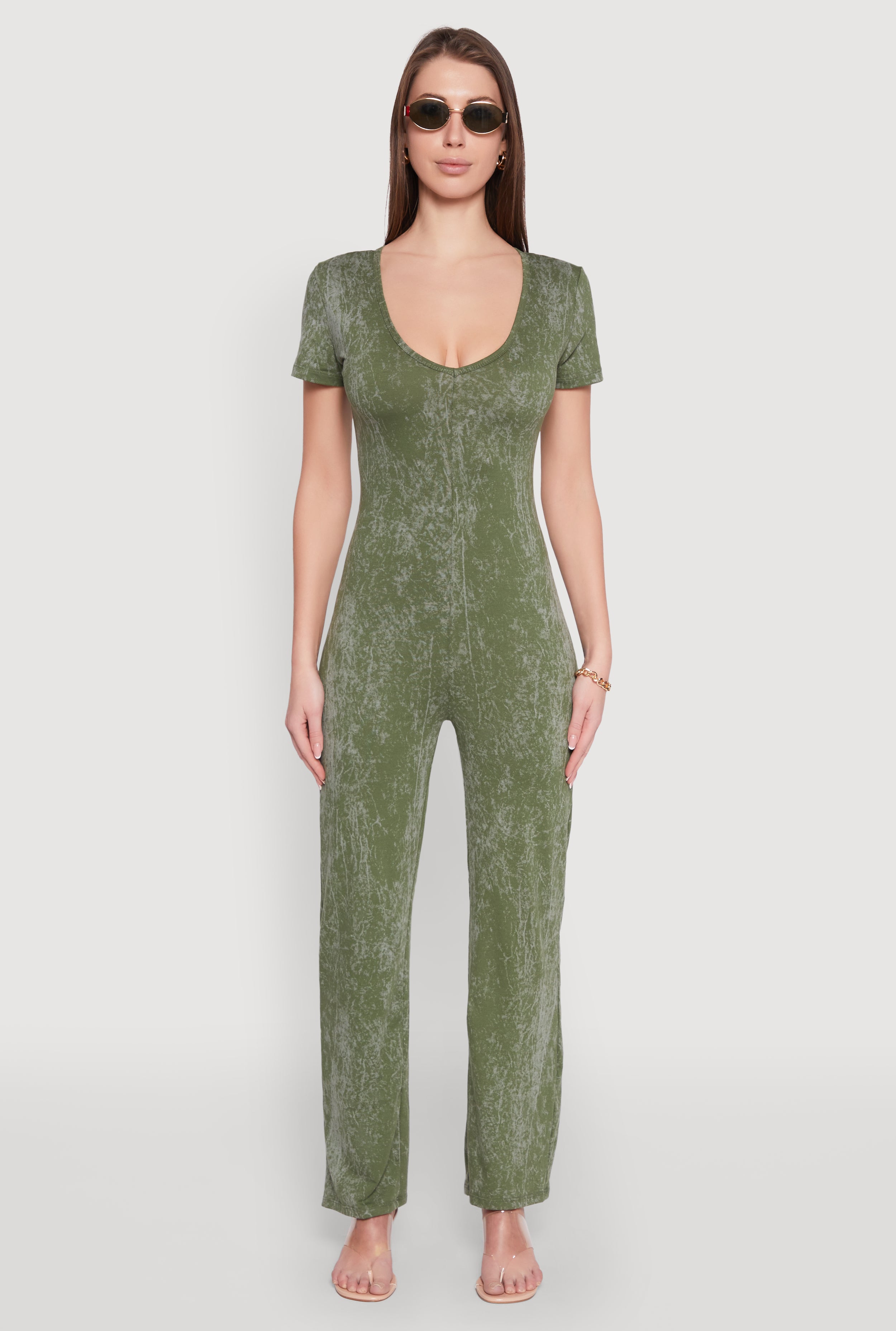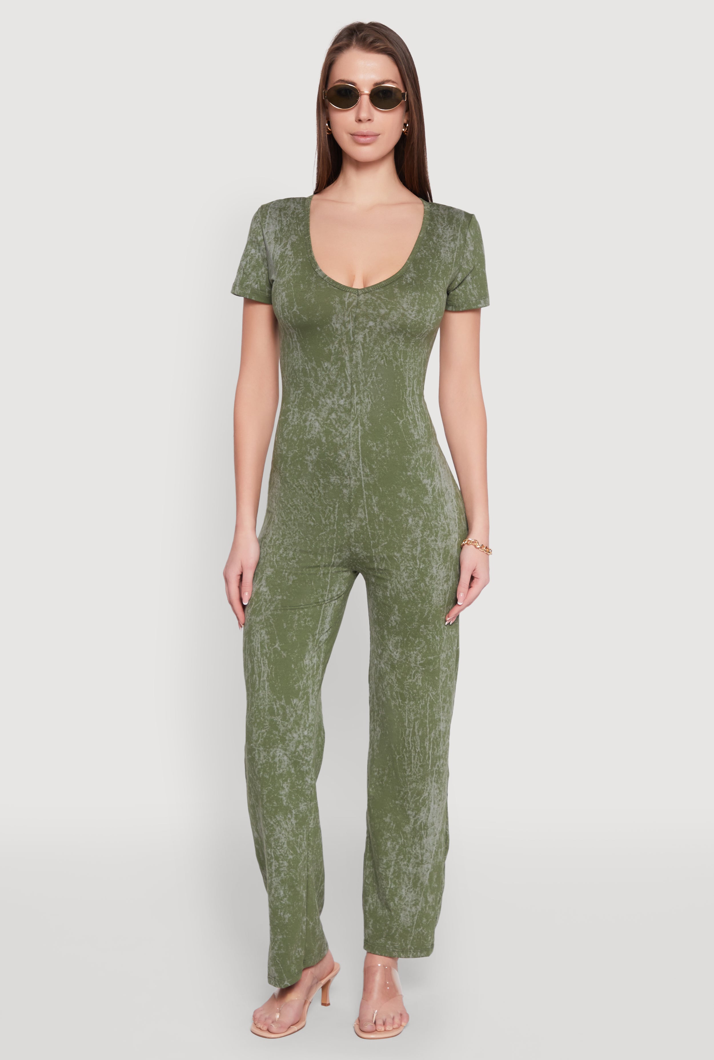 Mineral Wash Short Sleeve Jumpsuit