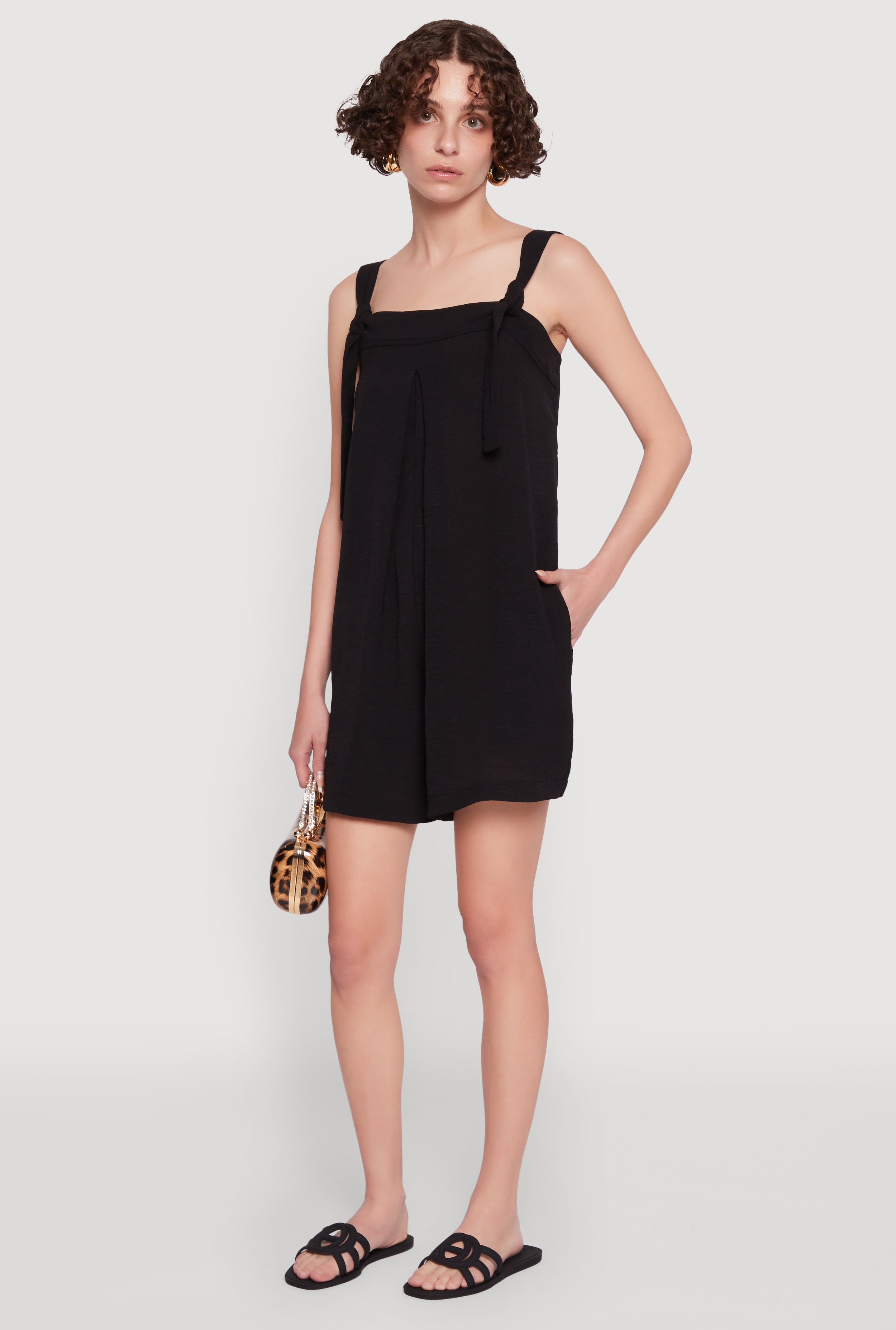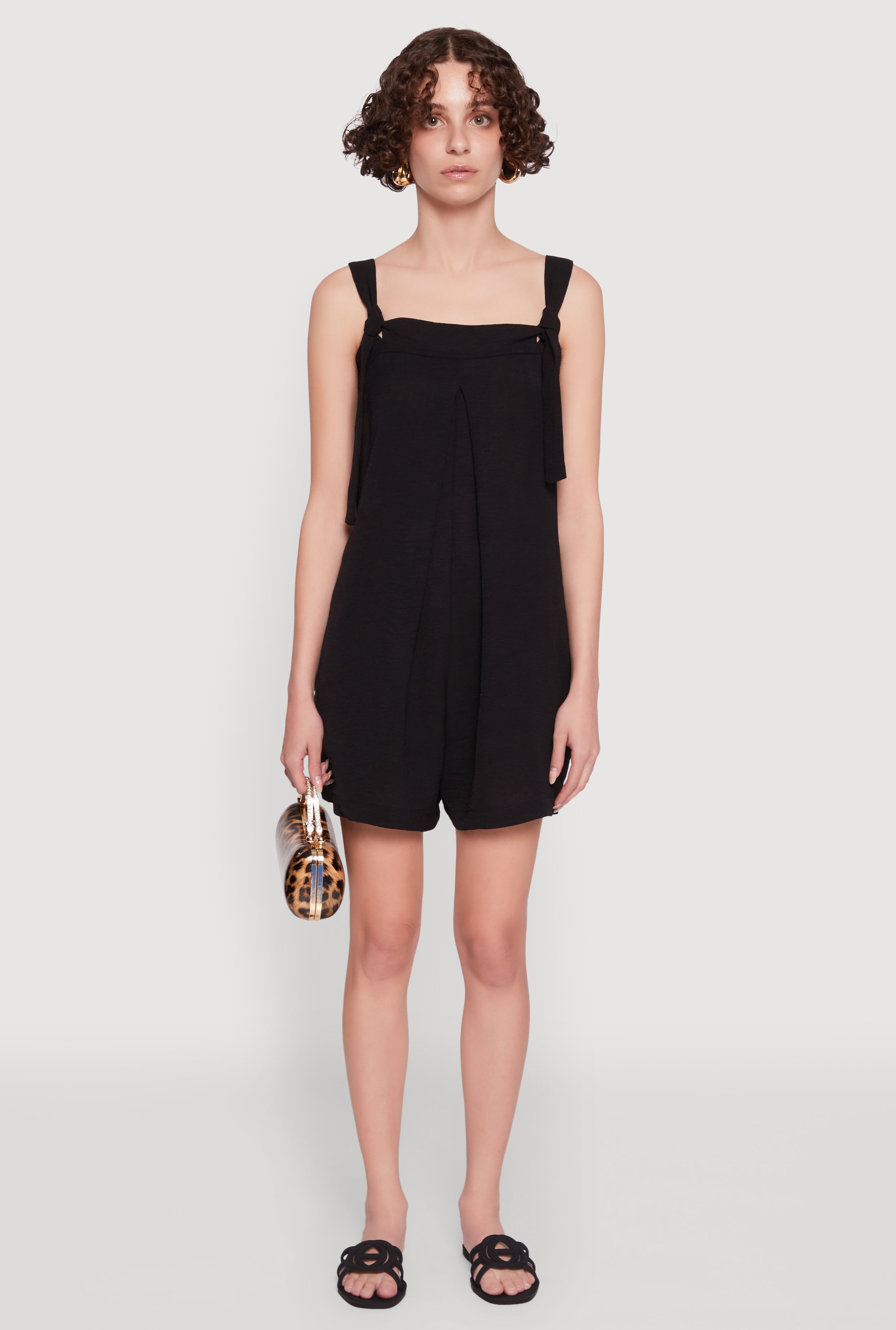 Chic Tie Sleeves Pleated Crepe Knit Romper
