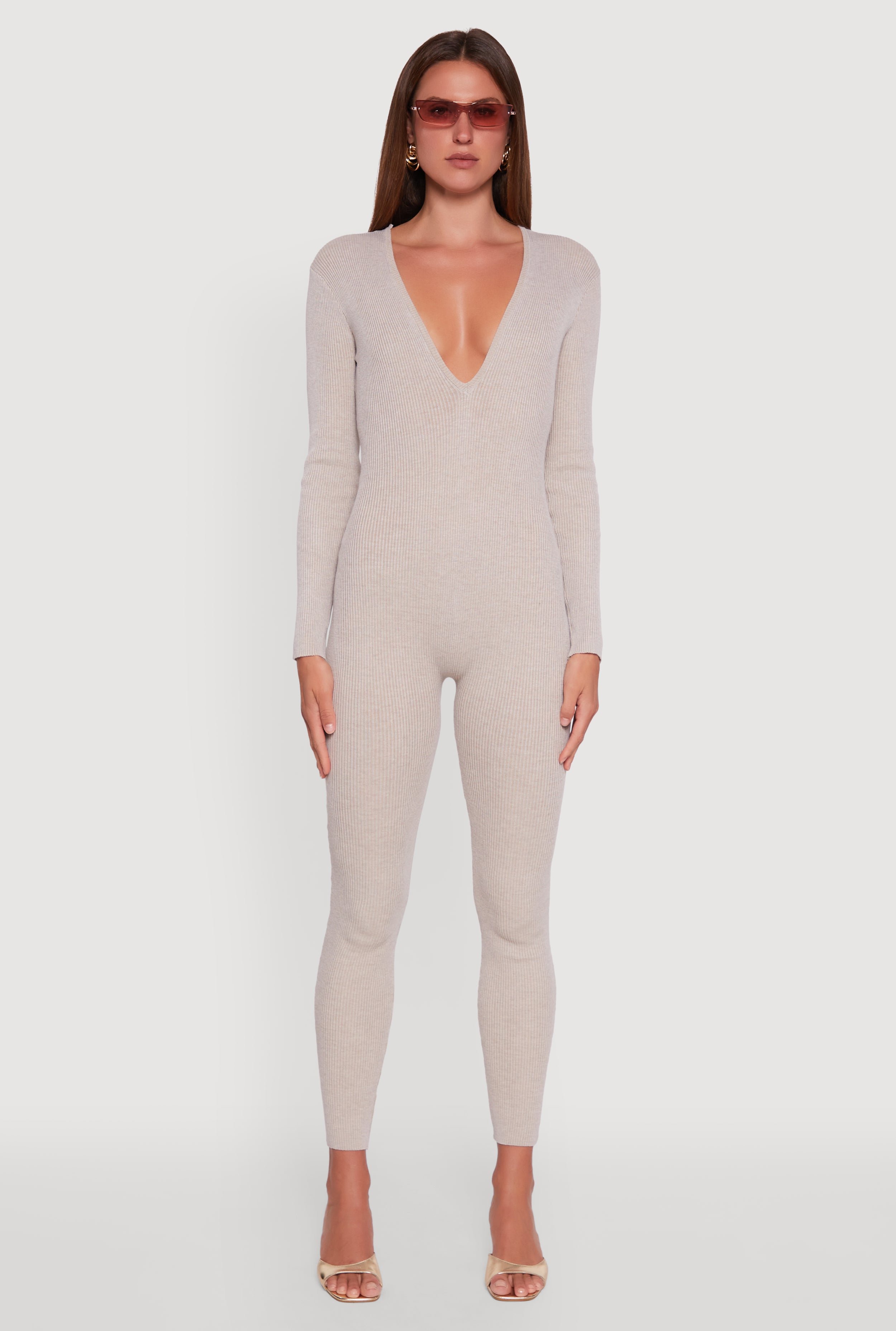 Brushed Rib Knit Long Sleeve Square Neck Romper