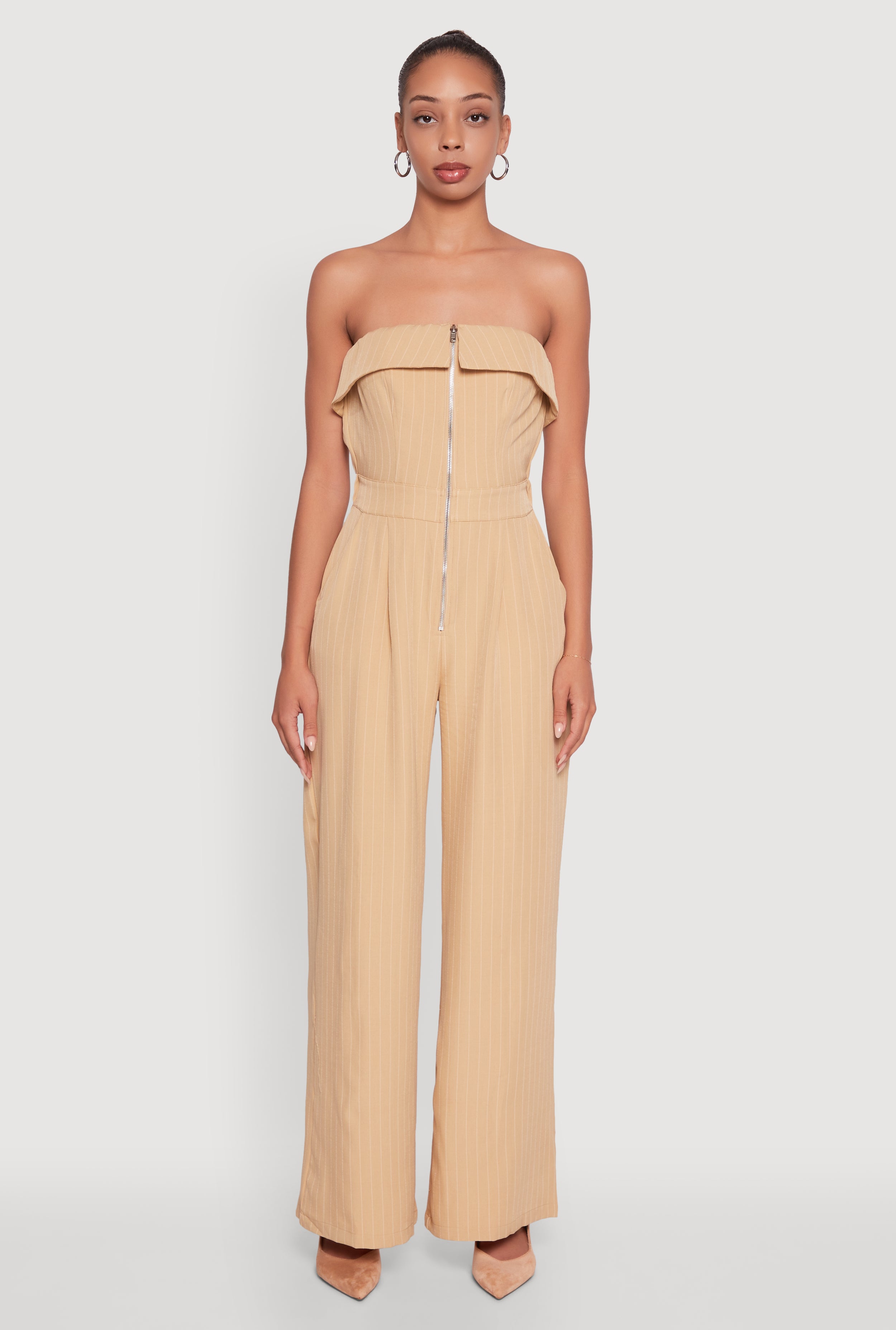 Pinstripe Fold Over Strapless Jumpsuit