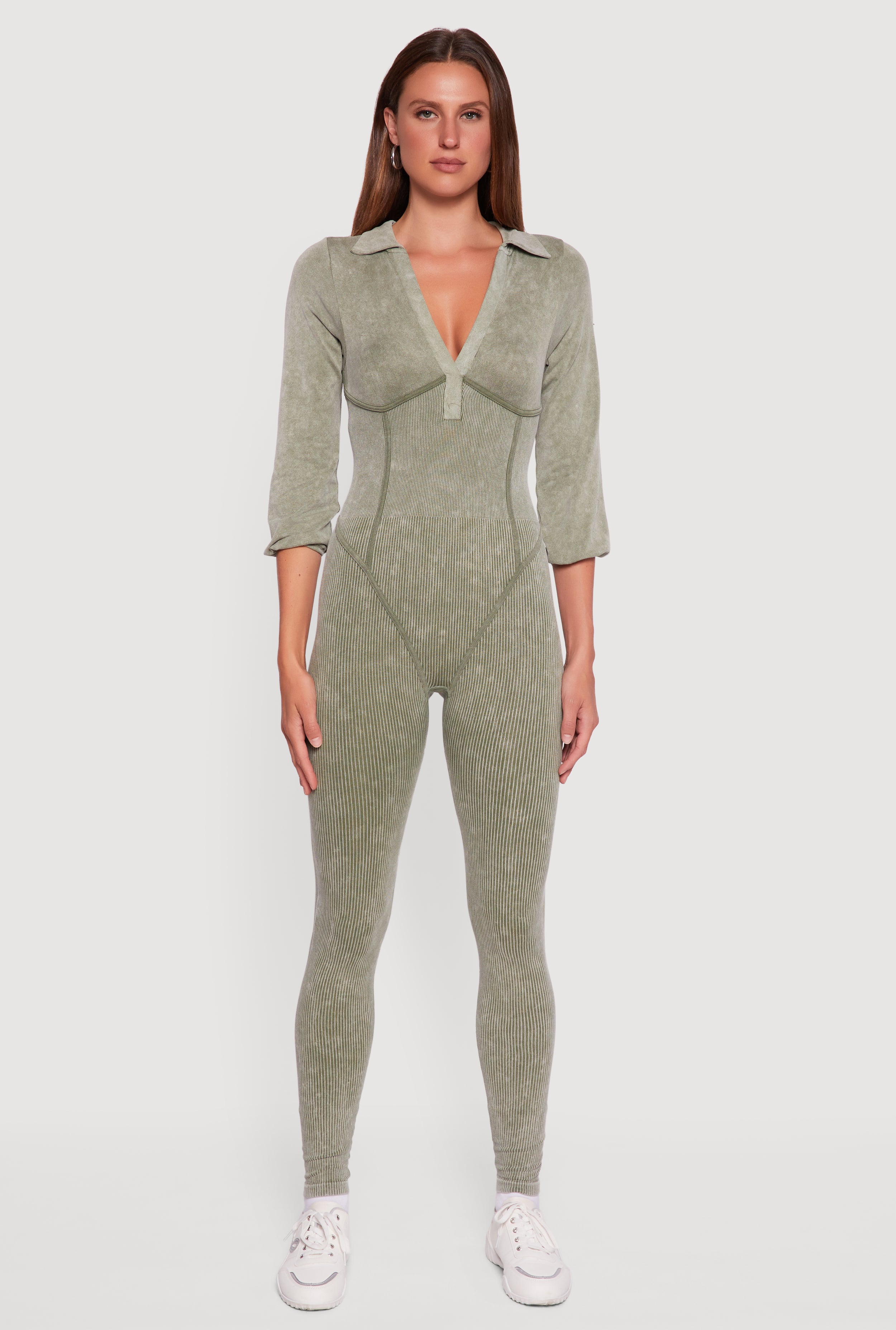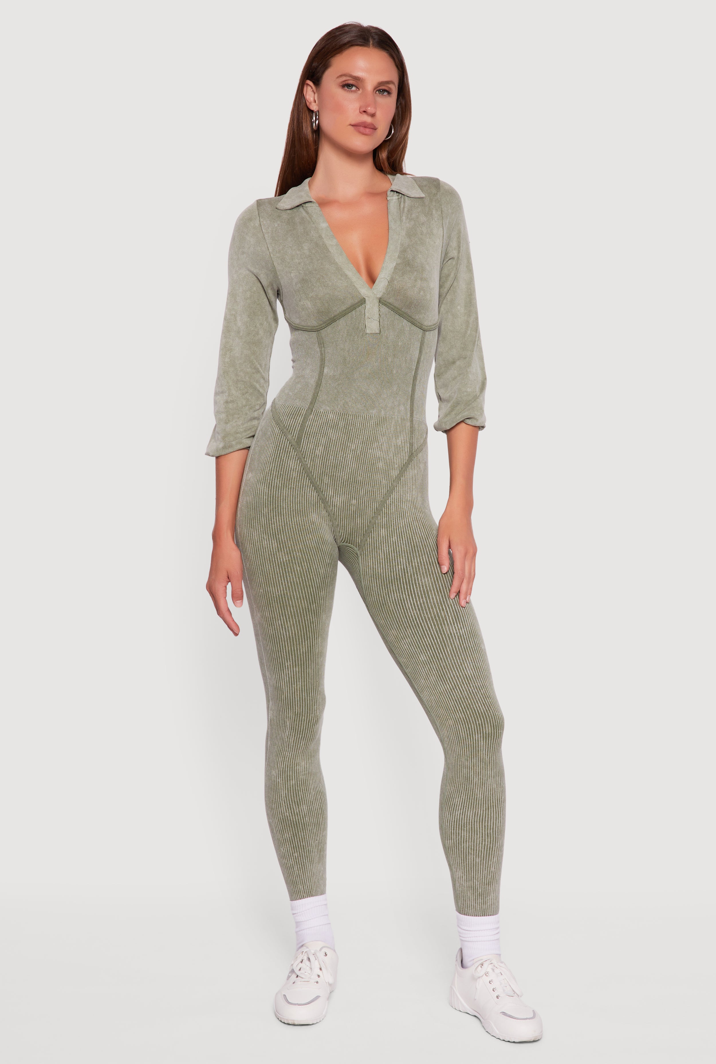 Acid Wash Ribbed Knit Jumpsuit
