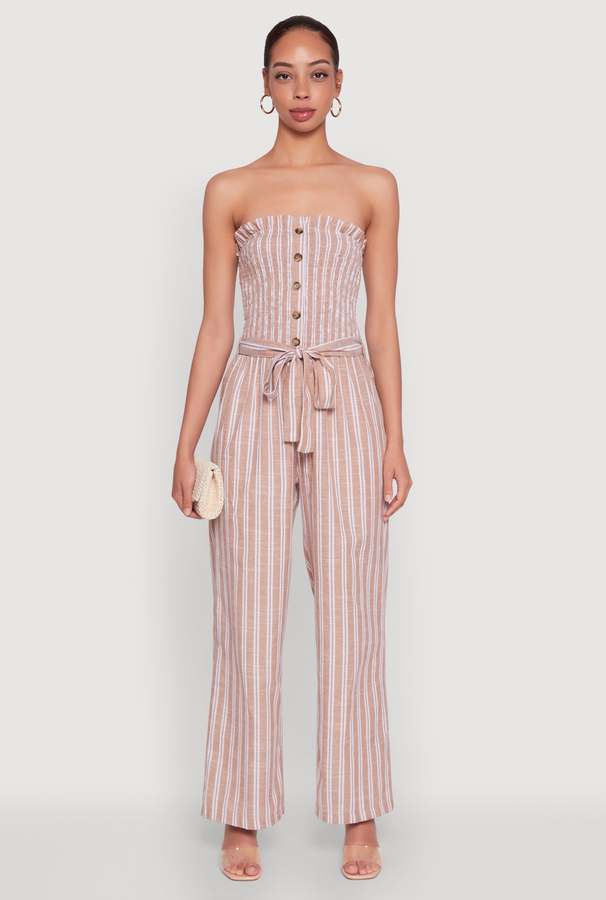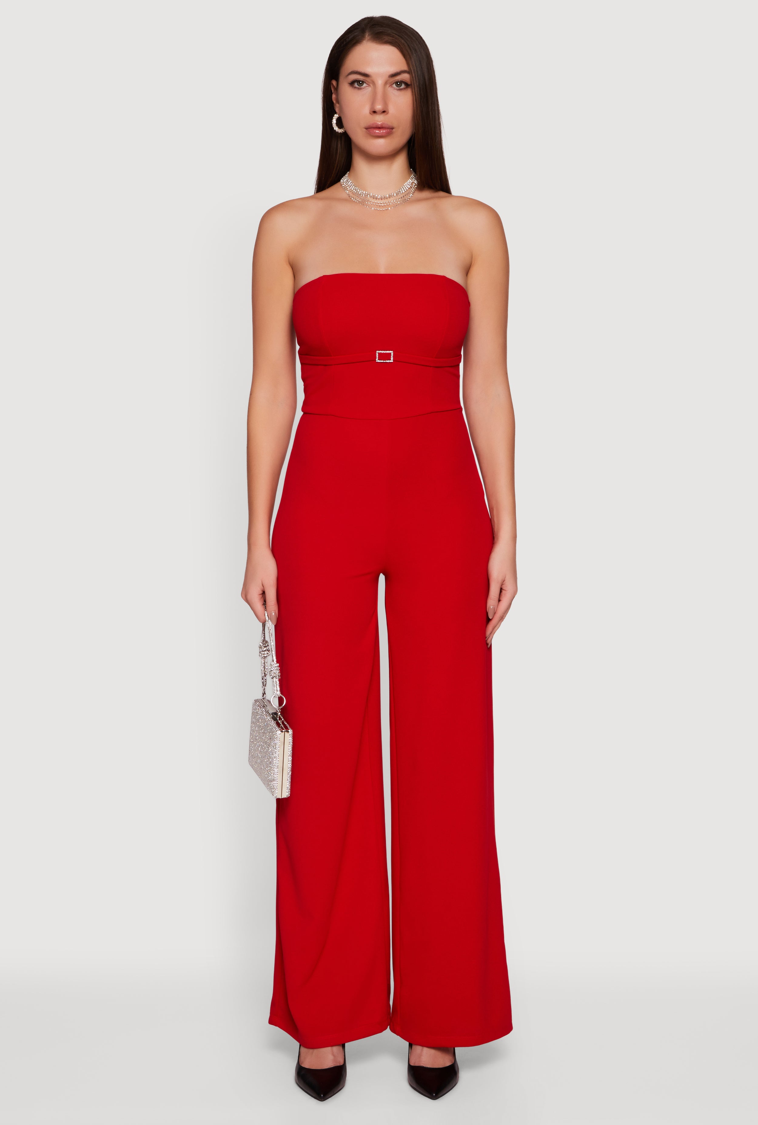 Rhinestone Buckle Detail Tube Jumpsuit