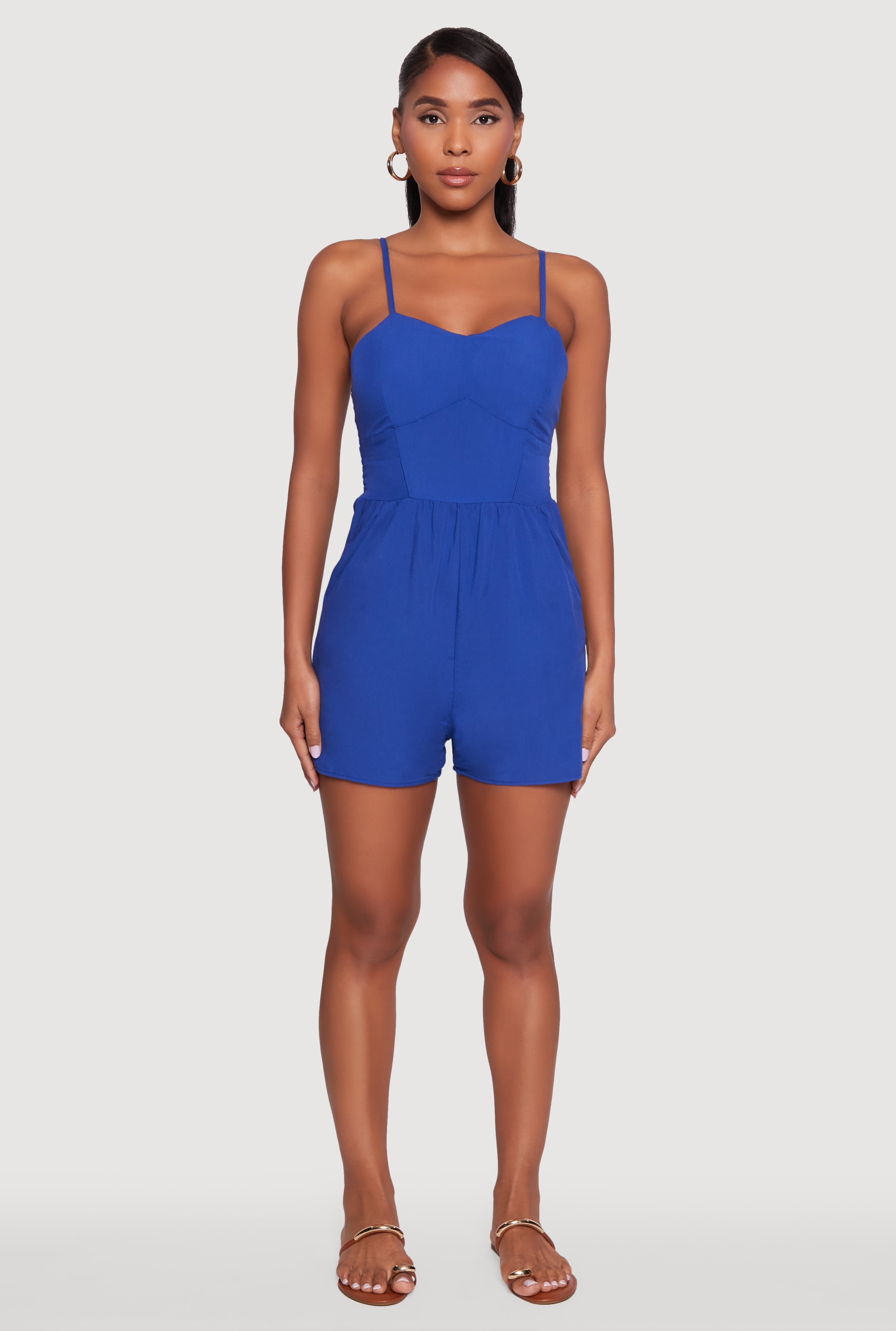 Chic Sleeveless Padded Cup Romper with Pockets and Smocked Details