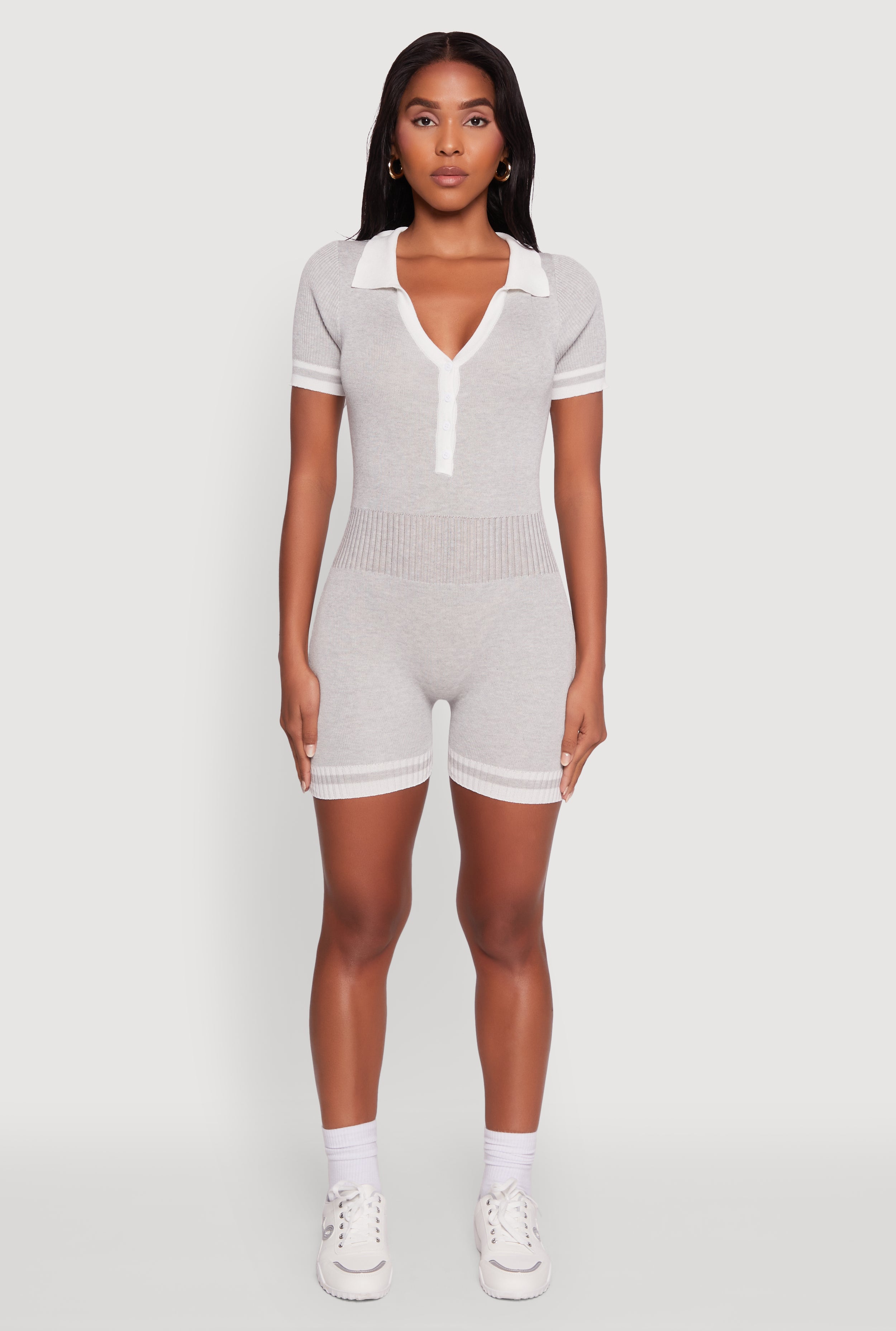 Daisy Ribbed Knit Varsity Stripe Button Front Romper