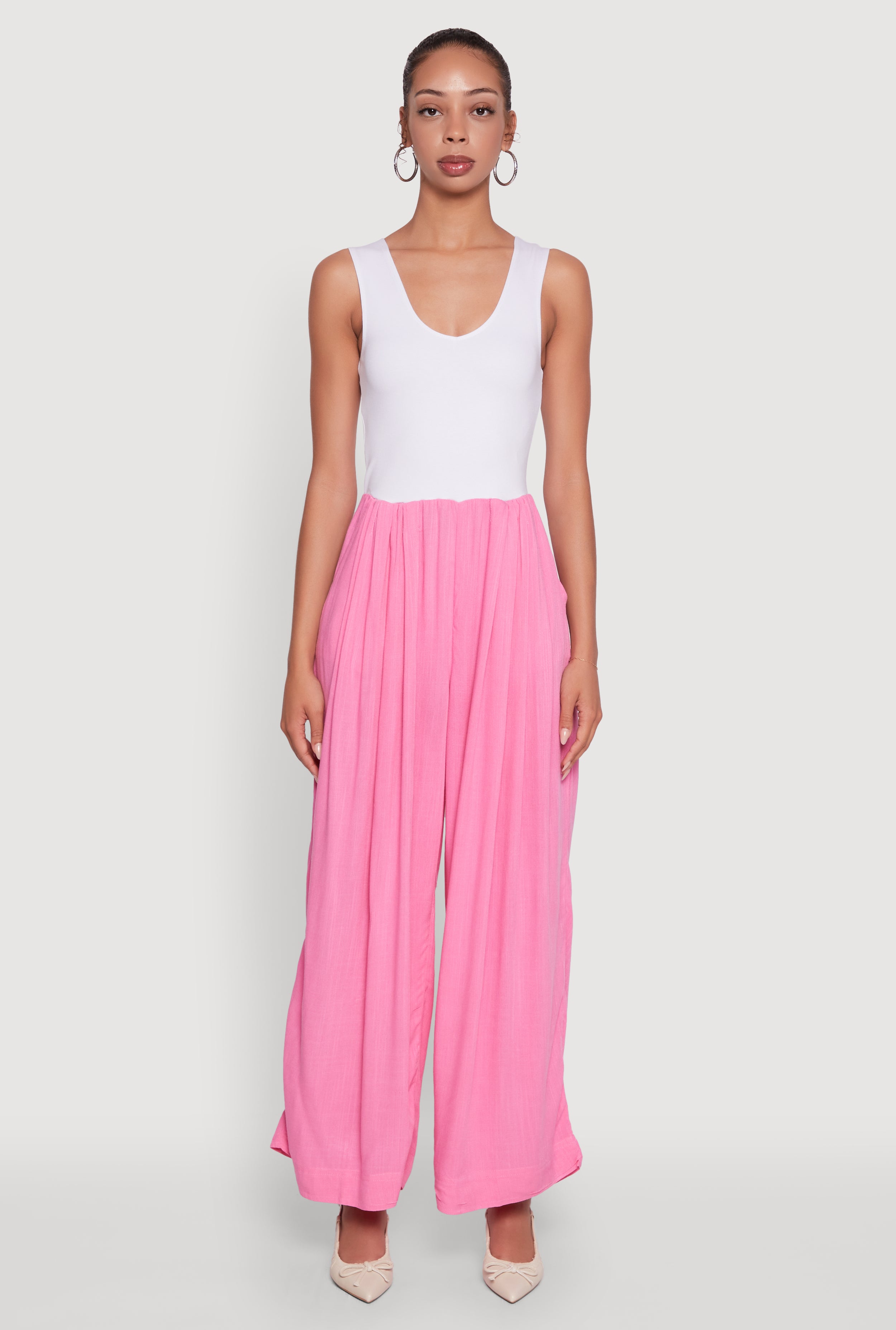 Ponte Wide Leg Pleated Jumpsuit