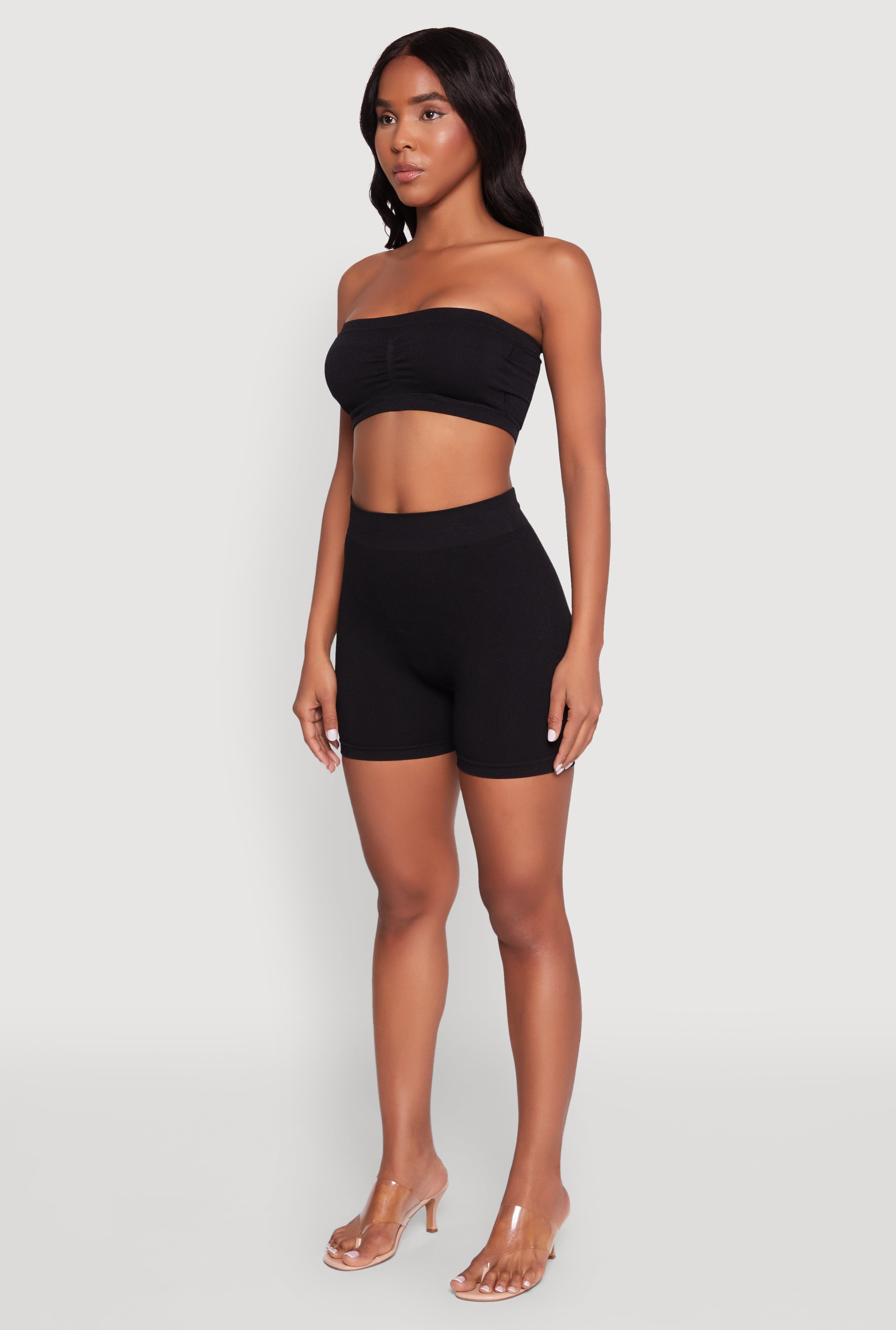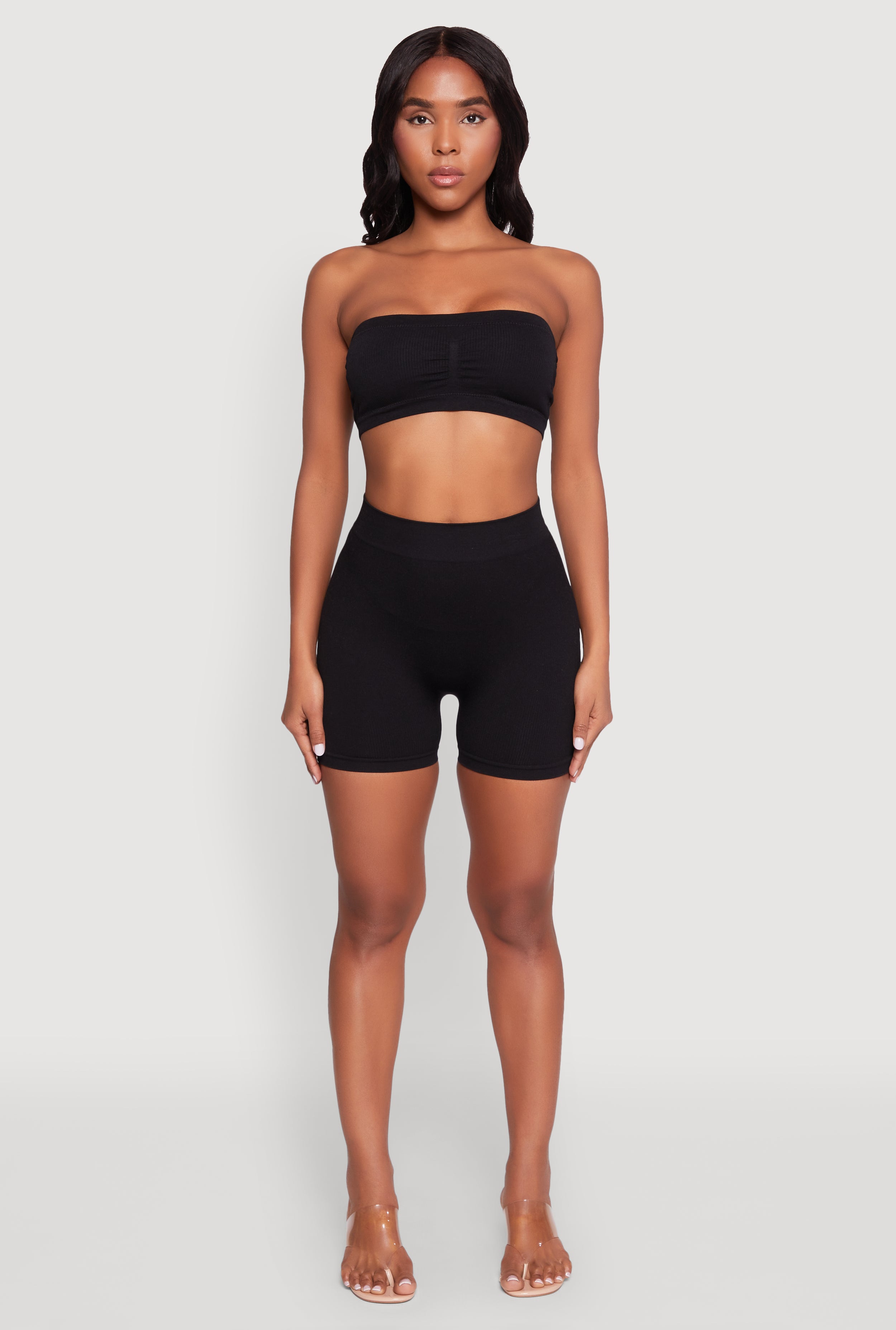 - Seamless ribbed knit fabric for a smooth, no-show look