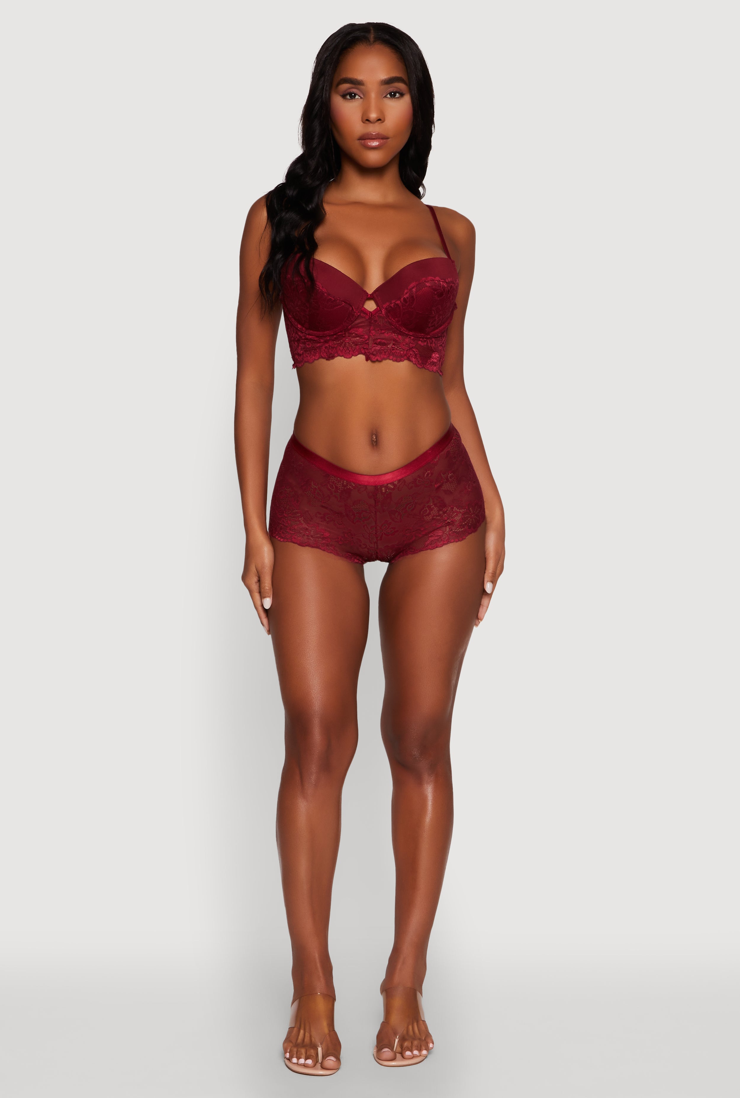 - Soft lace fabric for a feminine, breathable feel