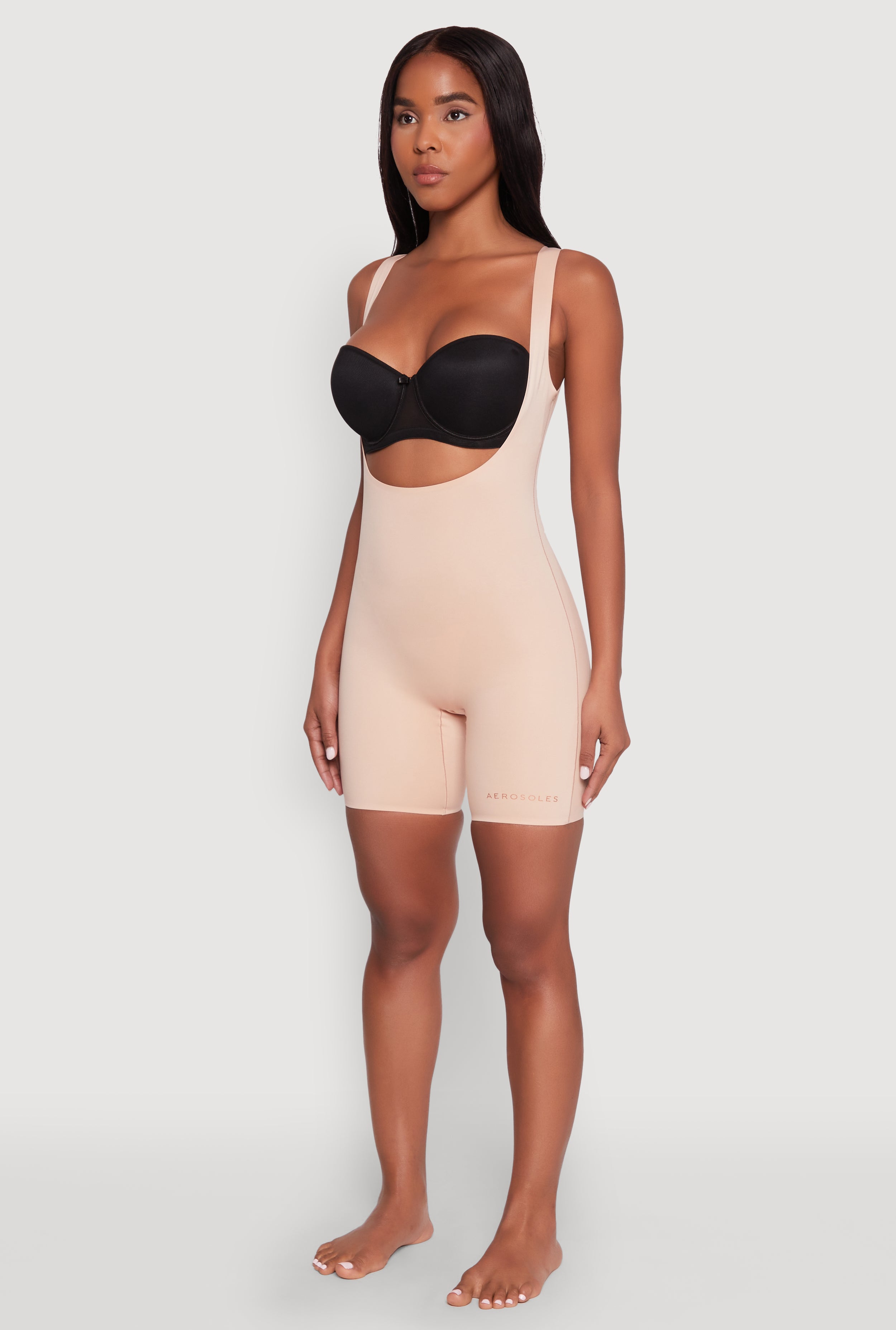 - Open bust style allows for your favorite bras to be worn