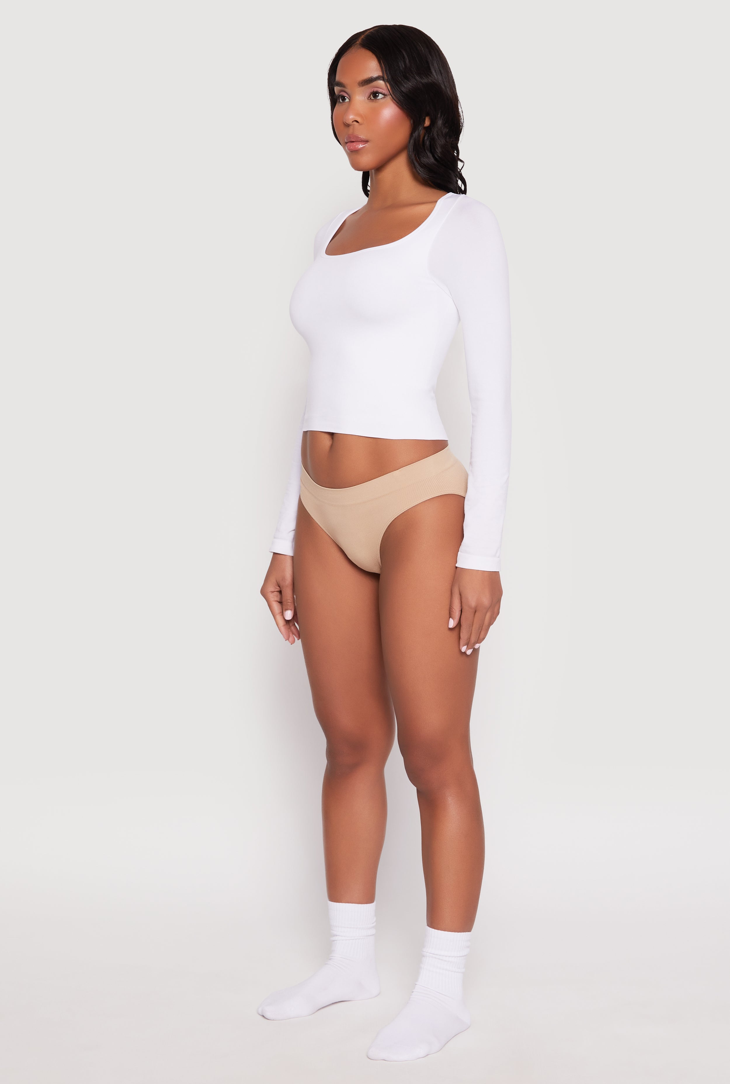 • Seamless design eliminates lines for a smooth, sleek silhouette