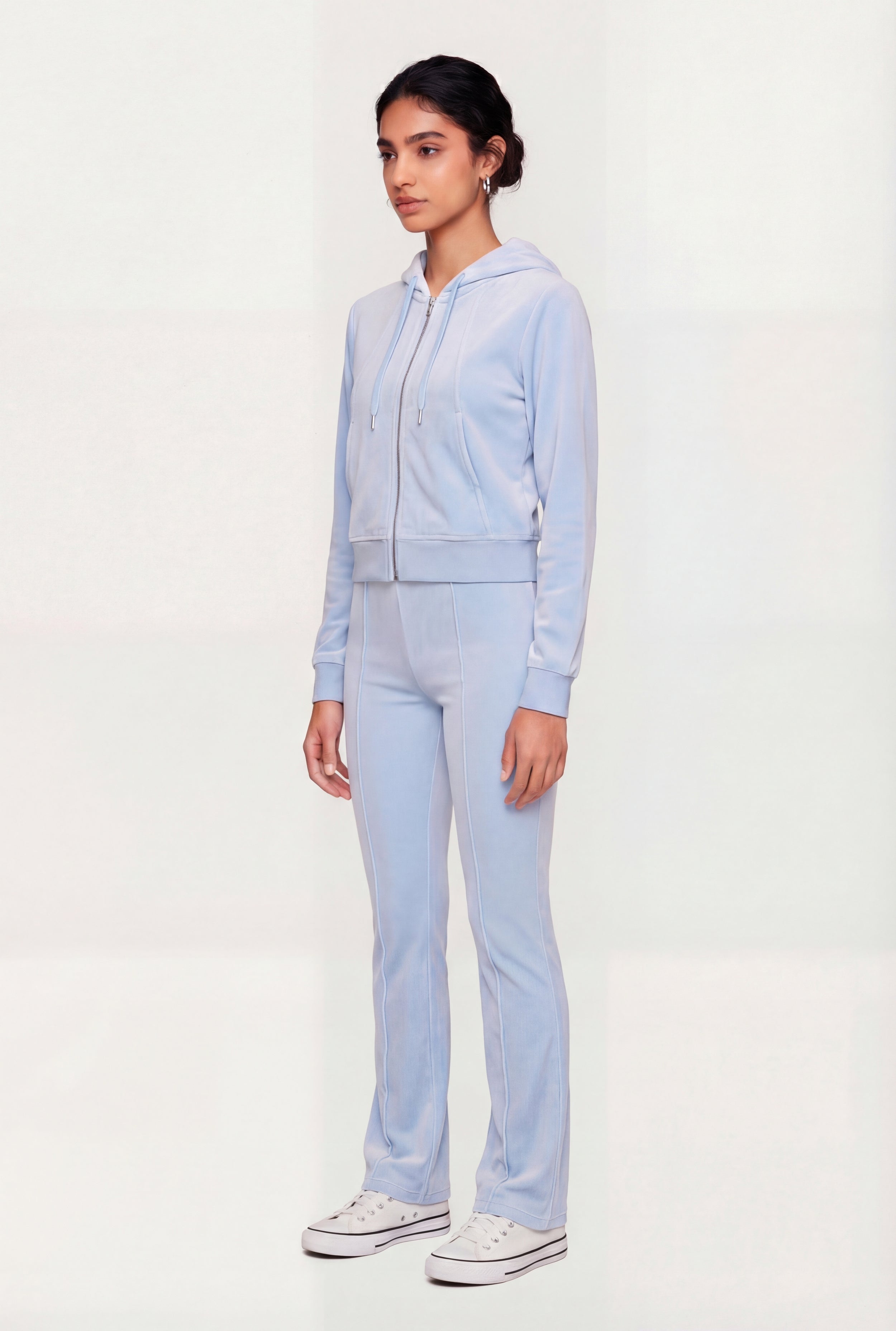 Solid Velour Zip Front Hoodie