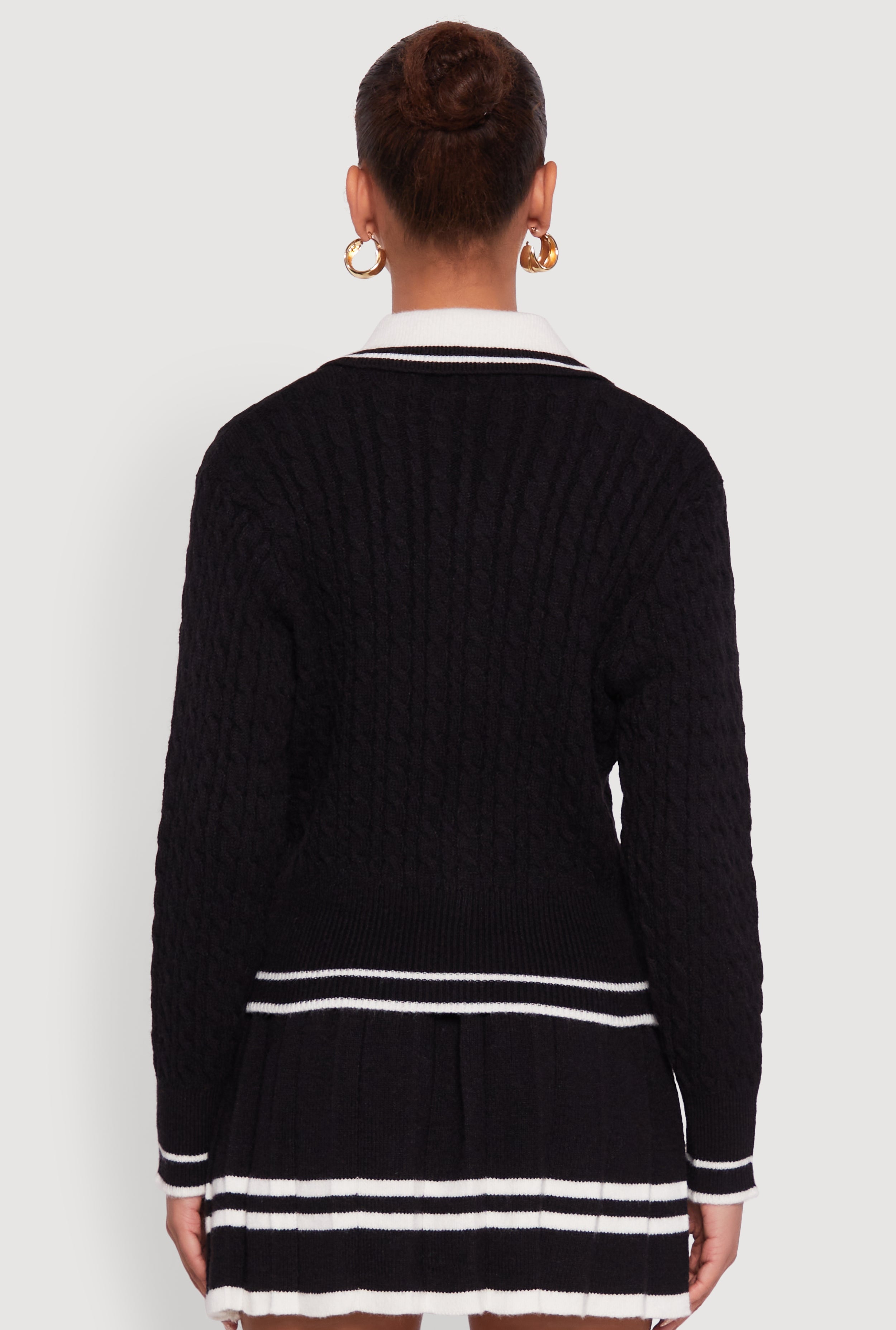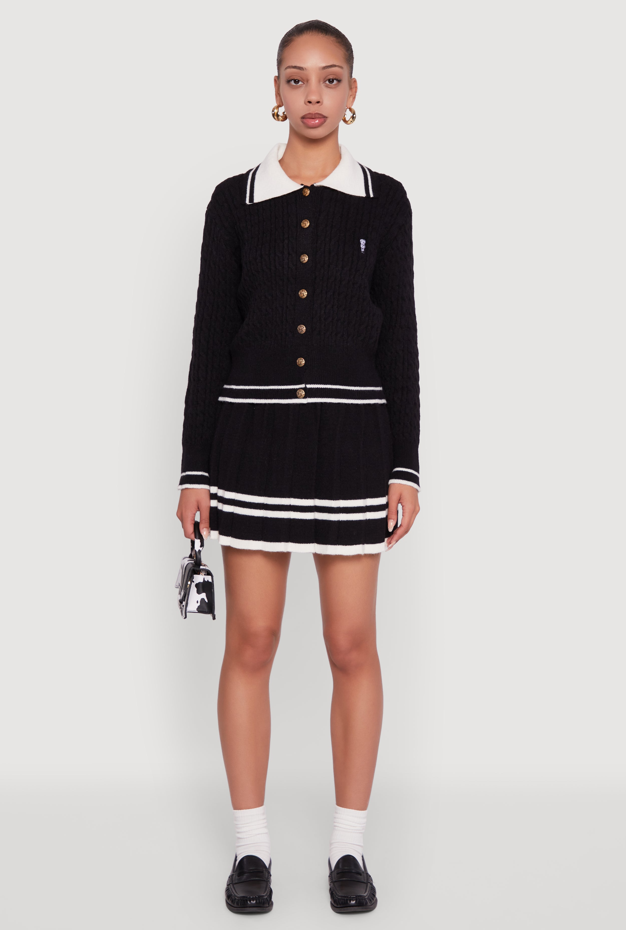 Step up your casual game with this Bear Patch Graphic Varsity Stripe Cardigan. Featuring a classic fit and cozy cable knit, it’s the perfect layering piece for those chill back-to-school days. The button front and collared neckline add a polished touch, while the varsity stripes and playful bear patch bring all the cool-girl vibes. Whether you’re pairing it with jeans or your favorite skirt, this cardigan is a must-have for effortless style that feels as good as it looks.