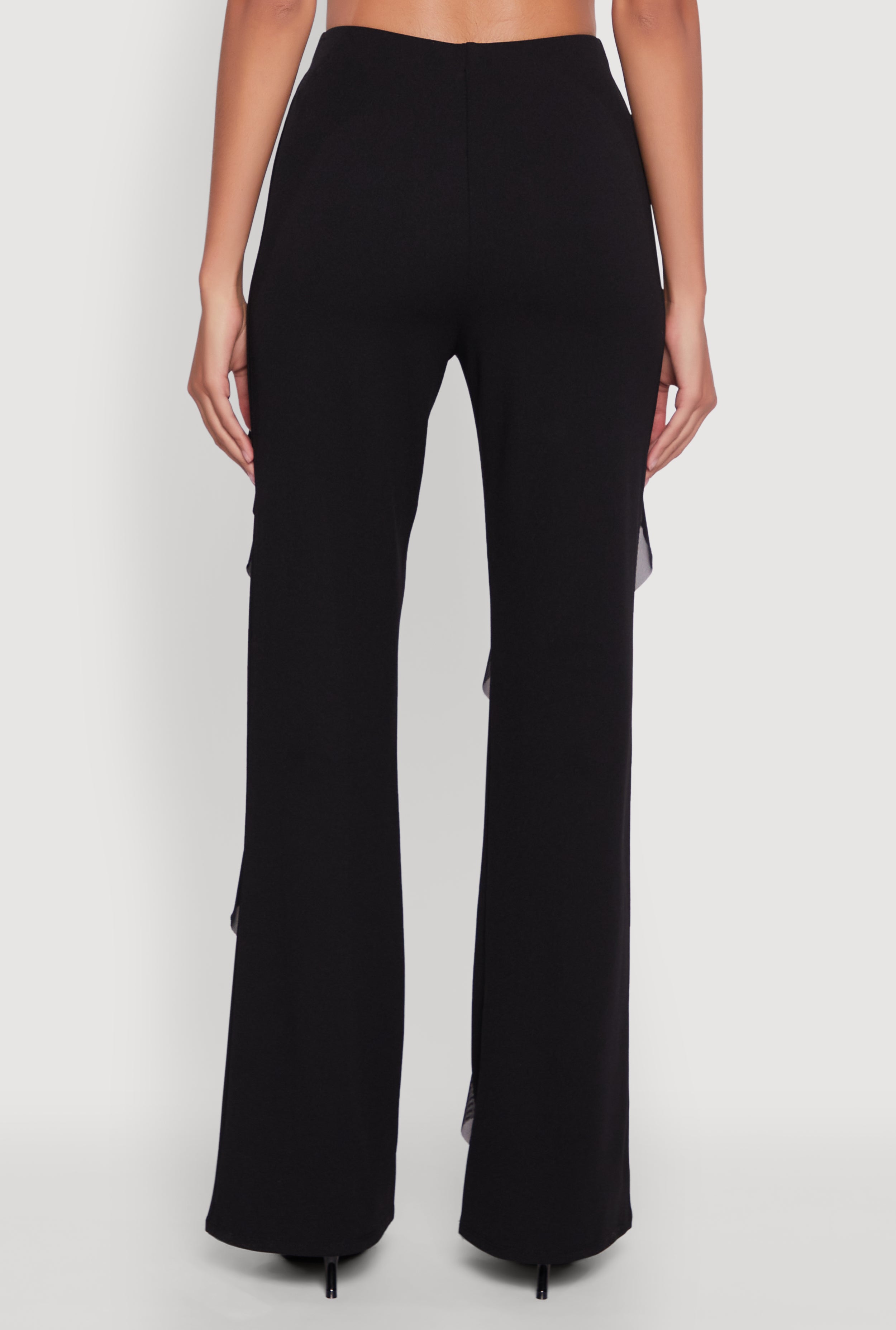 Step up your style game with these Ruffle Trim High Waisted Flared Leg Pants. Designed to hug your waist and flow effortlessly at the legs, they bring a playful twist to your everyday look. Whether you're heading out for a casual hangout, a night out, or a party, these pants have got your back with comfort and flair. The subtle ruffle trim adds just the right amount of fun without overdoing it, making them perfect for those who love a little extra personality in their outfit.