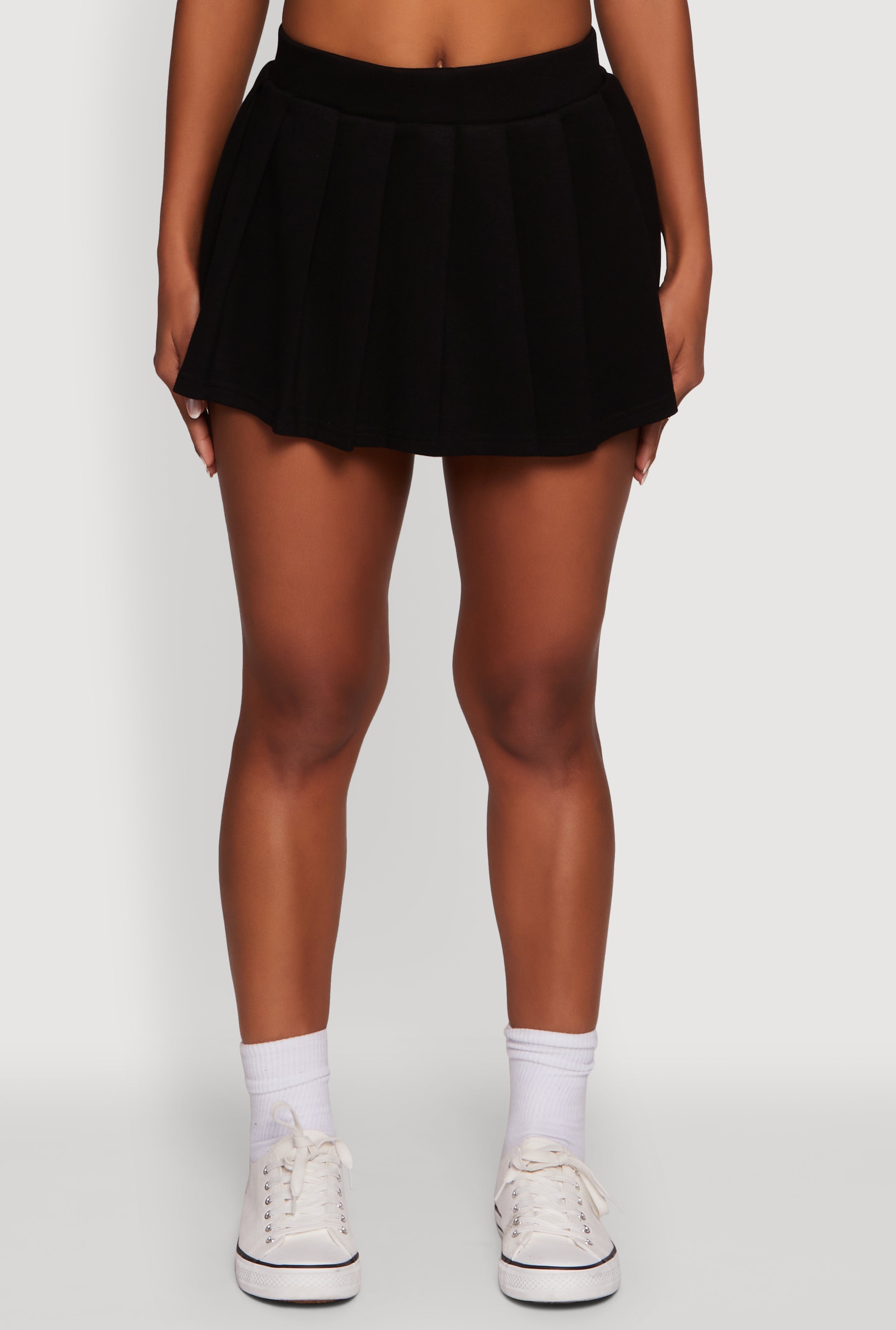 Step up your casual game with the Trendy Soft Knit Solid Pleated Skort. Designed for those who love the perfect mix of sporty and stylish, this mini skort features a flattering mid rise and soft knit fabric that feels like a dream. Whether you're out with friends or just chilling, its pleated design adds a fun twist to your everyday look. Stay comfy and cute all day long with this must-have athleisure piece.