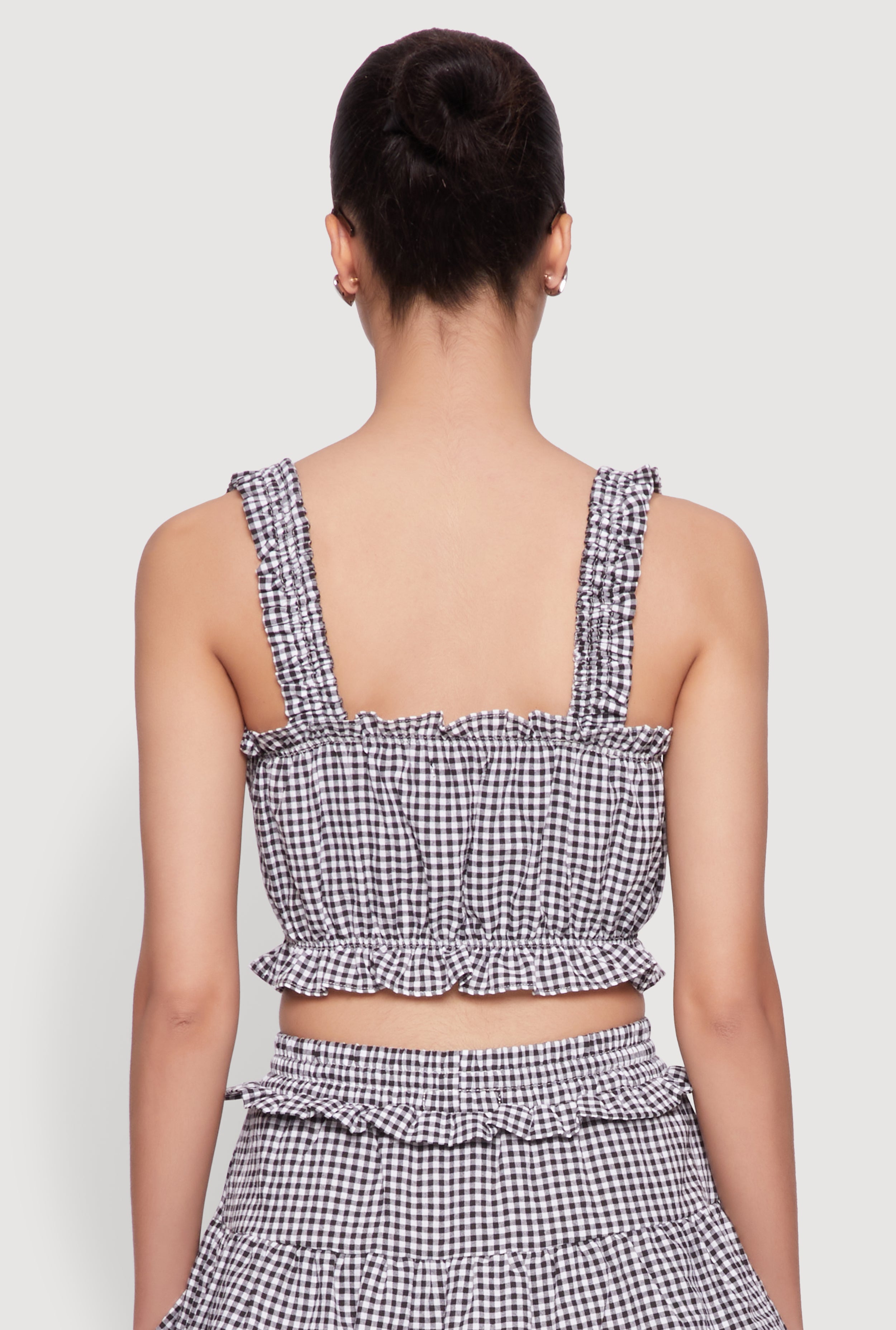 Iris Gingham Square Neck Crop Top with Bows and Ruffles
