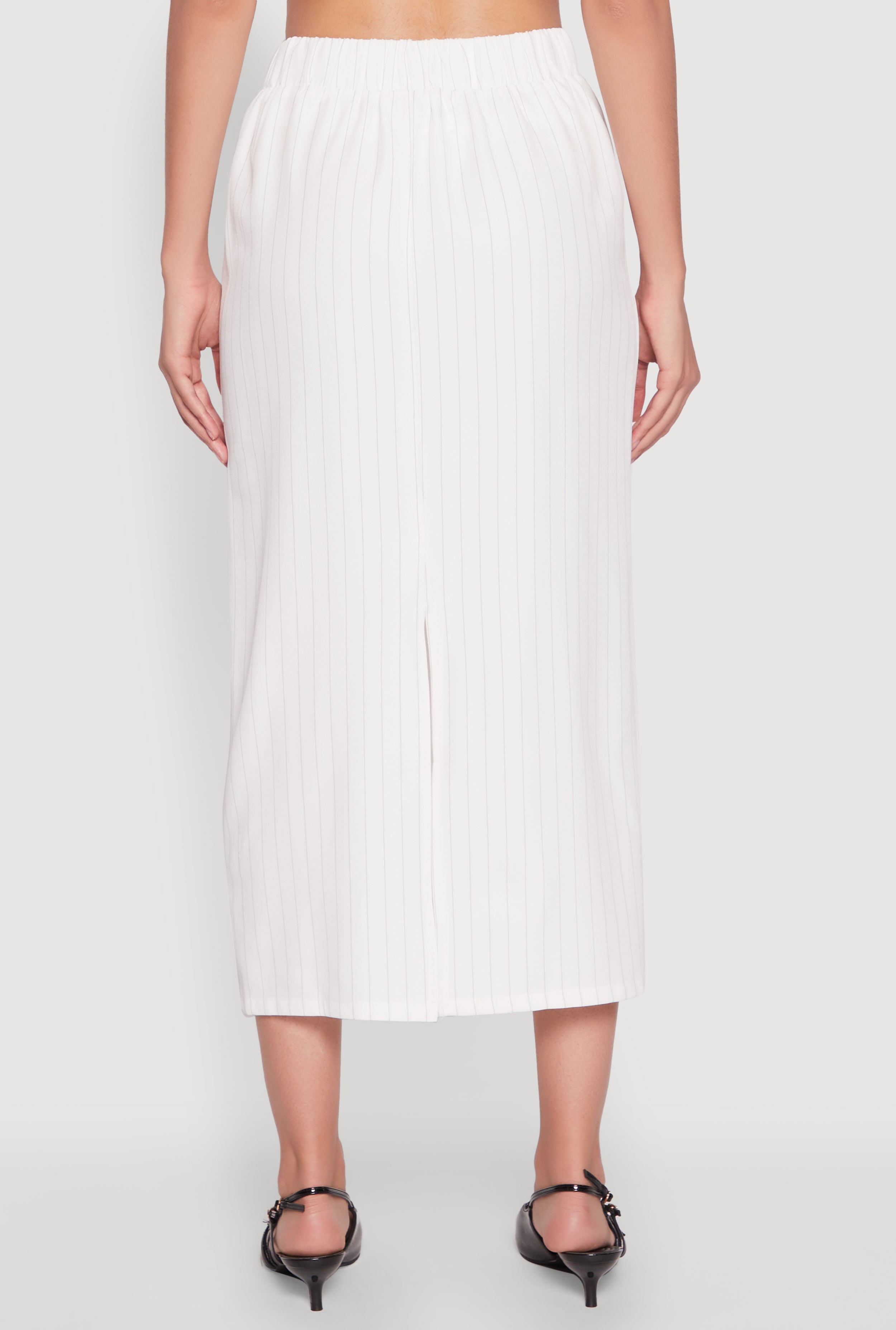 Step out in style with our Pinstripe High Waist Skirt, the perfect blend of sophistication and comfort. Designed to flatter your figure with a high waist and a maxi length, this skirt is a must-have for elevating your everyday look. Whether you're heading to work or brunch with friends, its classic pinstripe pattern and back slit add just the right touch of flair. Feel confident and chic while staying on-trend and budget-friendly.
