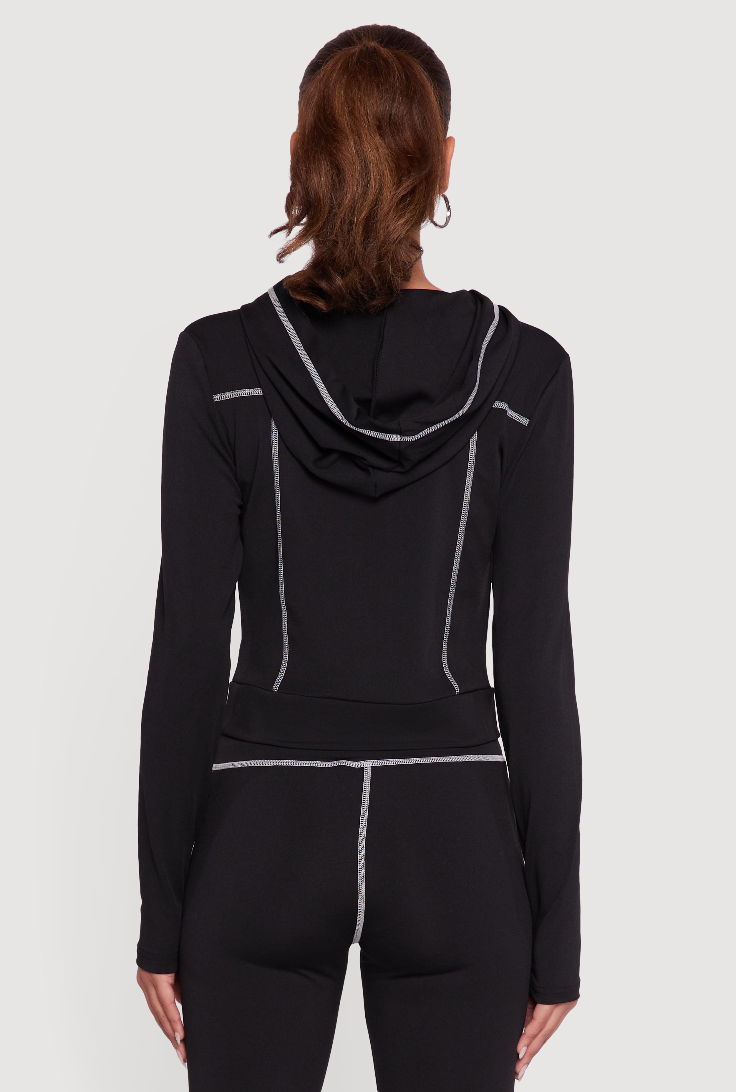 Zip Front Hooded Track Jacket with Decorative Stitching