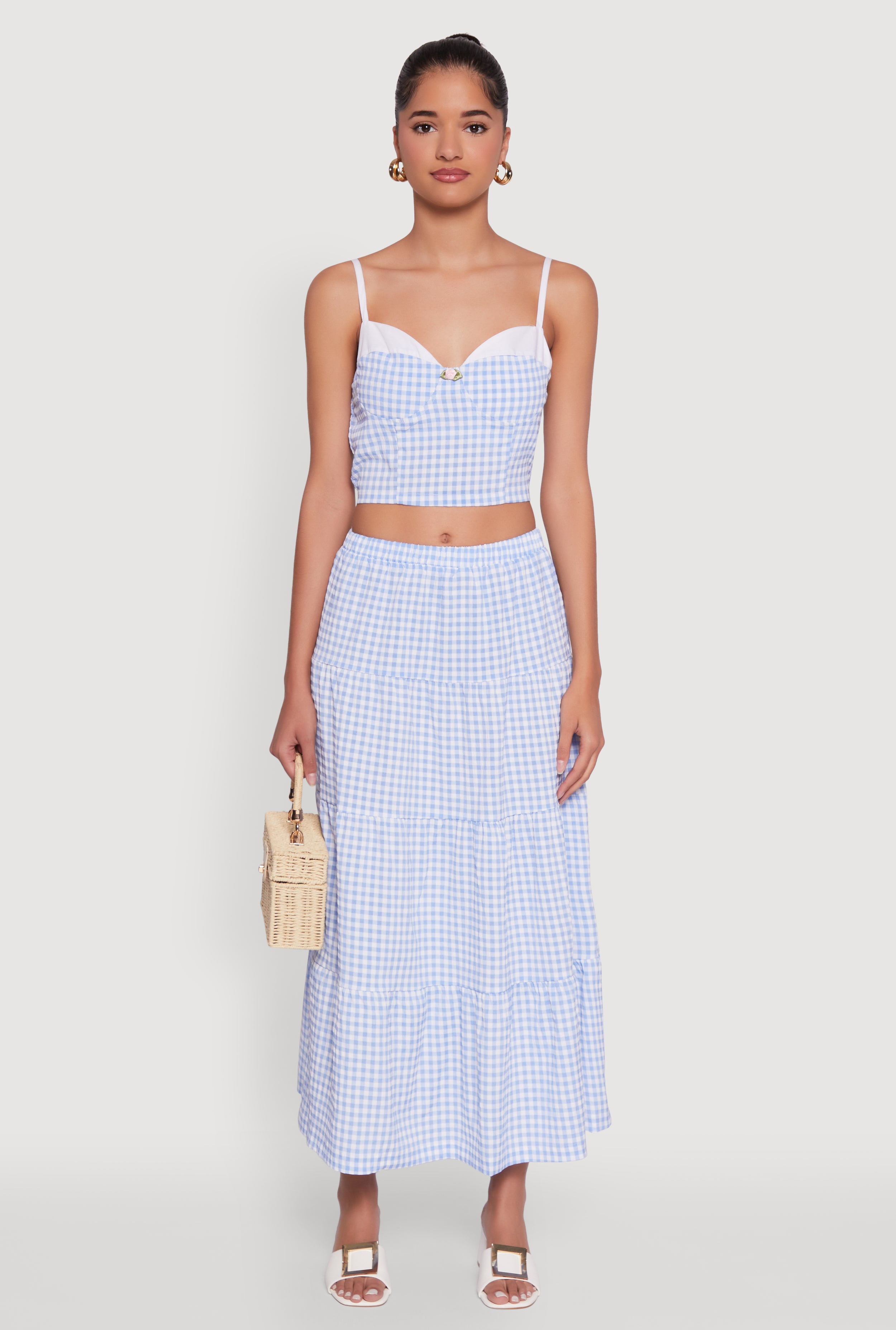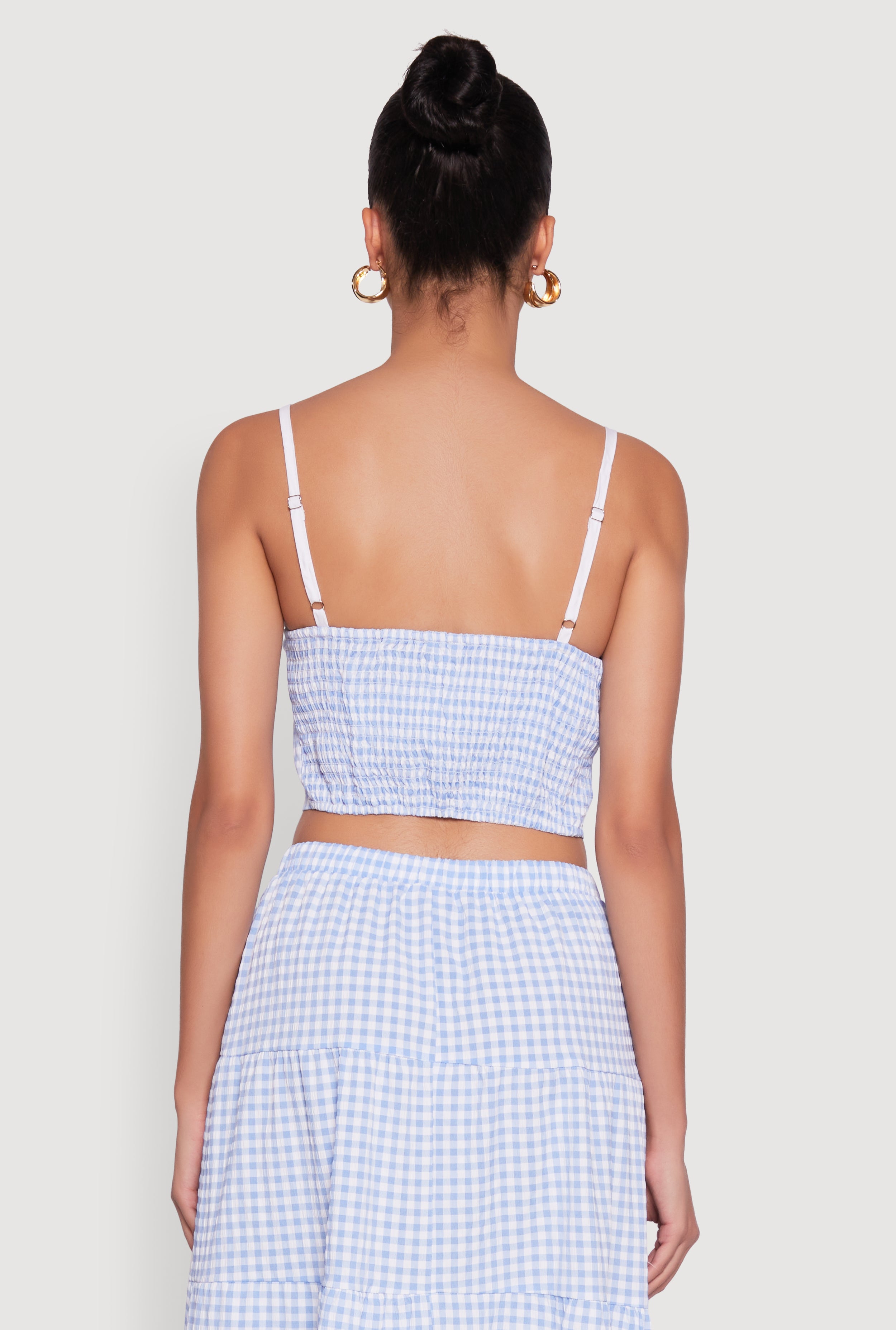 Step into sunshine vibes with the Gingham Smocked Back Bustier Top. This sleeveless classic fit piece features a flirty sweetheart neckline and adjustable spaghetti straps for the perfect fit every time. The smocked back adds a comfy stretch while the cropped hem keeps your look fresh and fun. Whether you’re pairing it with high-waisted jeans or your favorite skirt, this gingham gem is all about casual cool with a touch of flower power charm.