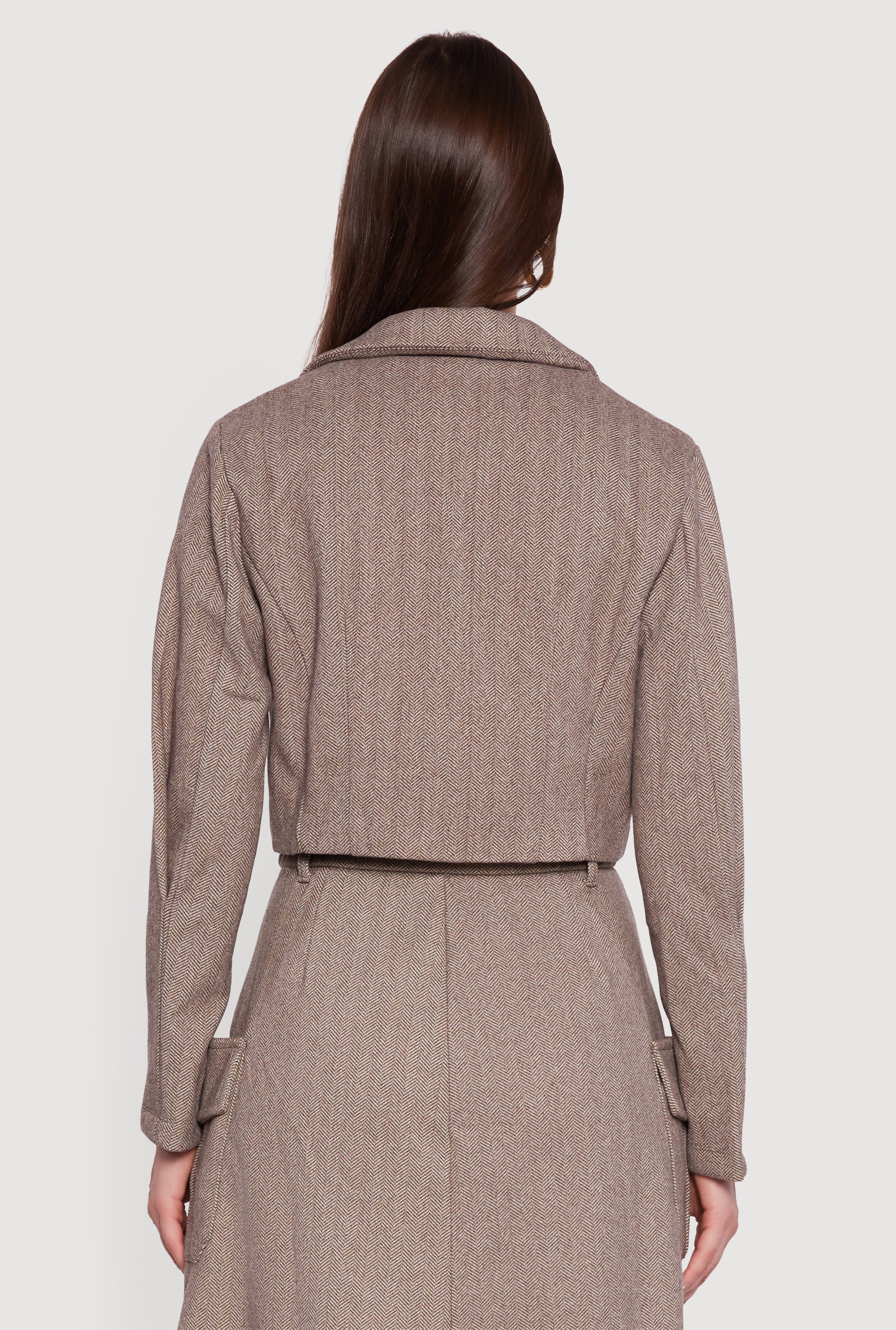 Step up your style game with this Cropped Open Front Herringbone Blazer from Haute Monde. Perfect for adding a polished touch to your officewear or dressy looks, this blazer features a sleek open front and a trendy cropped fit that keeps your outfit fresh and modern. The classic herringbone pattern adds subtle texture and sophistication, making it a versatile piece you can dress up or down with ease.