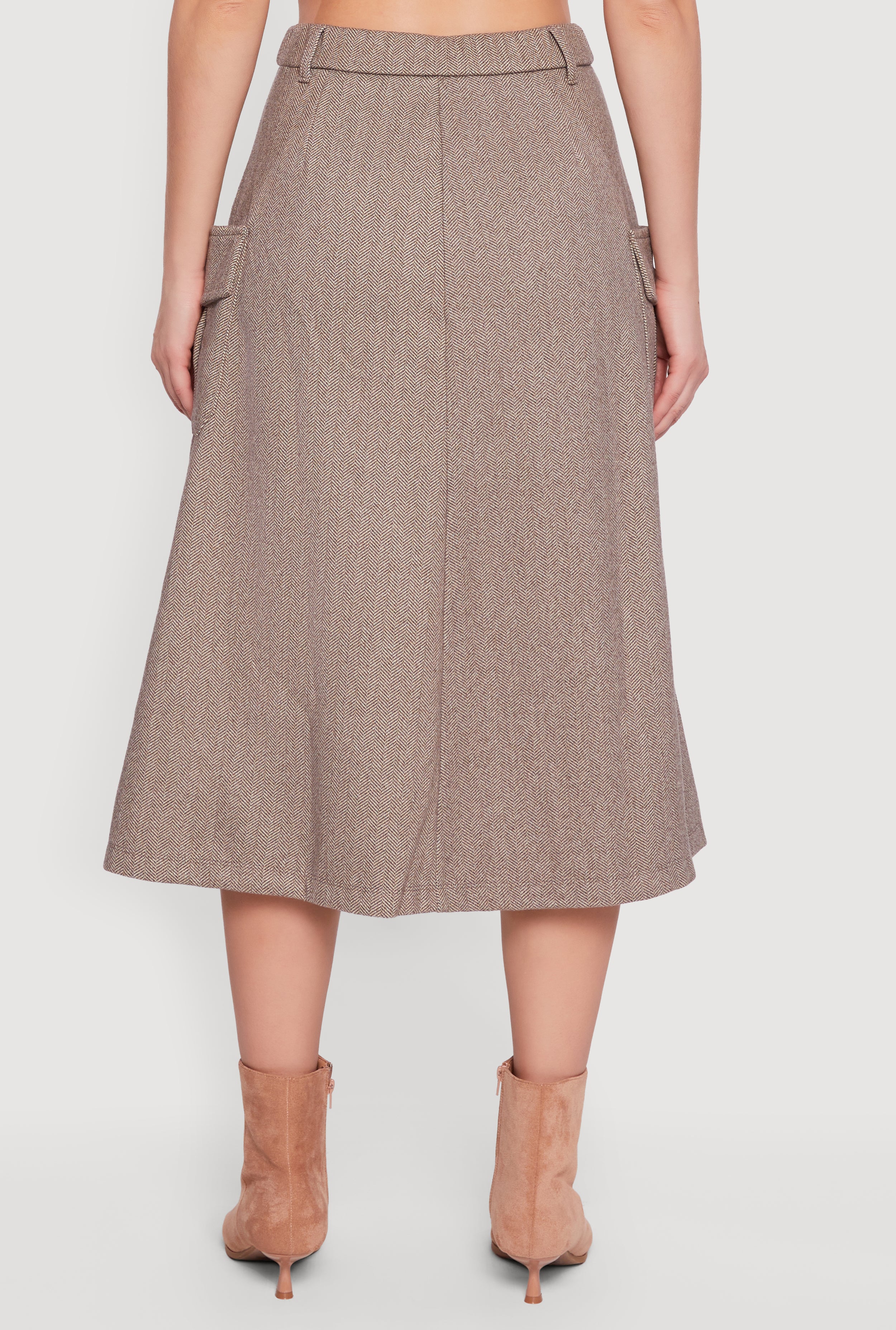 Step up your style game with the Herringbone Tweed Cargo Pocket Pleated Skirt. This mid-length, high-waisted skirt blends classic tweed texture with trendy cargo pockets and pleats for a look that’s both polished and effortlessly cool. Perfect for casual days, office vibes, or dressy occasions, it’s designed to keep you comfortable and confident all day long.